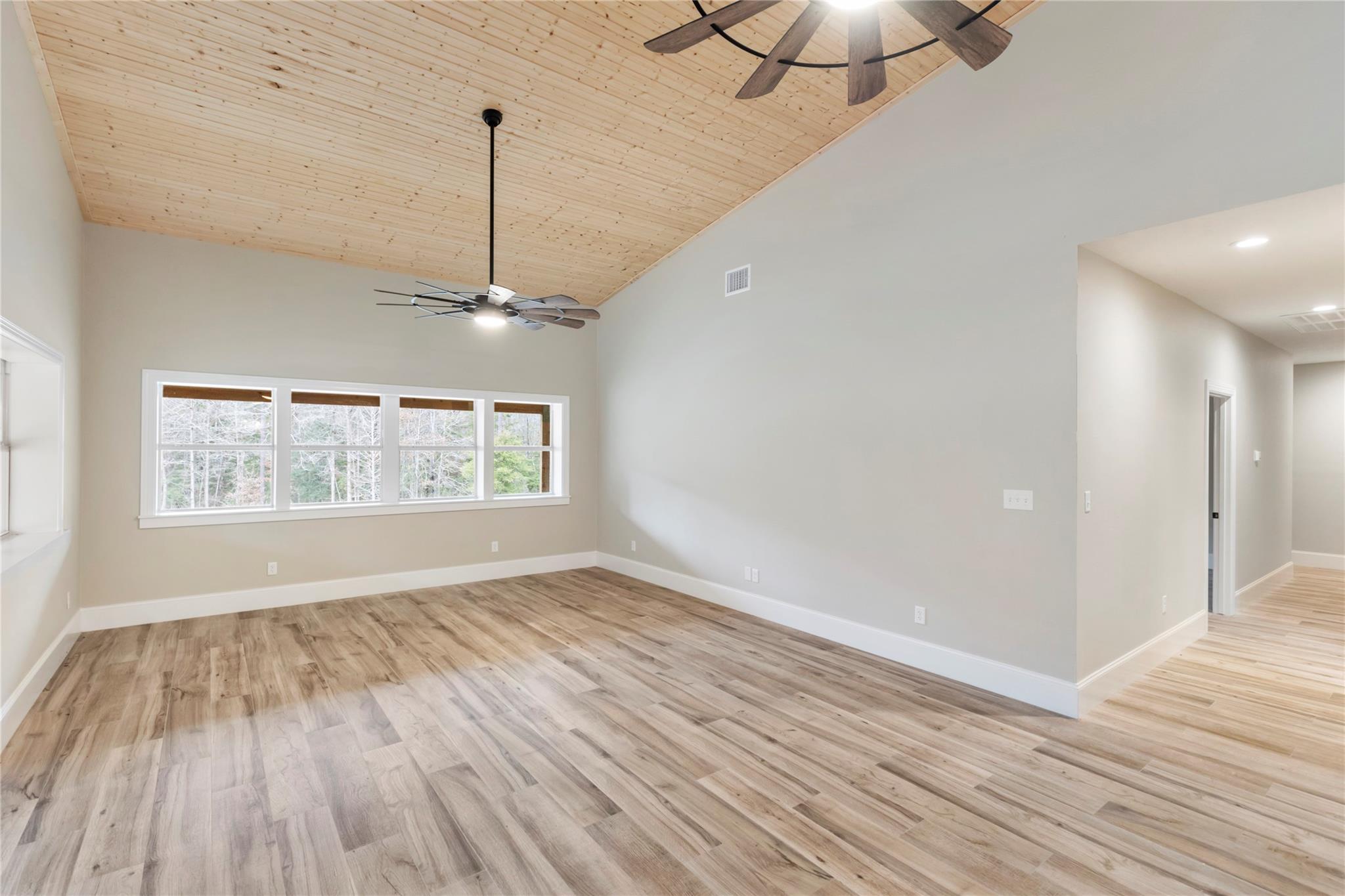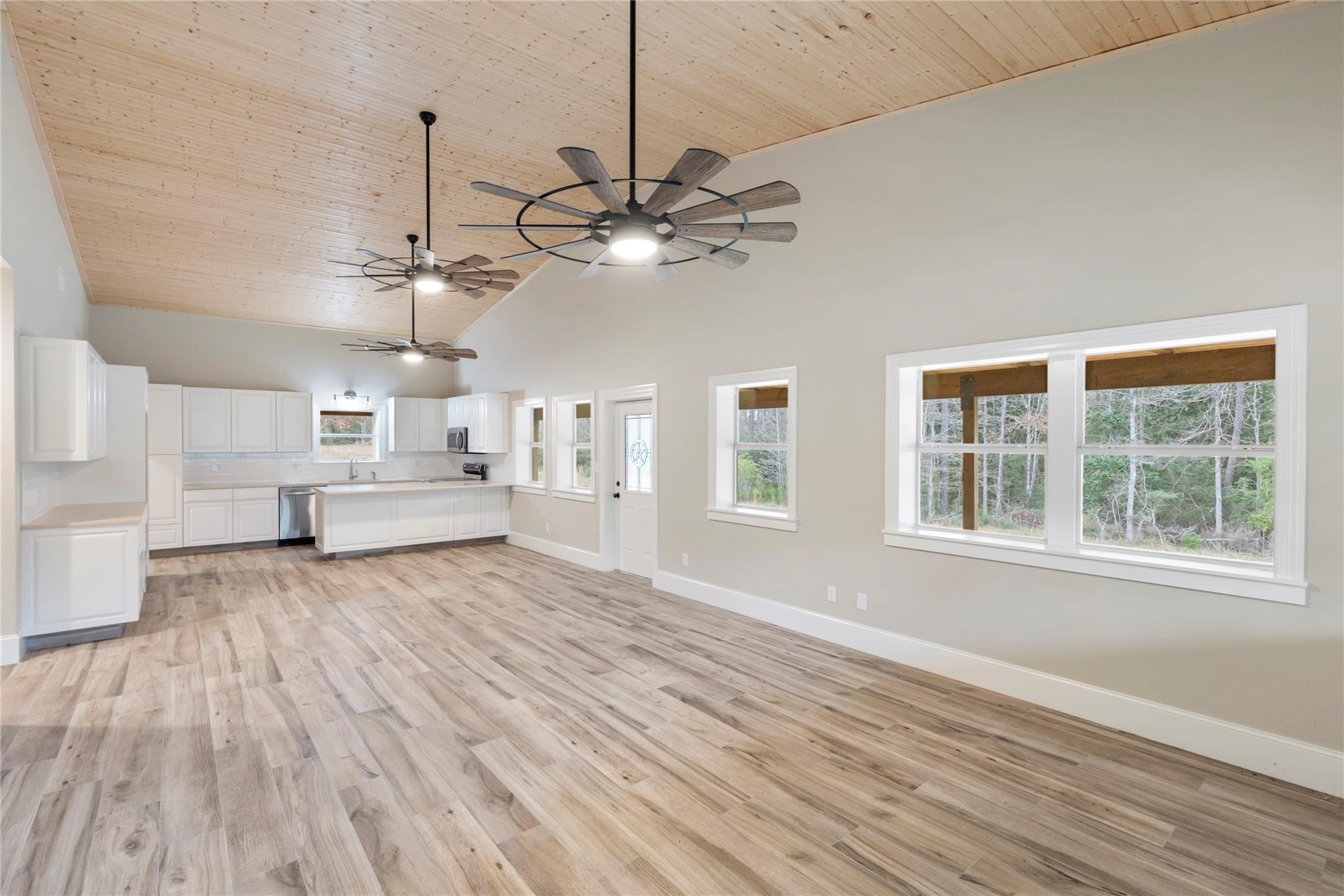 BRAND NEW CONSTRUCTION - NOW COMPLETE! Presenting a stunning 12-acre property with easy access to Hwy 59 & Lake Livingston! This picturesque location, close to amenities, schools, and medical facilities, boasts a manmade pond and a mix of timber and pastureland for various uses. Ideal for cattle or equestrian activities, it also offers excellent hunting with abundant wildlife & the perfect weekend getaway. 1,927 SF country-style home with high-end finishes, premium wood-tile floors, Quartz countertops, soft close hinges & drawer slides, stainless steel appliances, ceiling fans, 8 1/2 inch doors, 3 1/2 inch door & window casings, stained wood doors, vaulted wood plank ceilings, a new treatment septic system & more! Functional, spacious floor plan with open Kitchen/Dining/Living area, 3 bedrooms, 2 bathrooms, and a breathtaking wrap-around porch showcasing endless views. Additional 12 adjoining acres available for a total of 24 acres (MLS #23139925). Don't miss this unique opportunity!