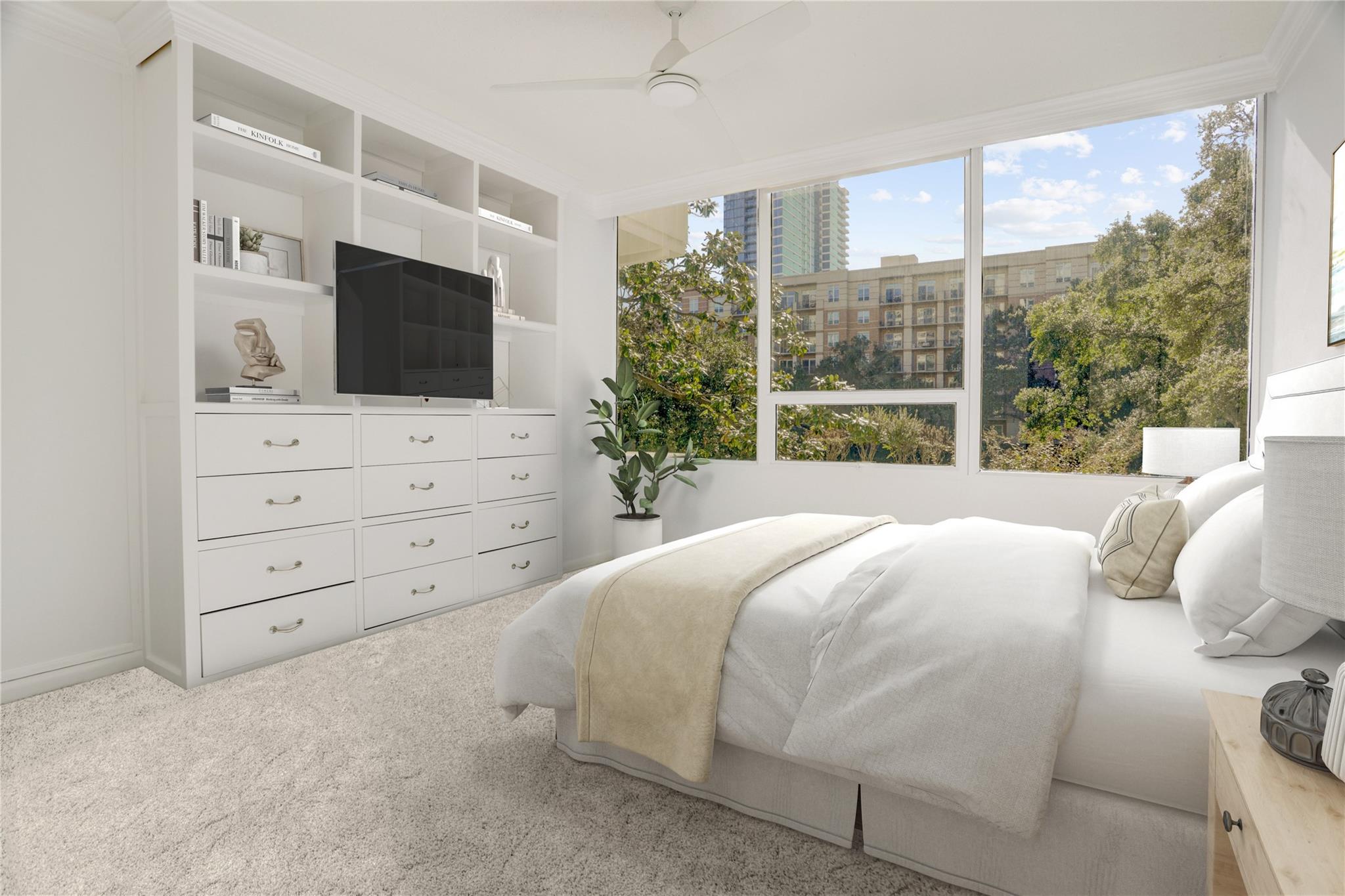 Sophisticated and effortless living, this one-bedroom residence at the mid-century Regency House offers elegance, convenience, and an unmatched location at the edge of River Oaks—one of Houston’s most prestigious and centrally located neighborhoods. Overlooking the peaceful two-acre backyard, Unit 2D features a well-proportioned living area, a private library with built-in shelving that can be closed off for true work-from-home privacy, generous in-unit storage plus a separate storage unit, and the convenience of an in-unit washer/dryer. The Regency House sits on beautifully landscaped grounds with a pool pavilion and serene outdoor areas seldom found in this part of the city. With its timeless architecture, secure high-rise setting, HOA FEES INCLUDE ALL UTILITIES —including internet!! Plus there is immediate access to premier dining, shopping, and cultural destinations, this residence is ideal for investors, downsizers, or anyone seeking refined urban living.