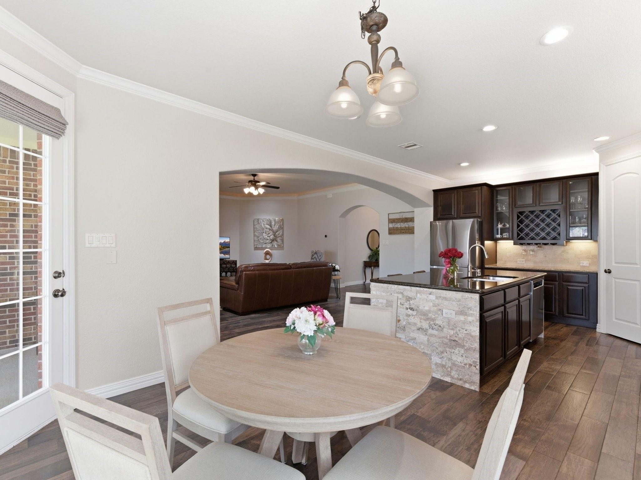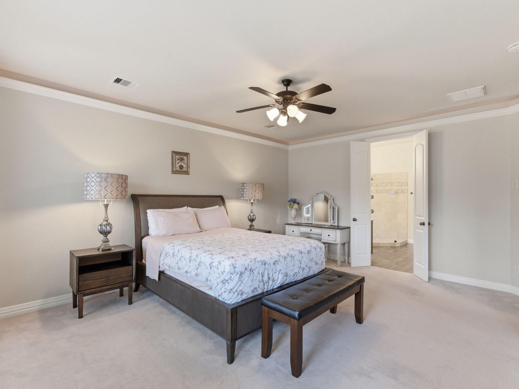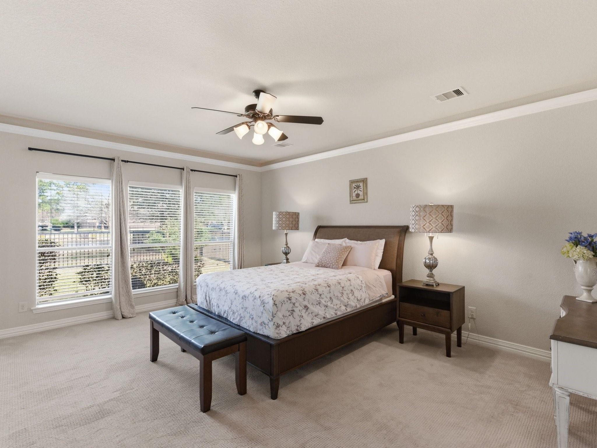 Tucked inside a gated community and backing to one of the neighborhood lakes, this inviting home offers peaceful water views with a fountain and a layout designed for real life. The home features 3 bedrooms plus a dedicated office that can serve as a 4th bedroom, along with 3 full baths. The living space flows easily into a formal dining room and breakfast nook, creating comfortable areas for both everyday living and hosting. The centrally located kitchen connects seamlessly to the main living area, making it easy to stay connected while cooking or entertaining. The primary suite is a true retreat, featuring an ensuite bath and an oversized attached space ideal for a nursery, home gym, office, or sitting area. Step outside to a serene patio and backyard oasis overlooking the lake. Enjoy being within walking distance to the clubhouse, pool, park, and walking trails. Conveniently located near shopping, dining, and major roadways in Spring.