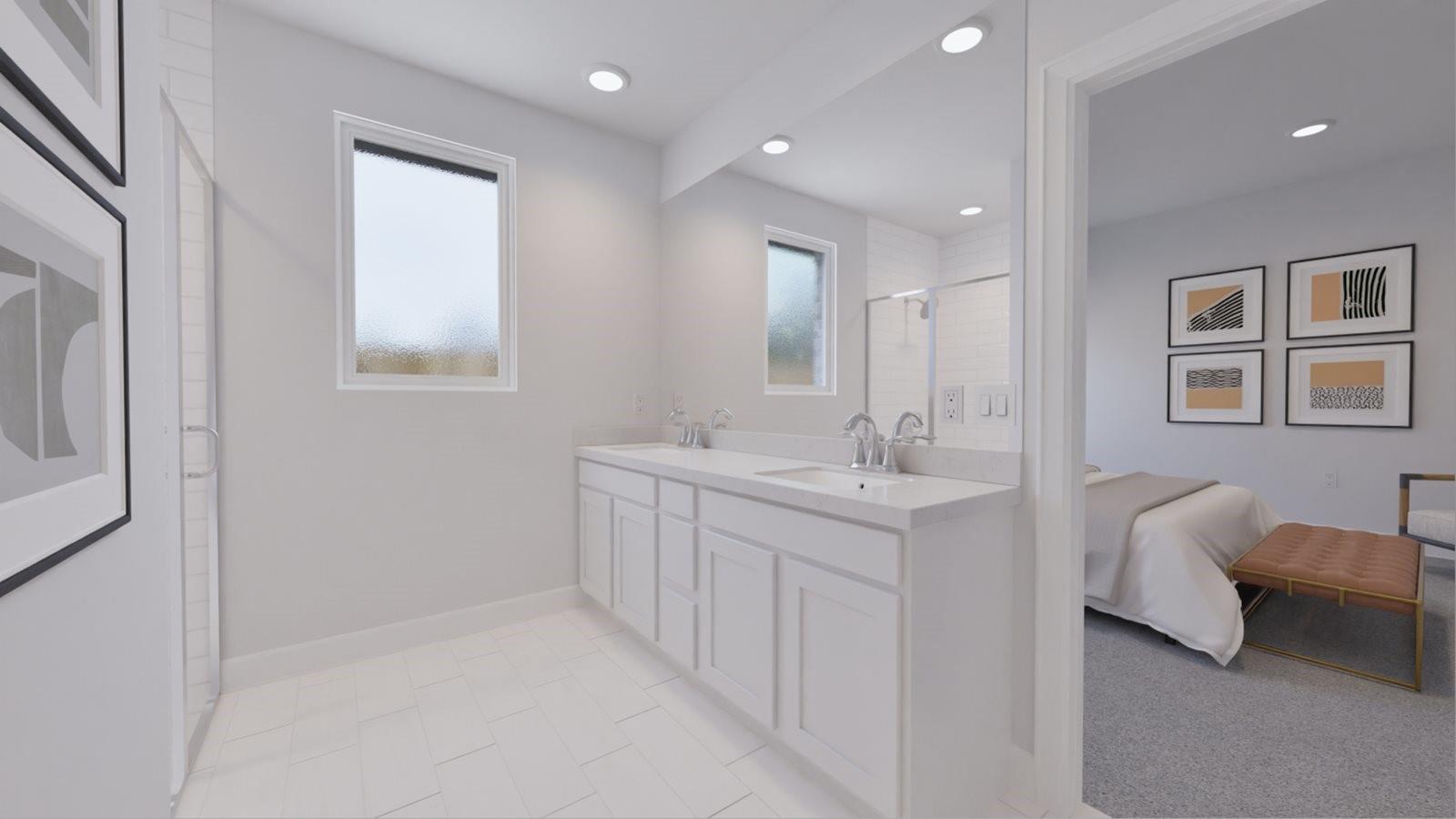 NEW! Village Builders Avante Collection home in Sunterra! The 'Linfield C'. This new four-bedroom home showcases a modern layout contained to a convenient single level. An open-concept floorplan with access to a covered patio promotes effortless entertaining and multitasking. Three secondary bedrooms can be found at the back of the home, and the luxurious owner’s suite is tucked away to the side for enhanced comfort and privacy, complete with an en-suite bathroom and generous walk-in closet.