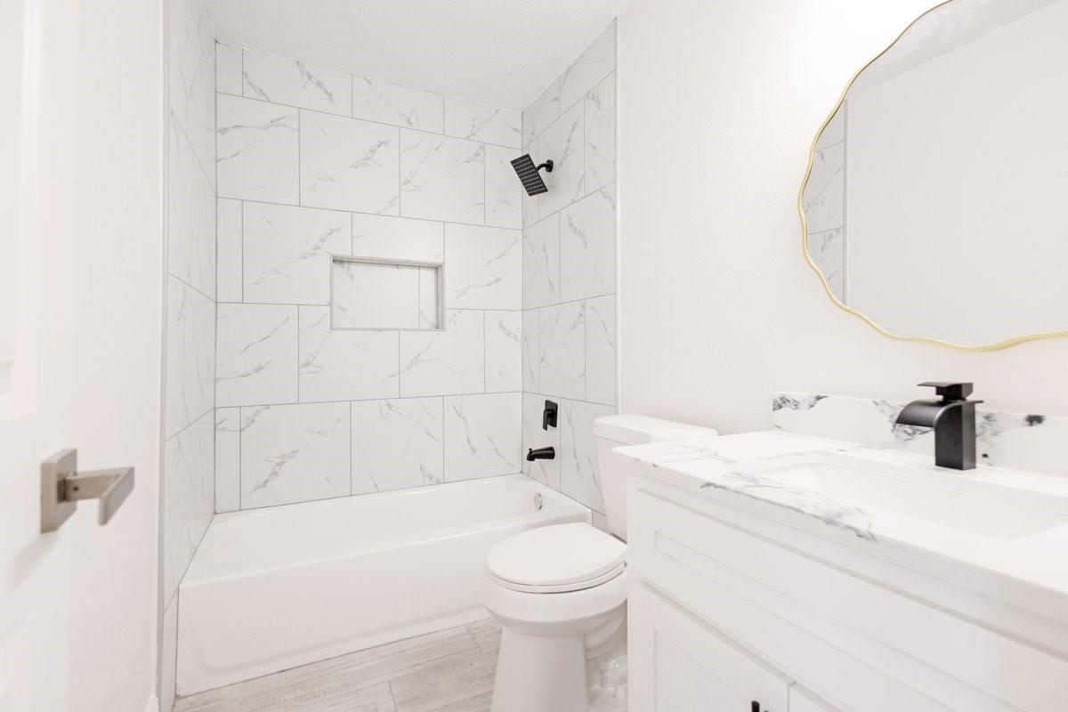 Beautifully remodeled and affordable home in Pasadena! This move-in-ready property features a brand-new roof with updated decking, new siding, energy-efficient windows, and new doors. Inside, you’ll find a modern open floor plan with refinished wood floors and stylish tile in the kitchen and bathrooms. The fully updated kitchen showcases new cabinetry, elegant white quartz countertops, and contemporary finishes. Both bathrooms have been upgraded with new fixtures, giving them a fresh, modern feel. Additional upgrades include a new electrical panel, brand-new central A/C system, updated lighting throughout, and ceiling fans in every room for added comfort. This home blends modern style with practical upgrades—perfect for comfortable living and entertaining!