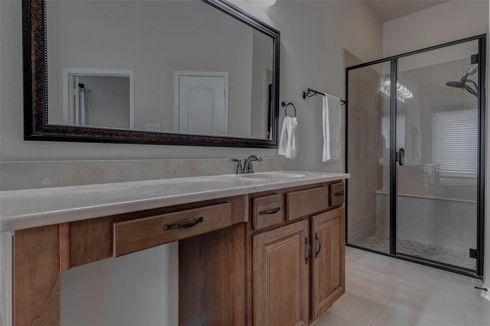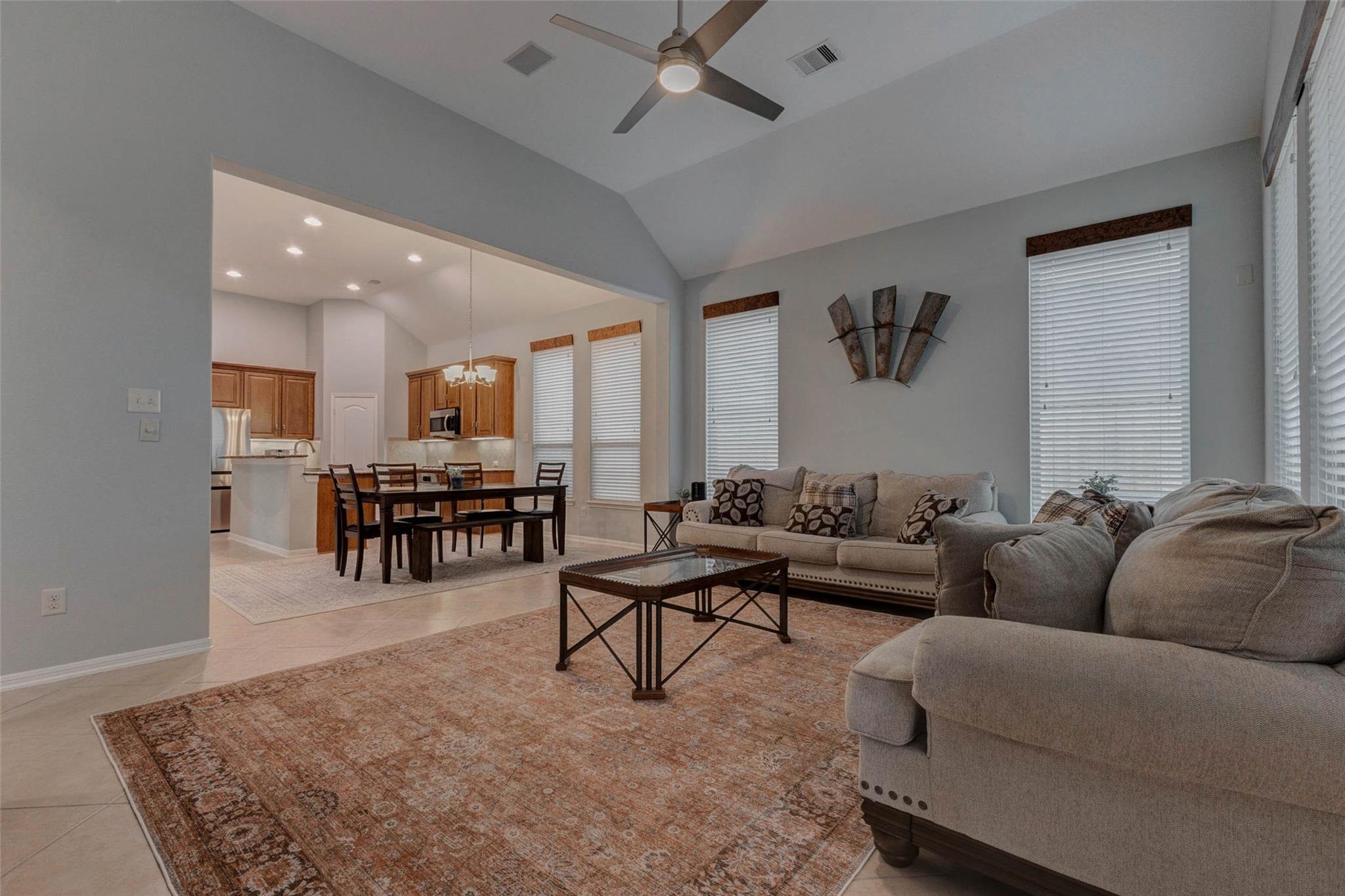 Stunning 1-story brick home with 3 bedrooms, 2 full baths, a private office, and a flex room in highly desirable Cross Creek Ranch, zoned to Katy ISD. High ceilings and tile flooring welcome you inside, with French doors leading to the office—ideal for working from home. The open kitchen features granite countertops, ample cabinetry, stainless steel appliances, breakfast bar seating, walk-in pantry, and an adjacent dining area perfect for everyday living and entertaining. The light-filled living room offers large windows and opens to an oversized, fully fenced yard with covered patio. The spacious primary suite includes double sinks, vanity area, jetted tub, walk-in shower with built-in bench, and a large walk-in closet. Two secondary bedrooms share a full bath. New A/C and fence in 2024. Enjoy resort-style amenities including pools, trails, parks, fitness centers, and community events—this home is a must see.