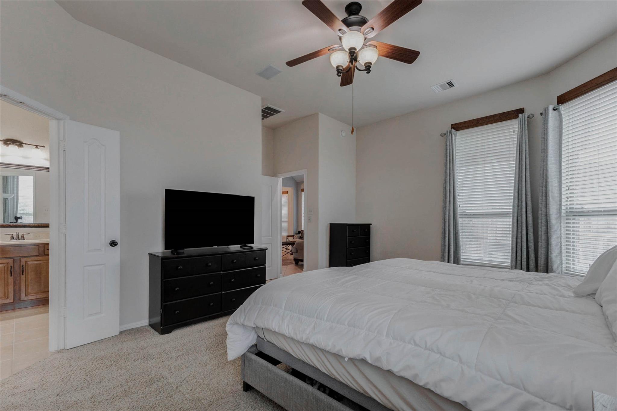 InteriorFloors:Carpet,TileBathroom Description:Primary Bath: Double Sinks,Primary Bath: Jetted Tub,Primary Bath: Separate Shower,Secondary Bath(s): Tub/Shower Combo,Vanity AreaBedroom Desc:All Bedrooms Down,En-Suite Bath,Primary Bed - 1st Floor,Walk-In ClosetKitchen Desc:Breakfast Bar,Island w/o Cooktop,Kitchen open to Family Room,Pantry,Under Cabinet Lighting,Walk-in PantryRoom Description:1 Living Area,Breakfast Room,Formal Dining,Home Office/Study,Kitchen/Dining Combo,Living Area - 1st Floor,Utility Room in HouseHeating:Central GasCooling:Central ElectricConnections:Electric Dryer Connections,Gas Dryer Connections,Washer ConnectionsDishwasher:YesDisposal:YesCompactor:NoMicrowave:YesRange:Gas RangeOven:Freestanding OvenIce Maker:NoEnergy Feature:Attic Fan,Ceiling FansInterior:Fire/Smoke Alarm,High Ceiling