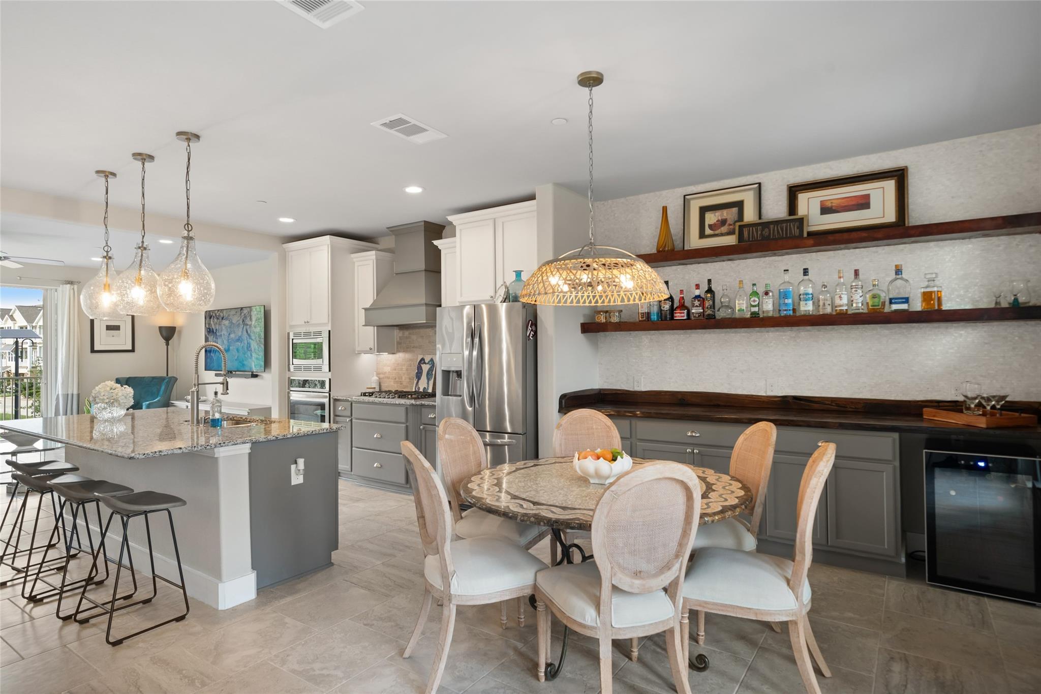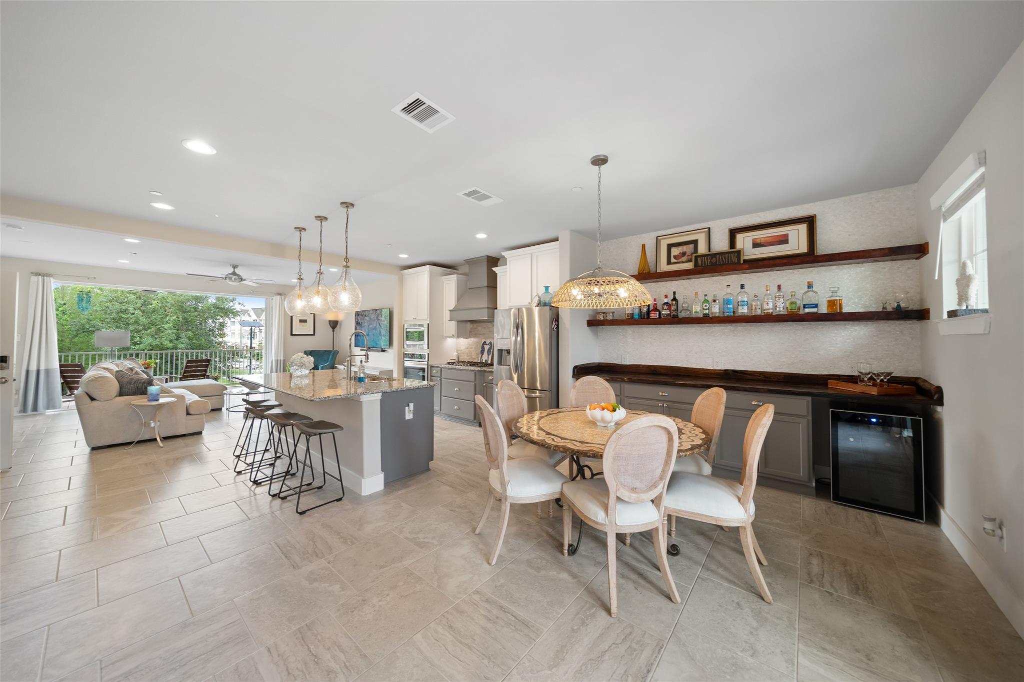 InteriorFloors:Tile,Vinyl PlankCountertop:Granite/QuartzBathroom Description:Primary Bath: Separate ShowerBedroom Desc:All Bedrooms Up,Primary Bed - 3rd Floor,Sitting Area,Walk-In ClosetKitchen Desc:Breakfast Bar,Island w/o Cooktop,Kitchen open to Family RoomRoom Description:Family Room,Living Area - 2nd Floor,Utility Room in HouseHeating:Central ElectricCooling:Central ElectricWasher/Dryer Conn:YesDishwasher:YesDisposal:YesMicrowave:YesRange:Gas CooktopOven:Convection Oven,Electric OvenIce Maker:NoAppliances:Electric Dryer ConnectionInterior:Alarm System - Owned,Balcony,Elevator Shaft,Fire/Smoke Alarm