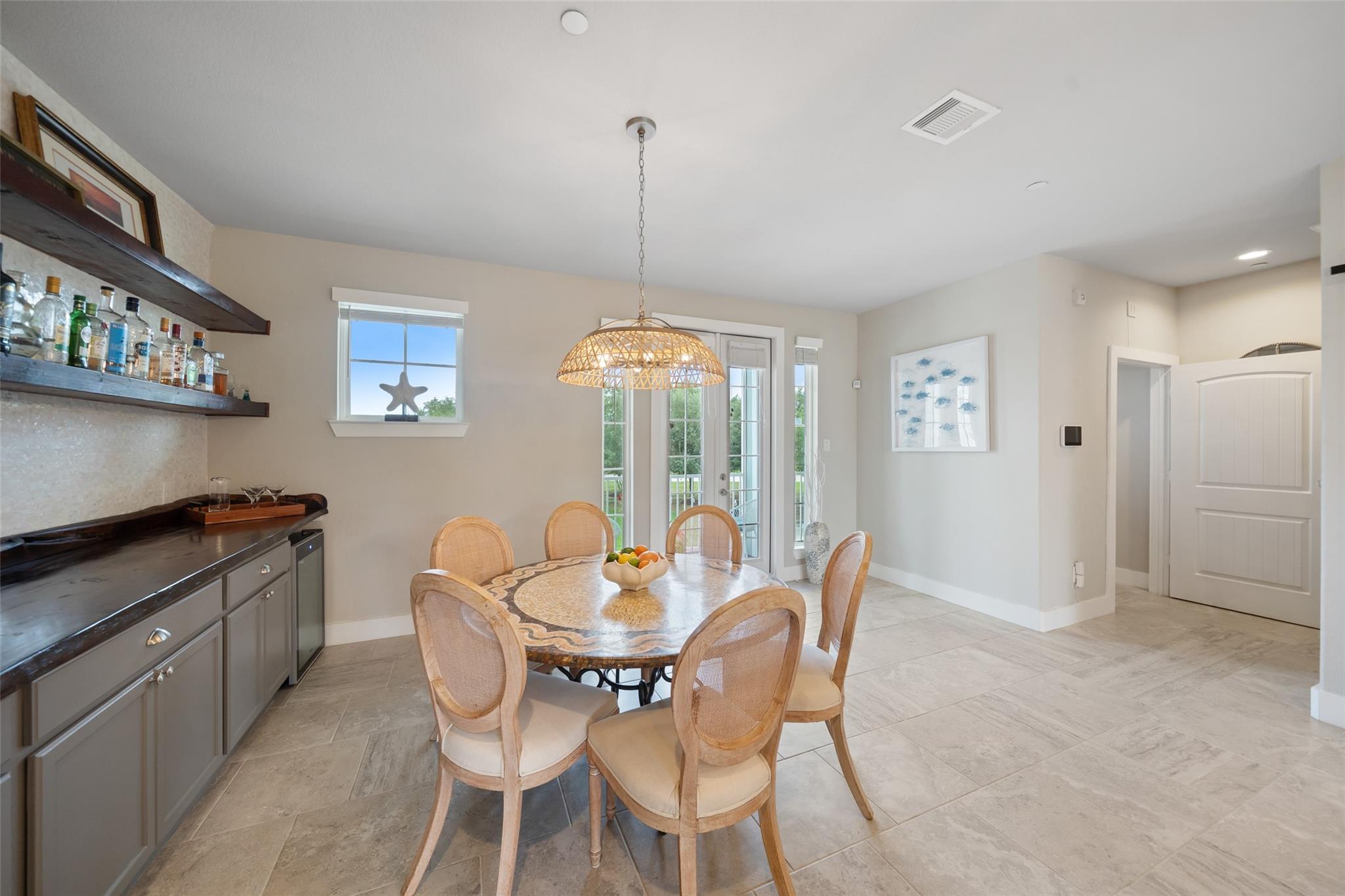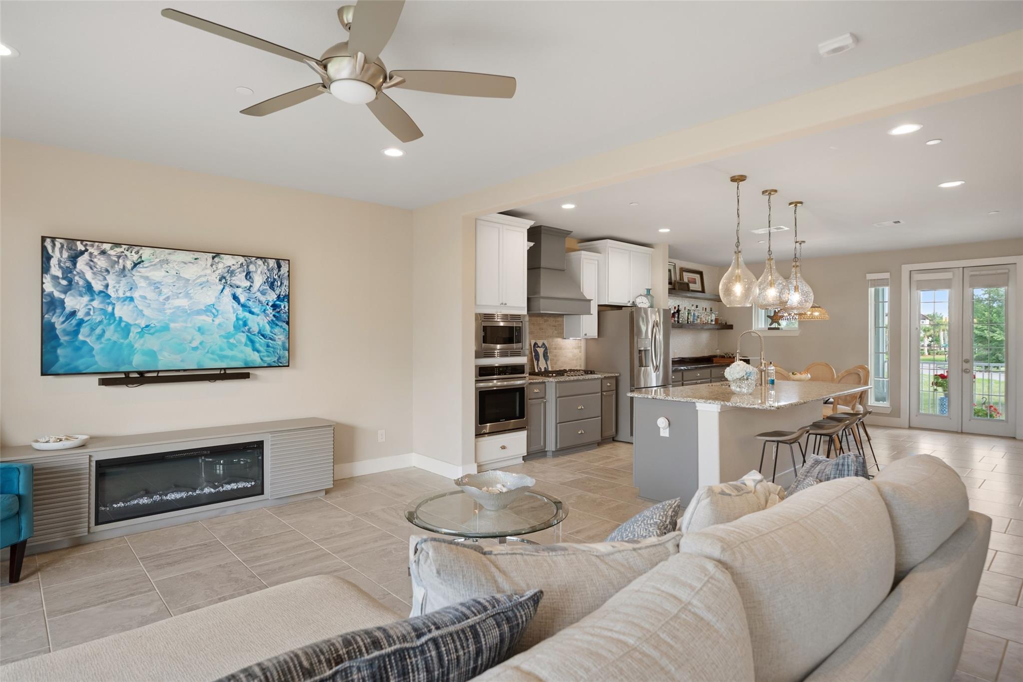 Luxury lakefront living in this beautifully upgraded 3BR/2.5BA 3-story townhome that shows like a model and is truly turnkey. Bright, open living with a wall of sliders extends the space to the balcony, creating seamless indoor-outdoor living with stunning lake views. Gourmet kitchen with granite, expansive island, custom wood buffet, wine fridge, and elegant mother-of-pearl tile accents. LVP flooring throughout upstairs and bedrooms. Primary suite offers a spa-like bath and private balcony retreat. Enjoy added privacy with greenspace front and back. Backyard features an extended patio and landscaped walkway just off the spacious 4-car garage with epoxy floors and oversized storage (elevator-ready). Full hurricane shutters provide peace of mind and lock-and-go convenience. Gated, golf cart-friendly community between two marinas with pier, trails, and access to dining, golf, fitness center, pools, tennis, and pickleball. HOA includes exterior insurance and maintenance.