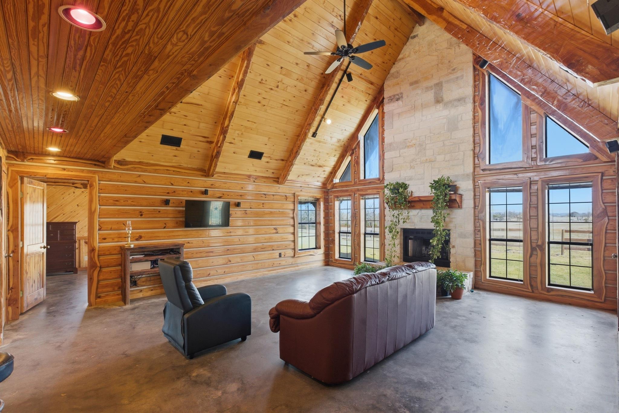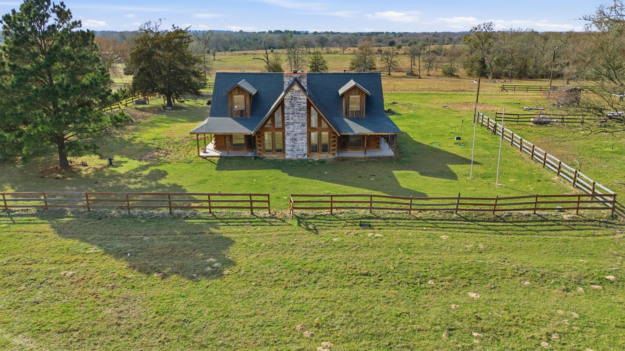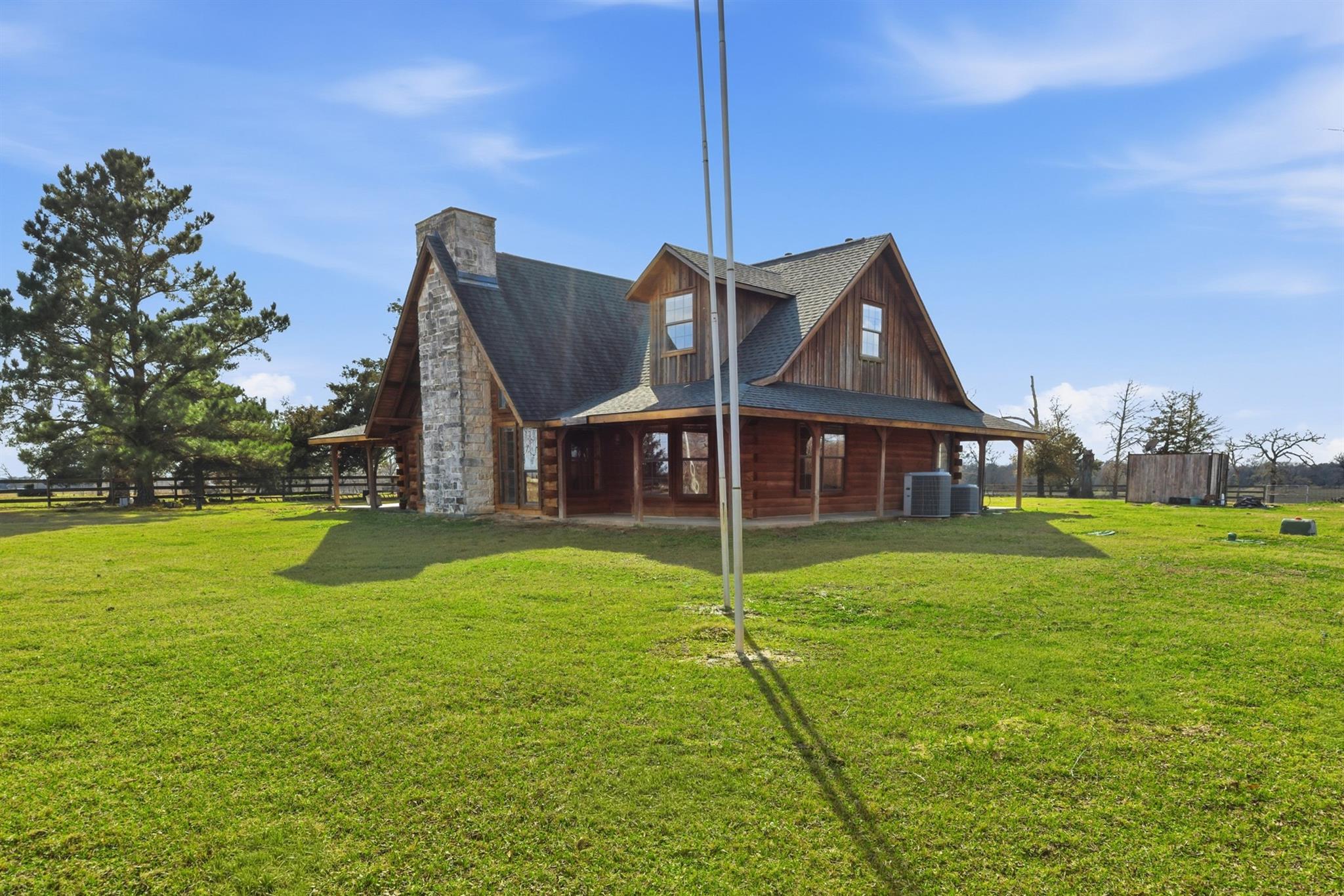 Rustic Log Cabin Retreat on 46.8 Ag-Exempt Acres Escape to your own private Texas retreat with this stunning 2-story log cabin. This property offers peaceful country living and endless possibilities for recreation and livestock. Step inside the 2,452 sq ft log home and fall in love with the warm woodwork, rustic charm, and cozy fireplace that creates the perfect space designed for comfort and entertaining. Beautiful rustic wood interior & fireplace Dual Zoned A/C & Heating with 2 AC units + 2 propane heating units Propane water heater & propane cooktop All Underground electrical service throughout the property RV hookup ready, 2 electrical service meter drops from San Bernard Electric Front pasture has its own 200-amp service + water feed from well Clear area behind home ready for future pool (no underground electric in area) Whether you’re dreaming of a private ranch, weekend retreat, or full-time country living, this property is fully equipped and ready for your vision.