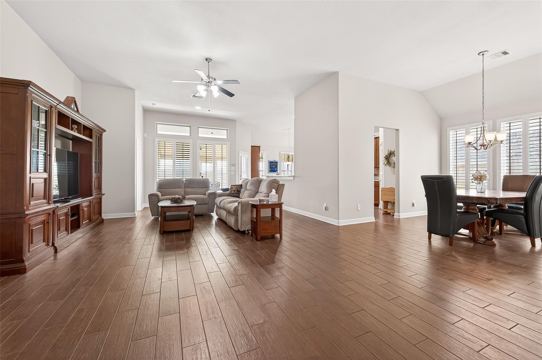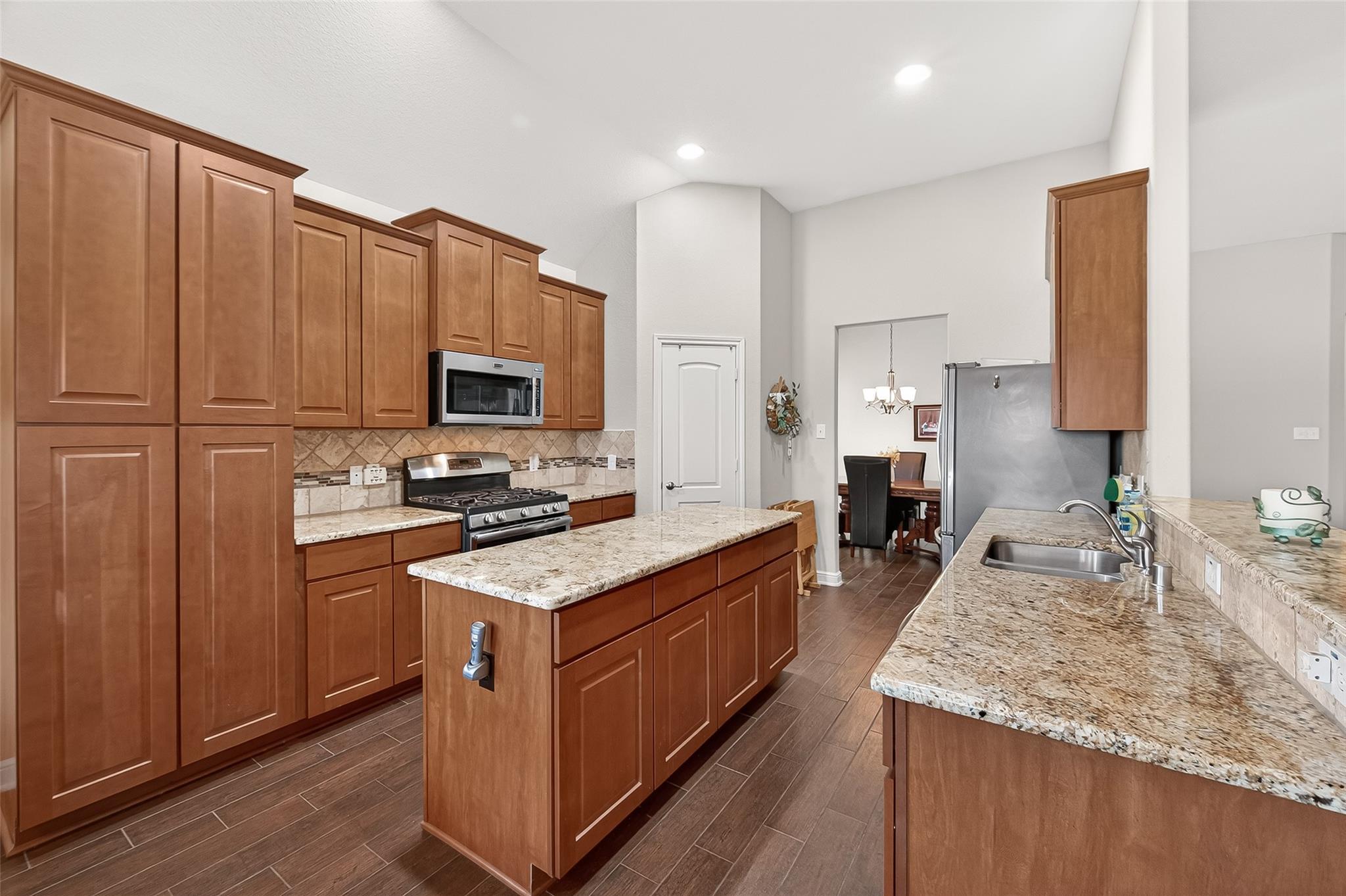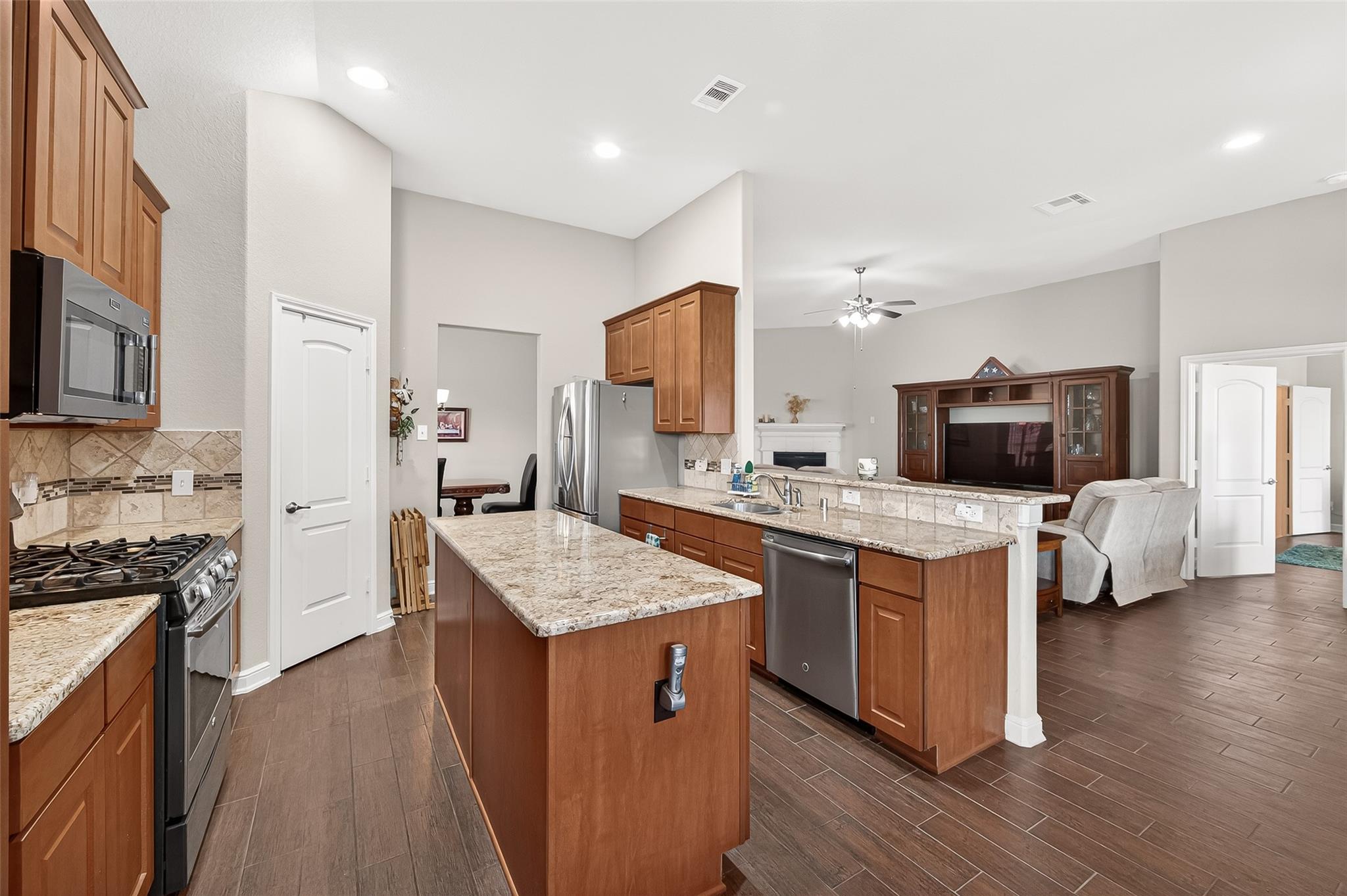InteriorFireplace:1/Electric Fireplace,Gaslog FireplaceFloors:TileBathroom Description:Disabled Access,Primary Bath: Double Sinks,Primary Bath: Shower Only,Secondary Bath(s): Tub/Shower ComboBedroom Desc:All Bedrooms Down,En-Suite Bath,Walk-In ClosetKitchen Desc:Breakfast Bar,Island w/o Cooktop,Kitchen open to Family Room,Pantry,Pots/Pans Drawers,Soft Closing Cabinets,Soft Closing Drawers,Walk-in PantryRoom Description:1 Living Area,Entry,Home Office/Study,Kitchen/Dining Combo,Living/Dining Combo,Utility Room in HouseHeating:Central GasCooling:Central ElectricConnections:Gas Dryer Connections,Washer ConnectionsDishwasher:YesDisposal:YesCompactor:NoMicrowave:YesRange:Gas RangeOven:Gas OvenIce Maker:NoEnergy Feature:Attic Vents,Ceiling Fans,Digital Program Thermostat,Energy Star Appliances,Energy Star/CFL/LED Lights,High-Efficiency HVAC,HVAC>15 SEER,Insulated/Low-E windows,Insulation - Other,Tankless/On-Demand H2O HeaterInterior:Alarm System - Owned,Crown Molding,Disabled Access,Fire/Smoke Alarm,Formal Entry/Foyer,High Ceiling,Prewired for Alarm System,Vaulted Ceiling,Water Softener - Owned,Window Coverings