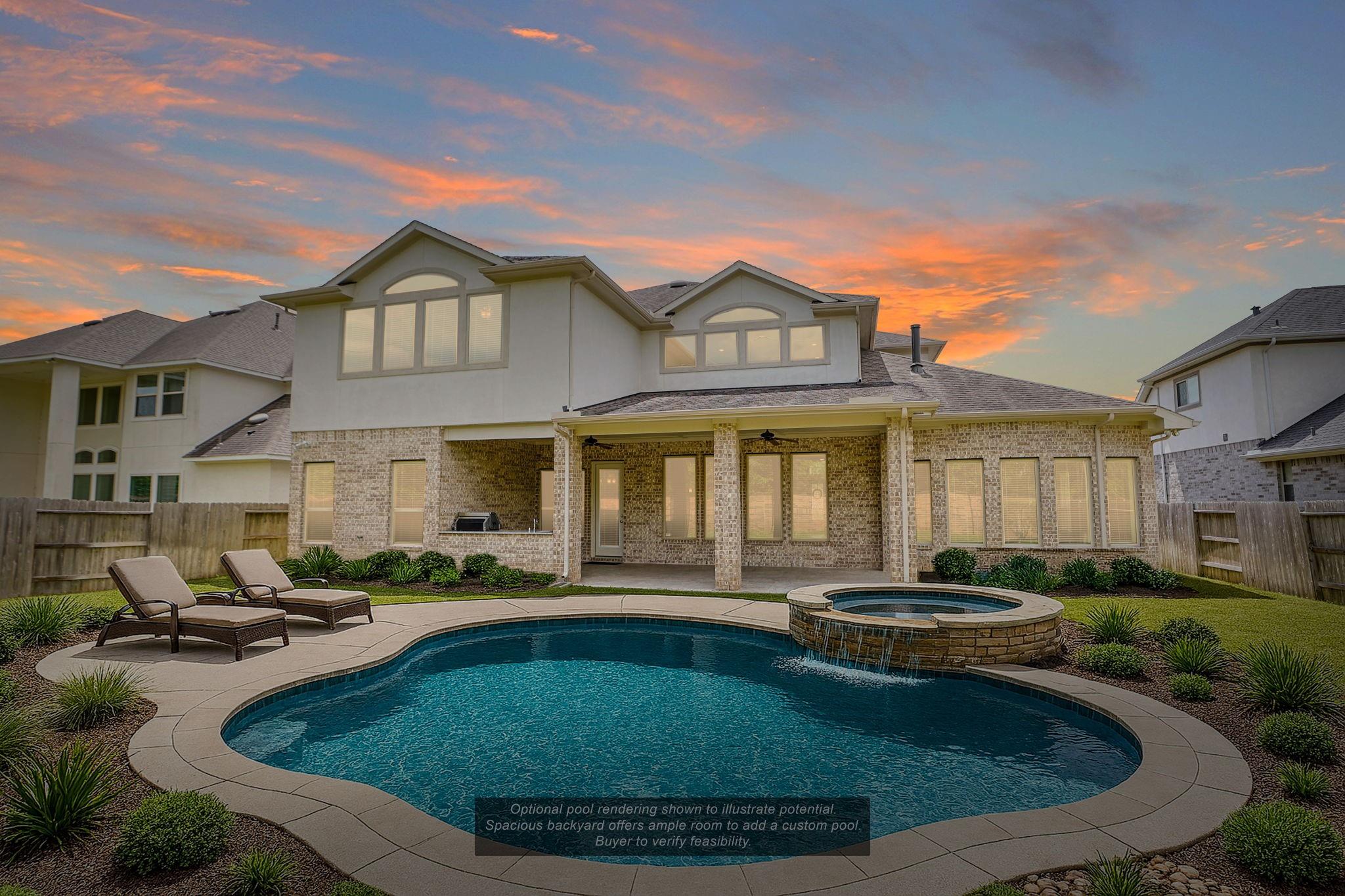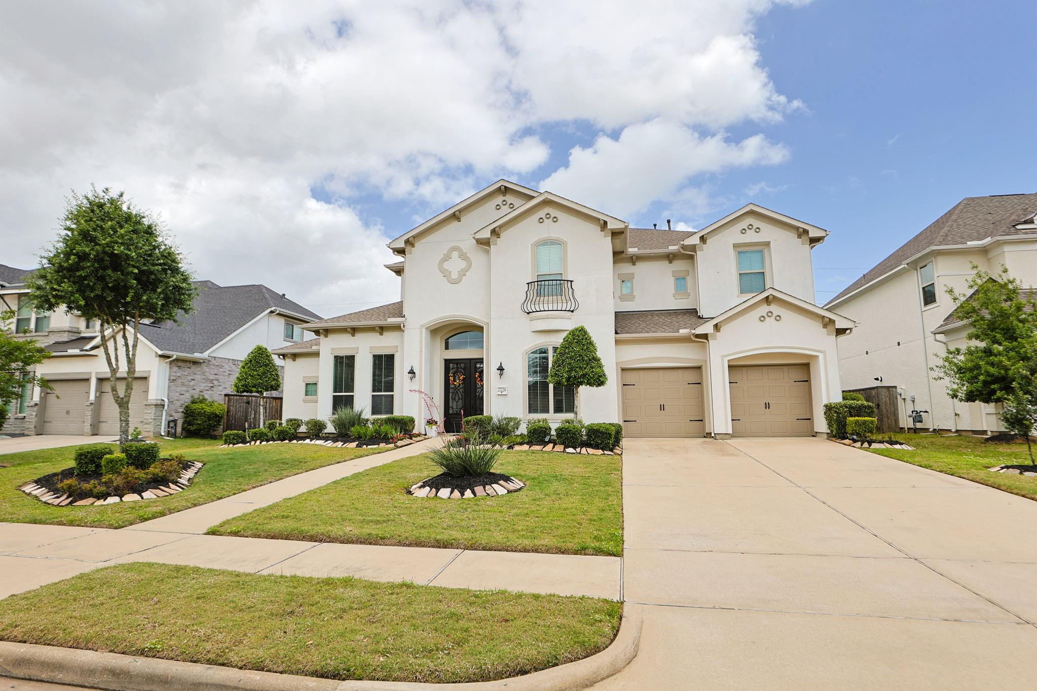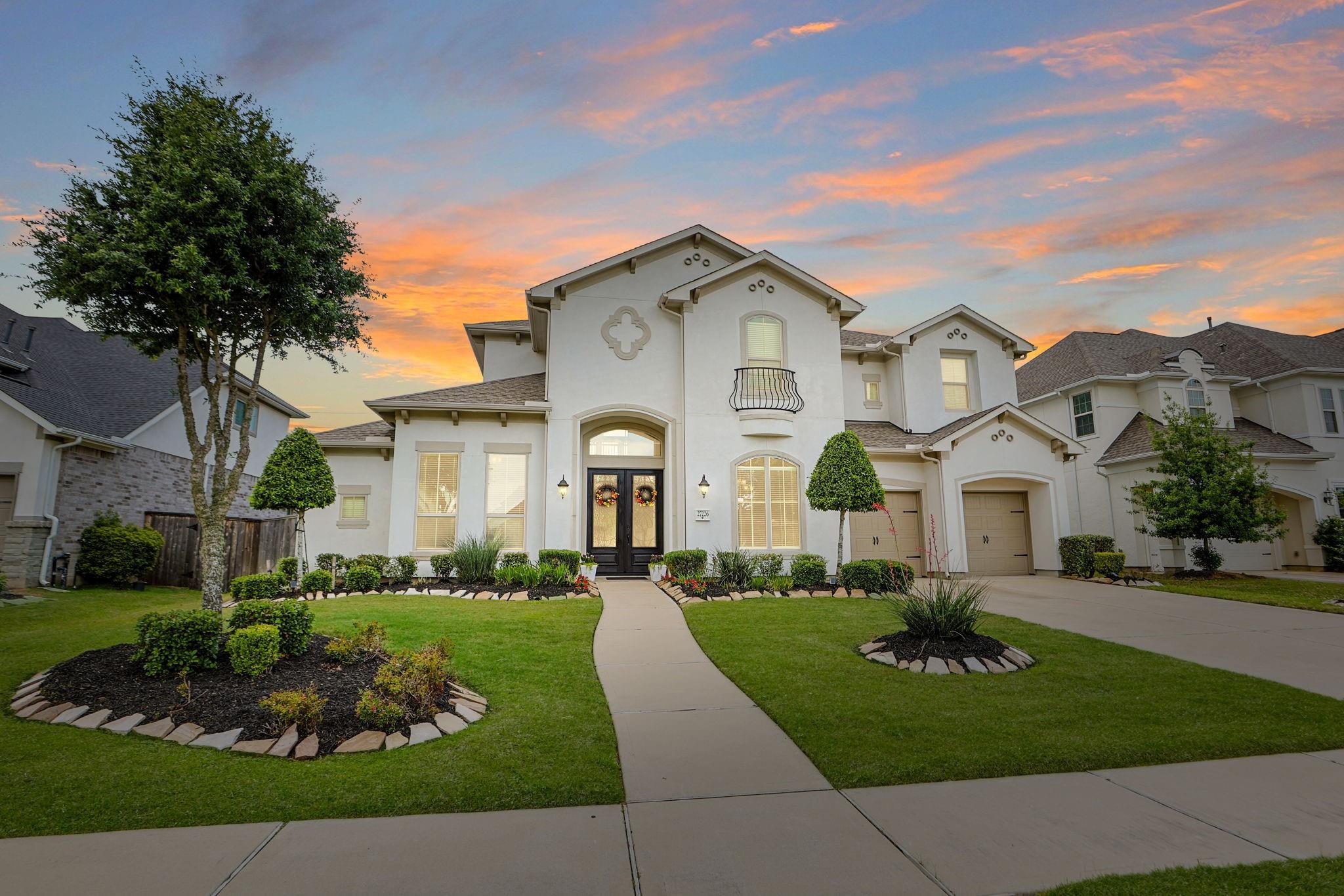 Set within the gated Avalon at Spring Green community, this stunning Coventry model home floor plan showcases a Mediterranean stucco and brick exterior. A double door entry opens to soaring ceilings, wood flooring, and a gracefully curved staircase. The main living area flows into a chef’s kitchen with a large center island and Benedettini cabinetry, designed for daily living and entertaining. The extended patio includes an outdoor kitchen and overlooks no rear neighbors with a brick fence. Additional spaces include a generous game room and media room. Features include a 3 car tandem garage, whole home water filtration with reverse osmosis, and a full sprinkler system. Convenient access to I-10 and SH-99 Grand Parkway. Zoned to Katy ISD including Tompkins High School, WoodCreek Junior High, and WoodCreek Elementary. Thoughtful details and refined finishes elevate this home to near luxury-estate caliber living and proximity to major employment, retail, and dining corridors.
