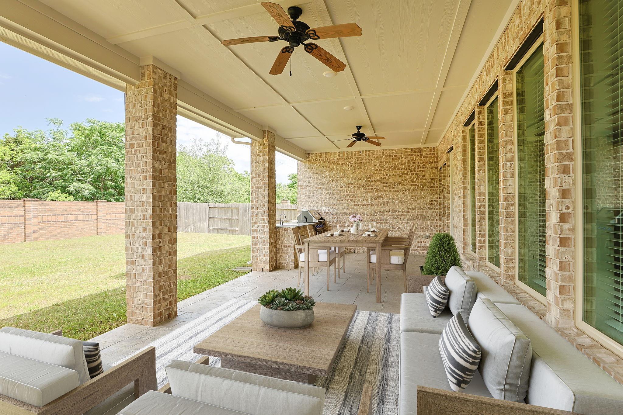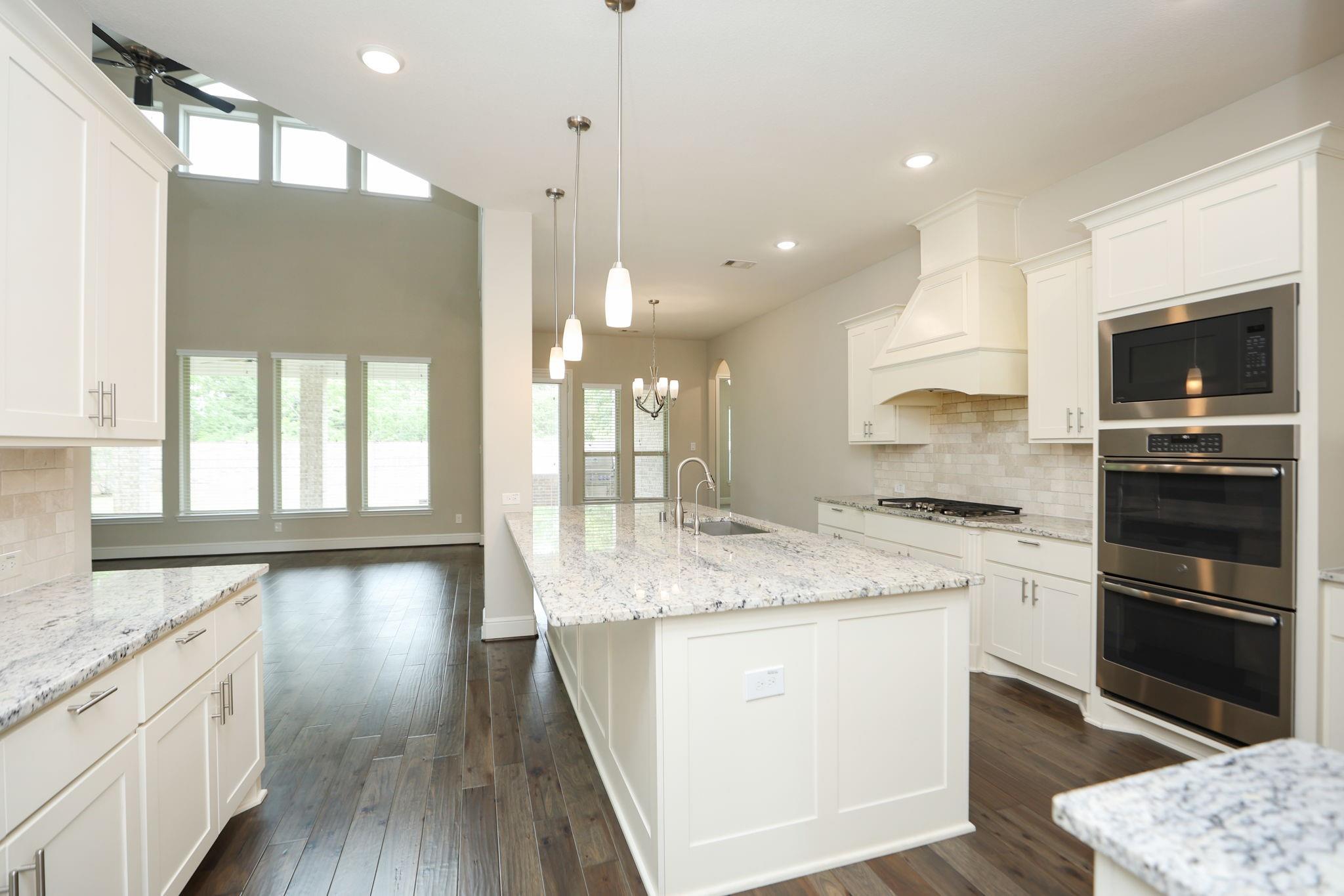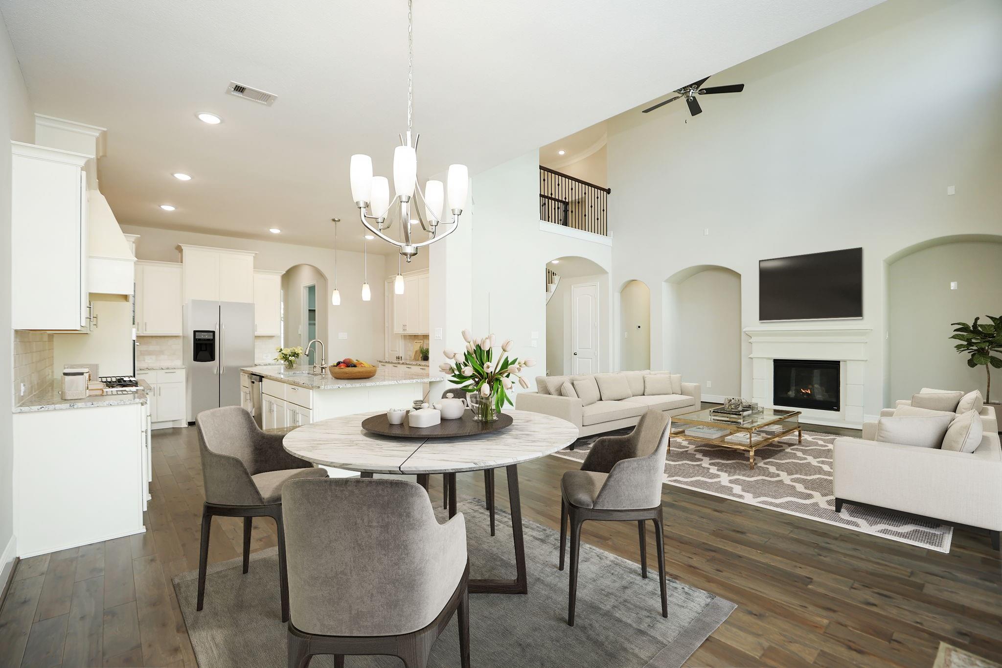 Set within the gated Avalon at Spring Green community, this stunning Coventry model home floor plan showcases a Mediterranean stucco and brick exterior. A double door entry opens to soaring ceilings, wood flooring, and a gracefully curved staircase. The main living area flows into a chef’s kitchen with a large center island and Benedettini cabinetry, designed for daily living and entertaining. The extended patio includes an outdoor kitchen and overlooks no rear neighbors with a brick fence. Additional spaces include a generous game room and media room. Features include a 3 car tandem garage, whole home water filtration with reverse osmosis, and a full sprinkler system. Convenient access to I-10 and SH-99 Grand Parkway. Zoned to Katy ISD including Tompkins High School, WoodCreek Junior High, and WoodCreek Elementary. Thoughtful details and refined finishes elevate this home to near luxury-estate caliber living and proximity to major employment, retail, and dining corridors.