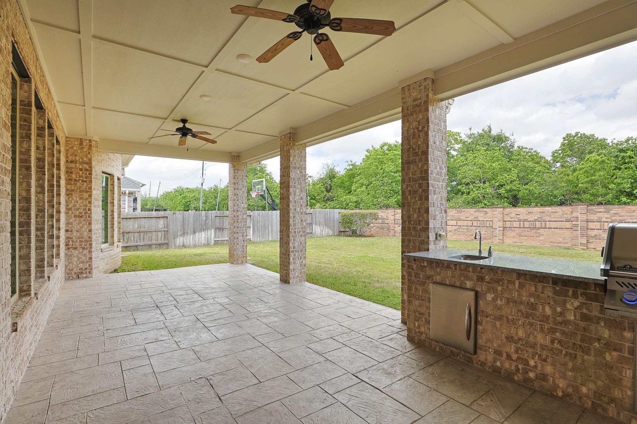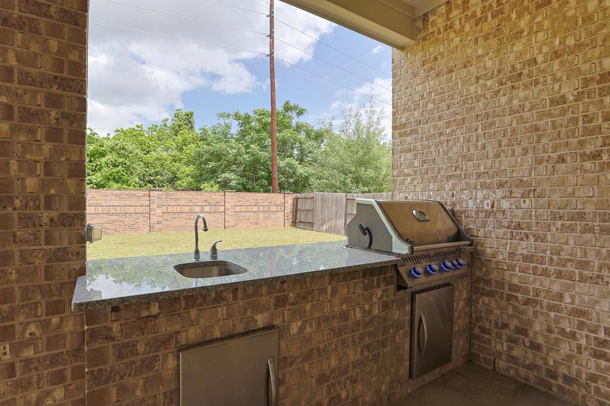 ExteriorRoof:CompositionFoundation:SlabPrivate Pool:NoExterior Type:Brick,StuccoLot Description:Greenbelt,Subdivision LotGarage Carport:Auto Garage Door OpenerWater Sewer:Public Sewer,Water DistrictArea Pool:NoExterior:Back Yard Fenced,Covered Patio/Deck,Fully Fenced,Outdoor Kitchen,Patio/Deck,Side Yard,Sprinkler System