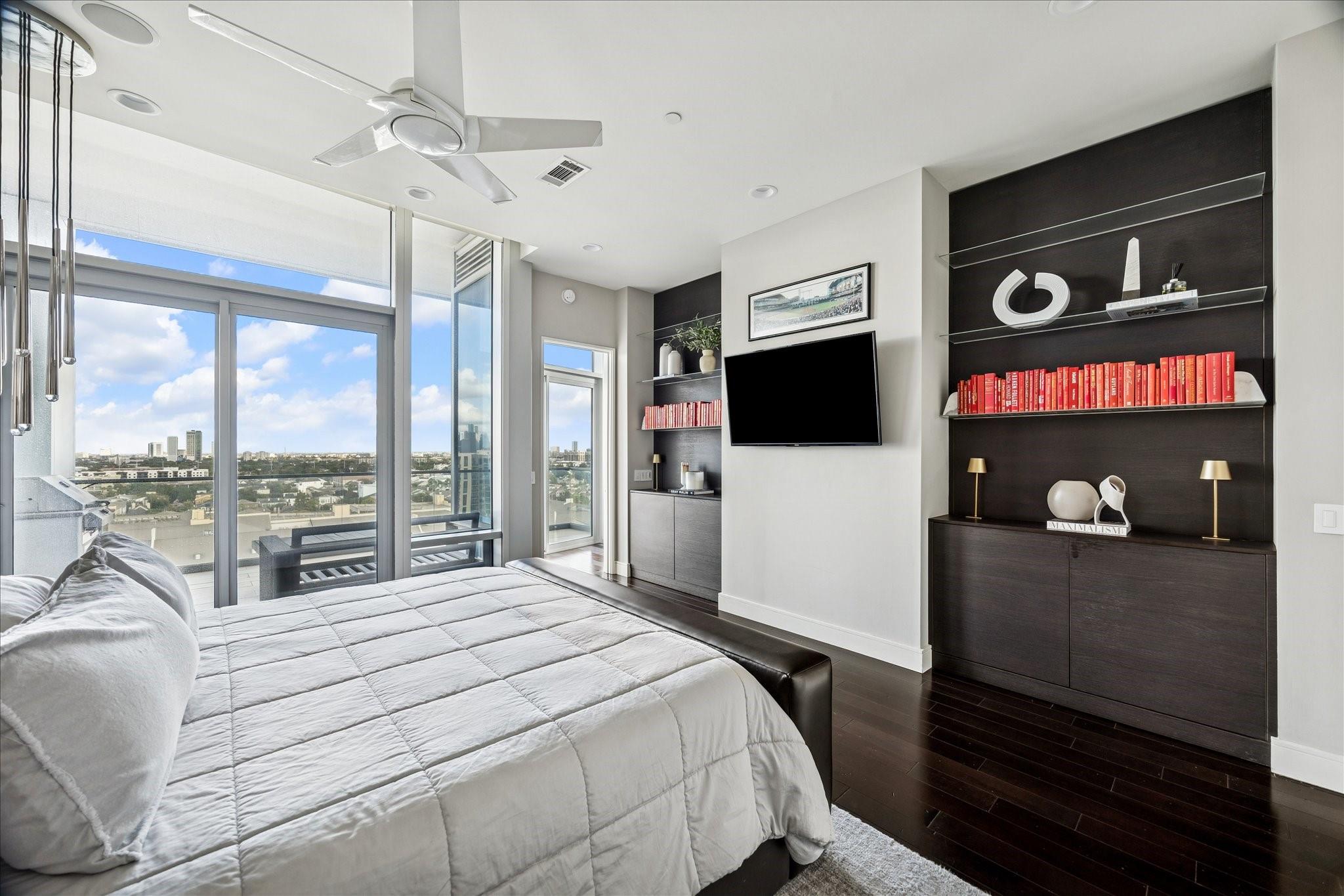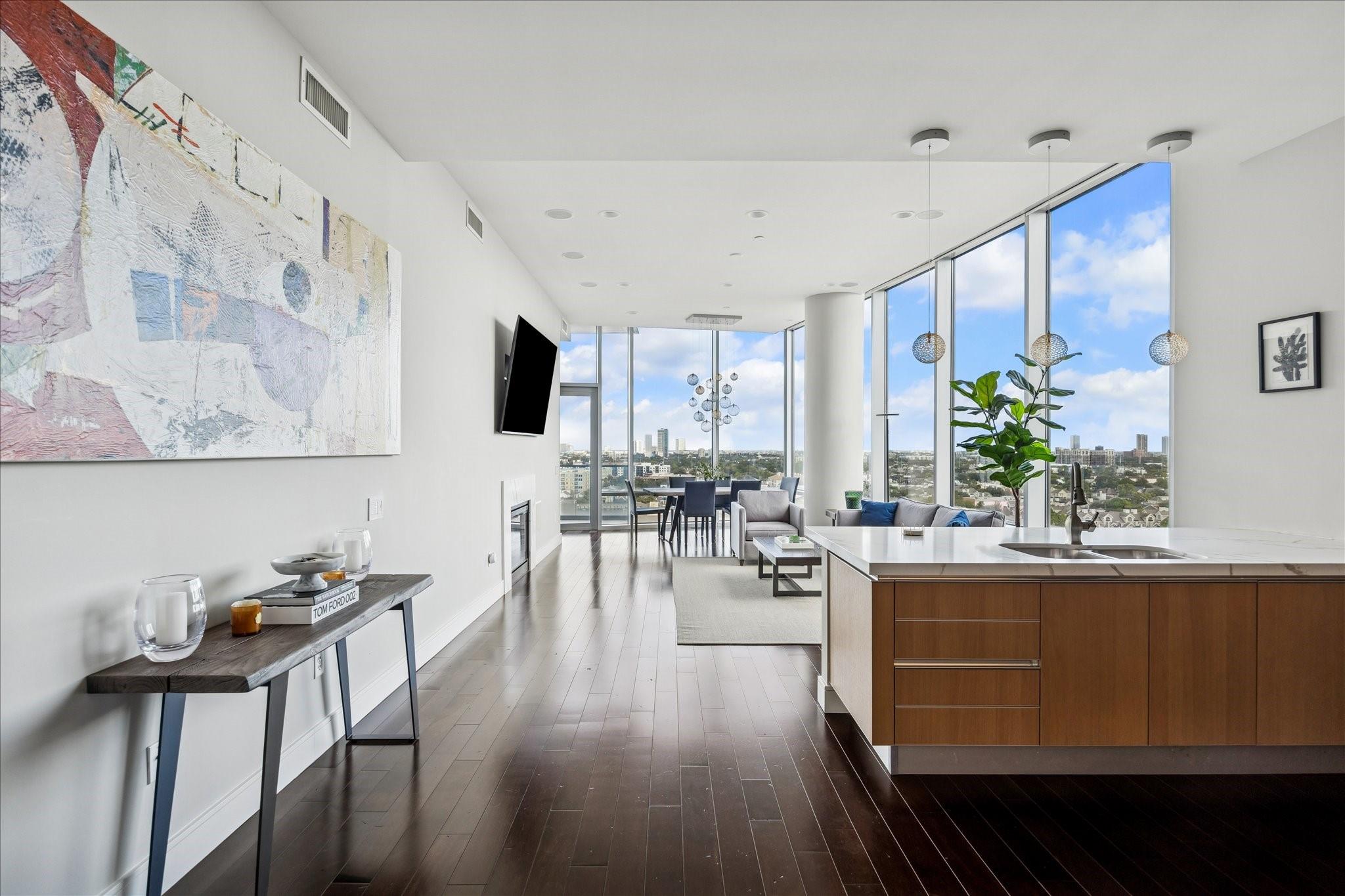 Direct elevator access opens to this 12th-floor 2-bedroom residence at 2727 Kirby with preferred southeastern views of Downtown, the Medical Center, and beyond. Open-concept layout with quartz countertops, Eggersmann cabinetry, and Gaggenau appliance package including gas cooktop. Primary Suite features balcony access, bath with dual vanities, soaking tub, separate shower, and Programme Martin customizable walk-in closet. Sizable terrace with built-in grill. Additional features include Lutron lighting, automated shades, Sonos-controlled sound system, and utility room. Two reserved parking spaces and assigned storage unit. Full-service building with infinity-edge pool, fitness center/spa, catering kitchen, sauna, valet parking, and so much more.