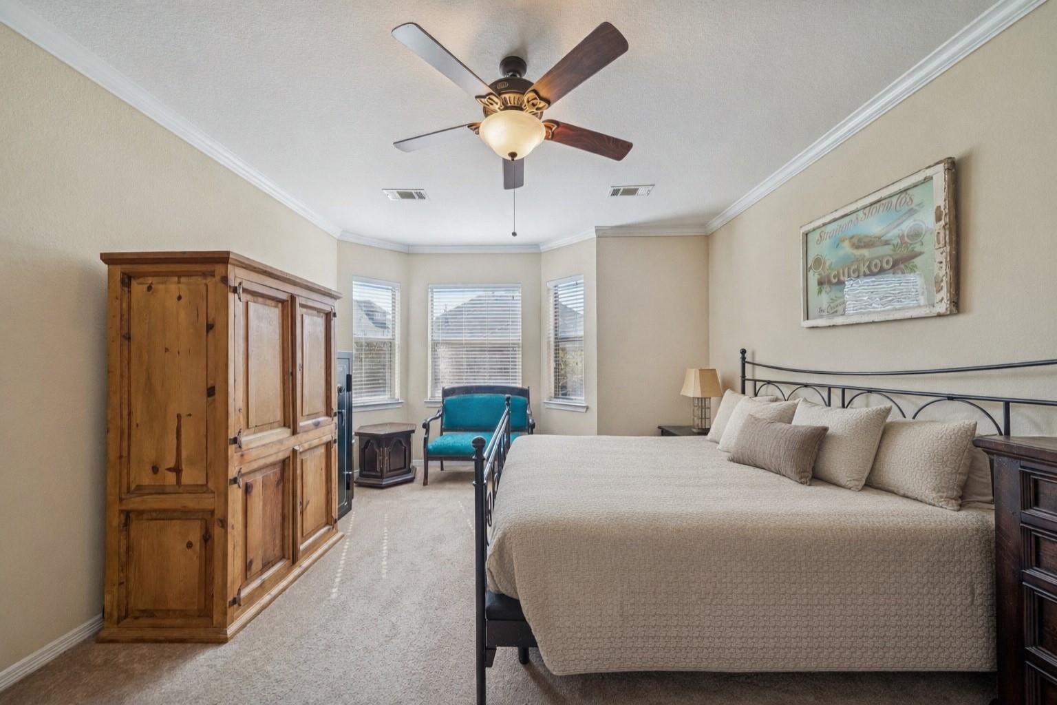 A beautifully maintained 5-bedroom, 3.5-bath Newmark home in the master-planned community of Cross Creek Ranch. This two-story residence offers 2,663 sq/ft of thoughtfully designed living space with the primary suite on the first floor. The open-concept layout features a spacious living area with gas-log fireplace, high ceilings, tile flooring, and abundant natural light. The island kitchen includes granite countertops, stainless steel appliances, gas range, breakfast bar, and ample cabinetry—ideal for everyday living and entertaining. Upstairs offers a large game room plus four secondary bedrooms, including an en-suite option, providing flexibility for guests or home office needs. The primary suite features double sinks, soaking tub, separate shower, and walk-in closet. Enjoy a fenced backyard with covered patio and built in garage storage system. Zoned to Katy ISD with access to amenities, parks, trails, and lakes, easy access to FM 1463 and TX-99.