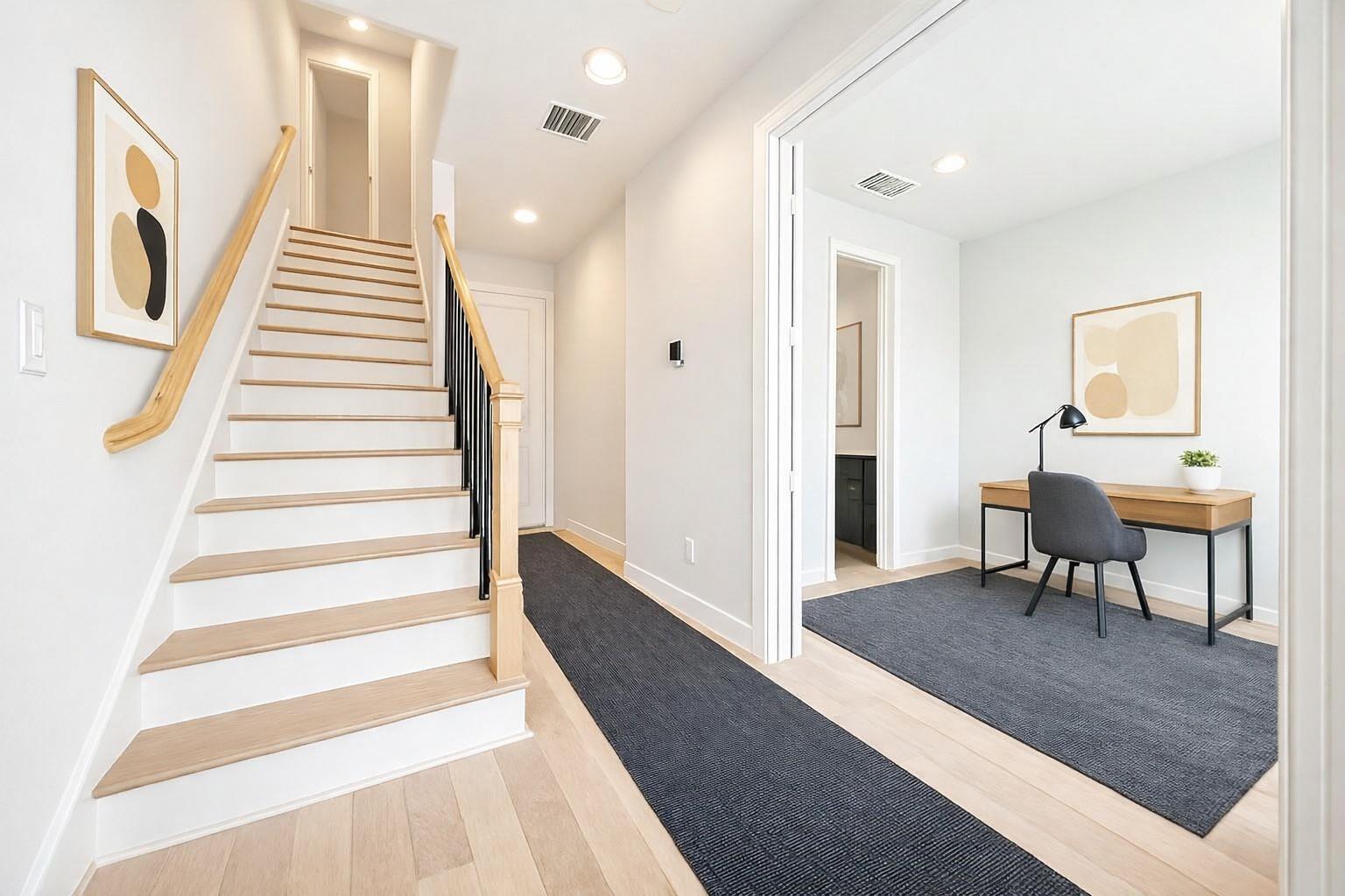Beautiful three bedroom, three and a half bath, three story townhome in a brand new gated community of twenty-nine homes near Downtown Houston and the exciting new East River development. A mix of modern luxury and traditional elegance. This spacious home features an open-concept living area with soaring 12-foot ceilings, wood floors, and abundant natural light pouring through the balcony doors. The gourmet kitchen includes quartz countertops, stainless steel Bosch appliances, and a large island perfect for entertaining. Wood floors throughout! Each bedroom has its own ensuite bath, with the primary suite offering a walk-in closet and spa-like bathroom. An ideal location with quick access to Downtown, major freeways, and local dining, shopping, and entertainment. Whether you're working Downtown or exploring the nearby hiking and biking trails along Buffalo Bayou, this amazing location provides incredible ease of access.