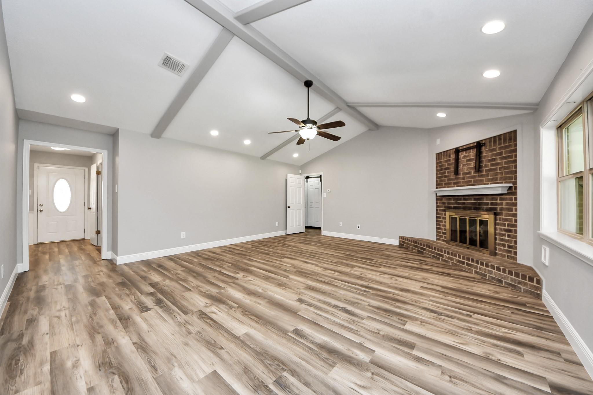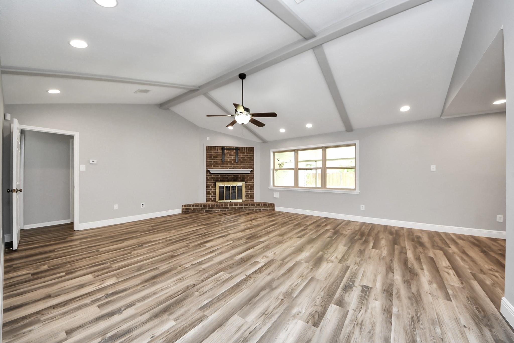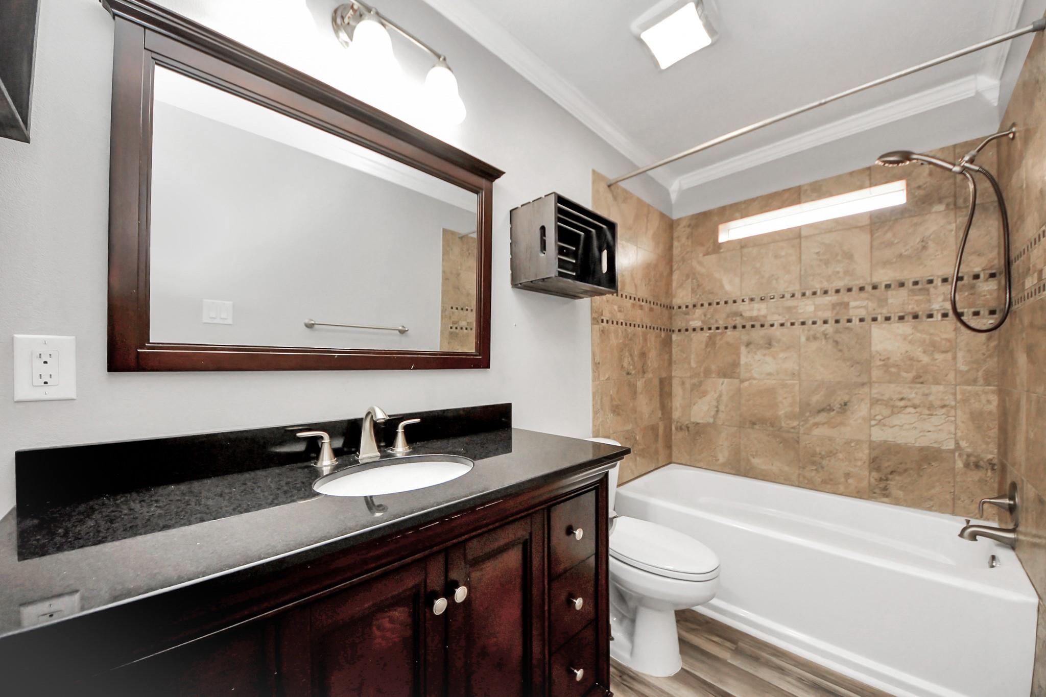Beautiful one-story home in the highly desirable Woodcreek subdivision! This 4-bedroom, 2-bath residence with a study and spacious game room offers plenty of flexible living space. Remodeled just 4 years ago, the home features new roof, fresh interior paint, vinyl plank flooring, recessed lighting, and PEX piping. An extended entry leads to the inviting family room with a cozy fireplace and open flow into the kitchen, which boasts granite countertops, wood cabinetry, a gas cooktop, built-in oven, and a breakfast area. The large primary suite offers a walk-in closet and ensuite bath with a step-in Jacuzzi tub and shower, while secondary bedrooms and the guest bath feature granite counters and tile surround. A versatile game room overlooks the covered patio, perfect for entertaining. Additional highlights include security cameras with monitor, an oversized 2-car garage with epoxy flooring, a large workshop/storage shed, and a private backyard with no rear neighbors.