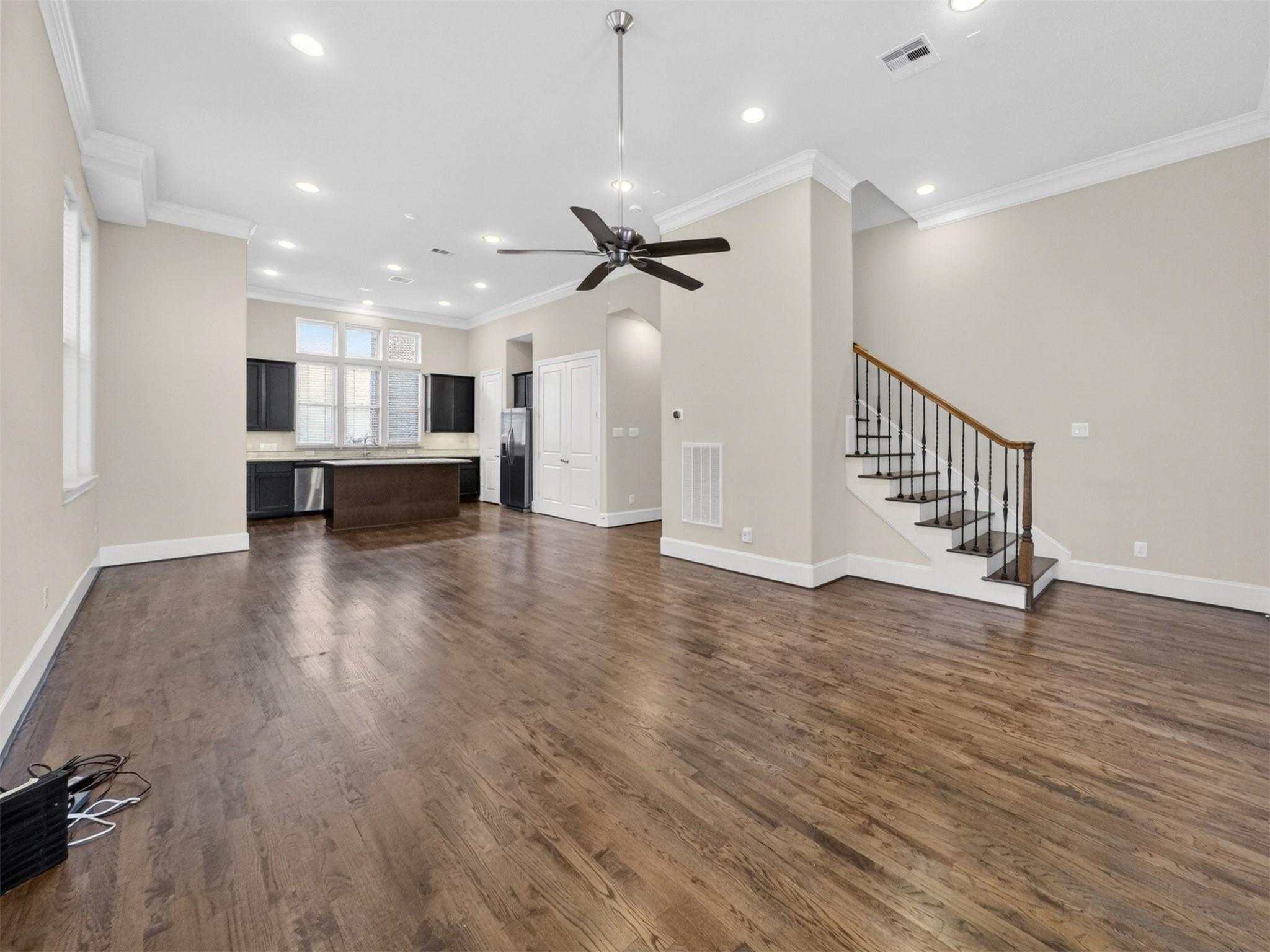 InteriorFloors:Carpet,Tile,Travertine,WoodBathroom Description:Full Secondary Bathroom Down,Half Bath,Primary Bath: Double Sinks,Primary Bath: Jetted Tub,Primary Bath: Separate Shower,Secondary Bath(s): Tub/Shower ComboBedroom Desc:1 Bedroom Down - Not Primary BR,2 Bedrooms Up,En-Suite Bath,Primary Bed - 3rd Floor,Walk-In ClosetKitchen Desc:Island w/o Cooktop,Kitchen open to Family Room,Soft Closing Cabinets,Soft Closing Drawers,Under Cabinet Lighting,Walk-in PantryRoom Description:1 Living Area,Entry,Family Room,Kitchen/Dining Combo,Living Area - 2nd Floor,Living/Dining Combo,Utility Room in HouseHeating:Central Gas,ZonedCooling:Central Electric,ZonedWasher/Dryer Conn:YesDishwasher:YesDisposal:YesCompactor:NoMicrowave:YesRange:Gas CooktopOven:Electric Oven,Single OvenIce Maker:NoAppliances:Dryer Included,Electric Dryer Connection,Full Size,Gas Dryer Connections,Refrigerator,Washer IncludedEnergy Feature:Attic Vents,Ceiling Fans,Digital Program Thermostat,Energy Star/CFL/LED Lights,High-Efficiency HVAC,Insulated/Low-E windows,Insulation - Batt,Insulation - Blown Cellulose,North/South ExposureInterior:Alarm System - Owned,Fire/Smoke Alarm,Formal Entry/Foyer,Prewired for Alarm System,Refrigerator Included,Window Coverings