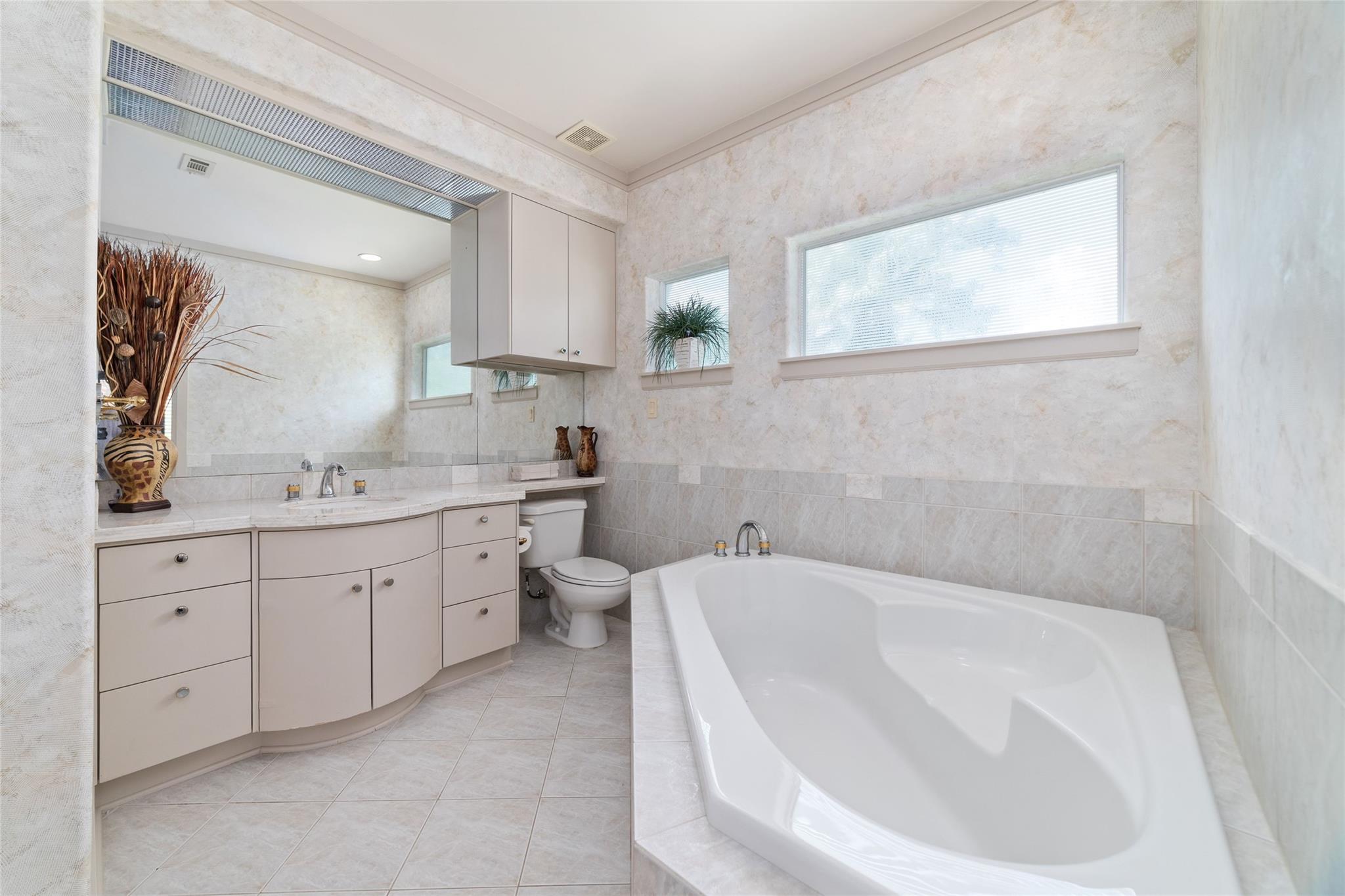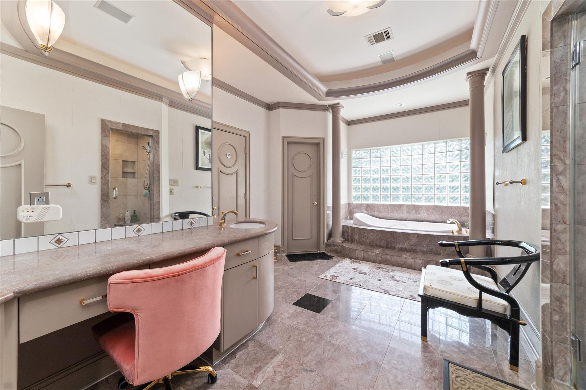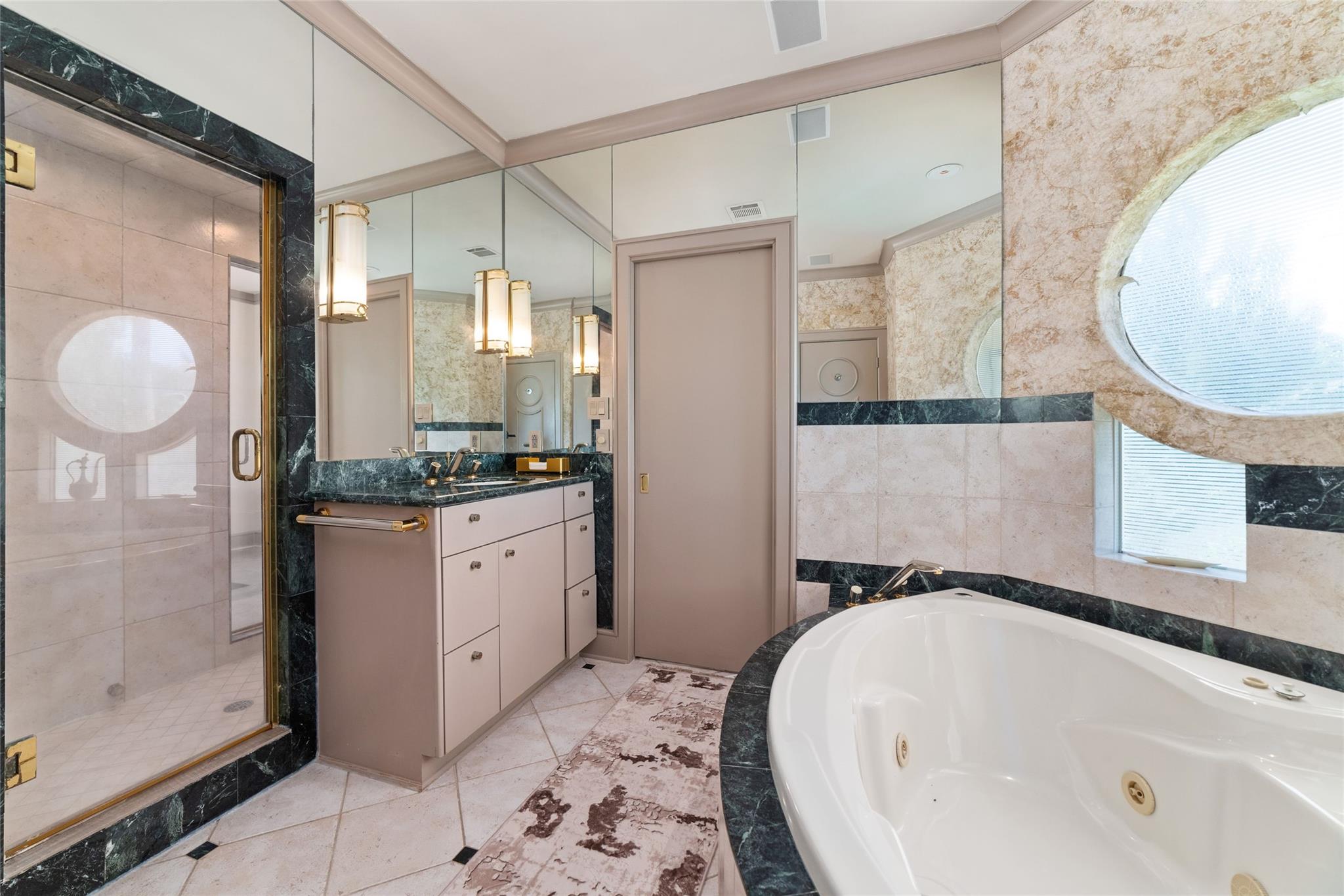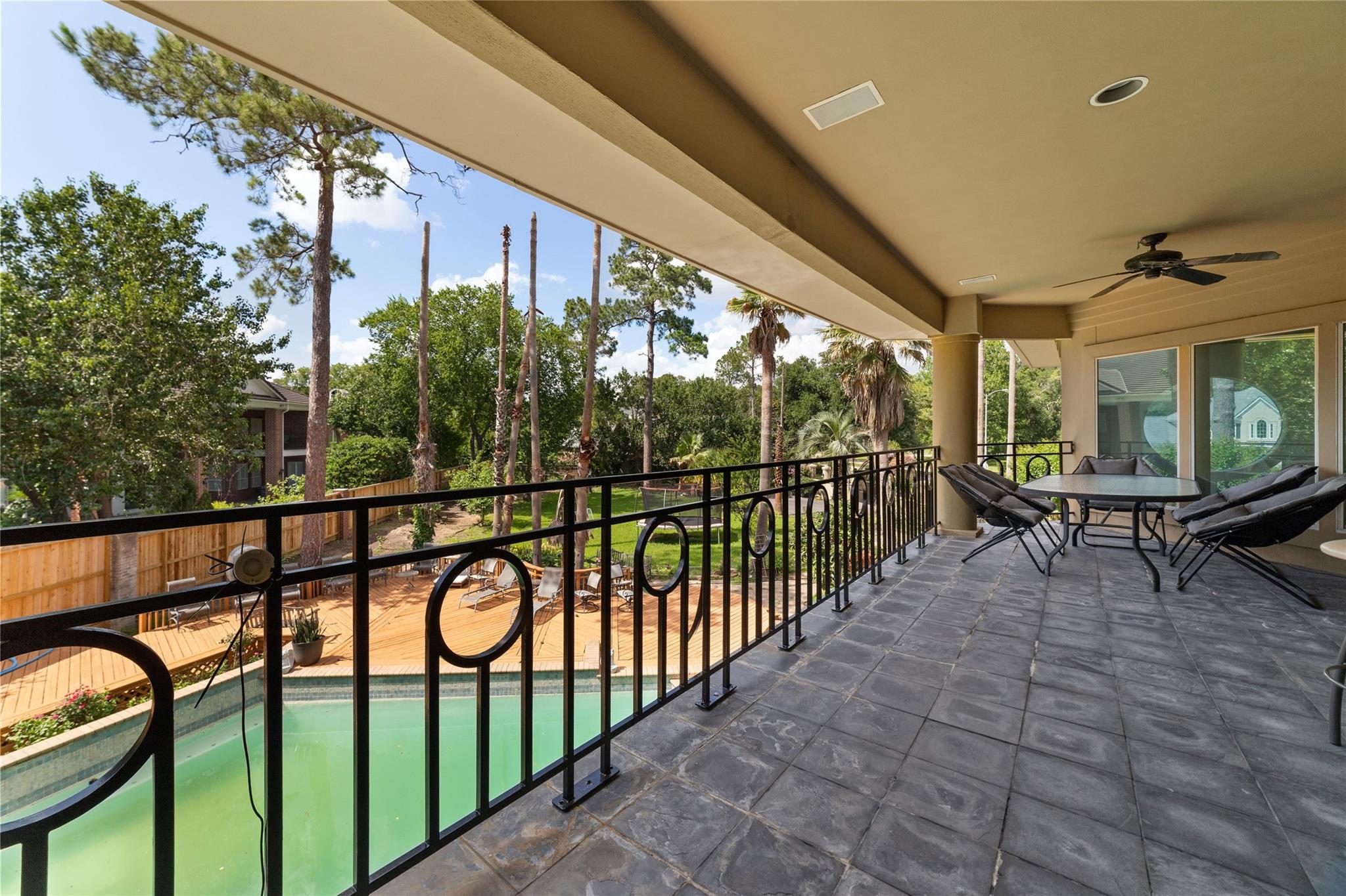 Executive home in the prestigious Northgate Country Club community, situated on two lots totaling approximately 0.76 acres. Designed for both entertaining and everyday comfort, the first floor offers a seamless flow with a dramatic two-story entry, sweeping staircase, and statement chandelier. A private study with built-ins and a spacious formal dining room sit off the foyer, connected to the kitchen by a convenient butler’s pantry. The kitchen features granite countertops, a large island, breakfast bar, and opens to the breakfast area, game room, media room, and expansive living room with walk-in bar. Upstairs includes two primary suites. The main retreat offers separate his-and-hers bathrooms with jetted tubs, oversized walk-in closets, and a private balcony overlooking the pool. Close to shopping, dining, and medical facilities. Includes two separate lots with individual Tax IDs.