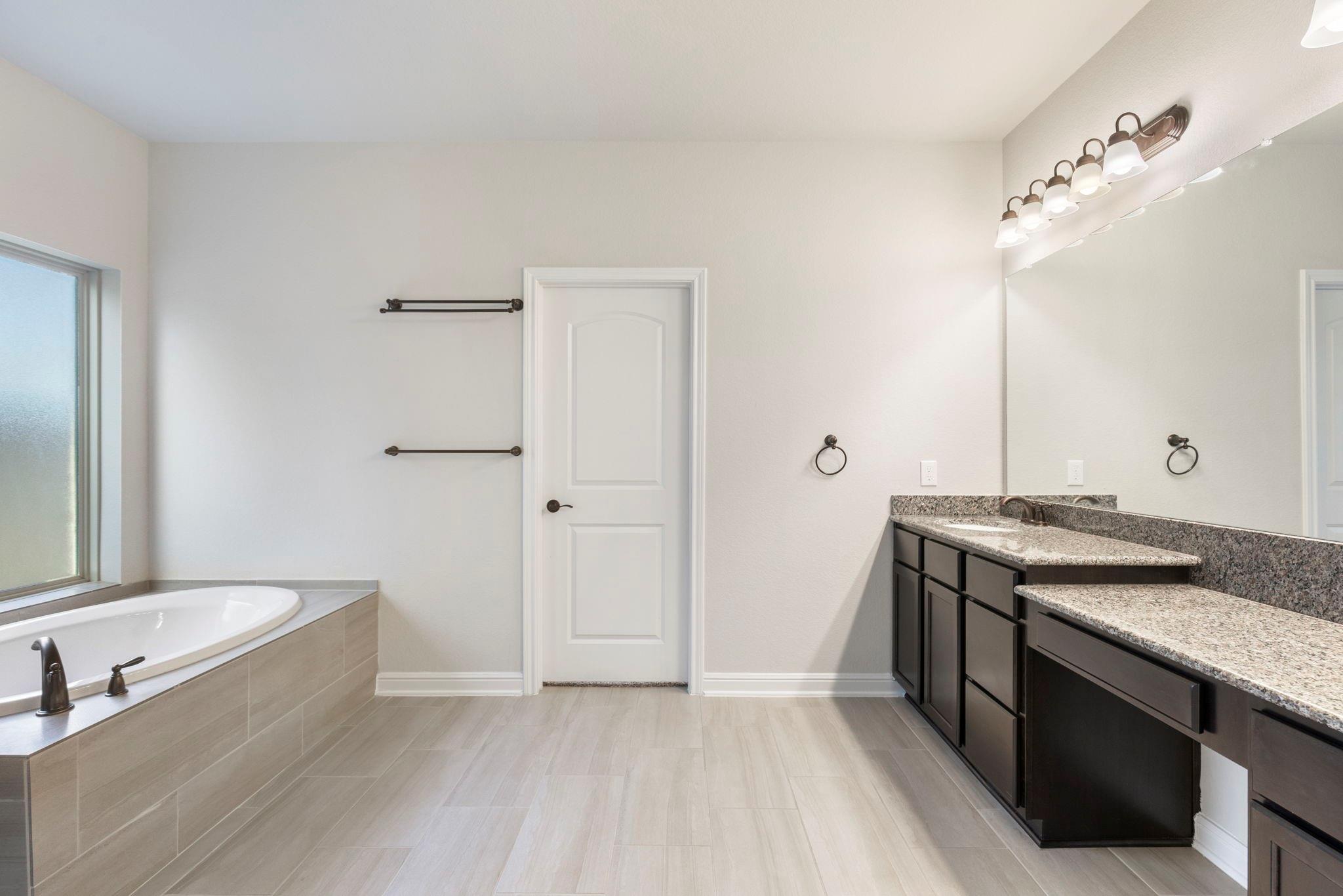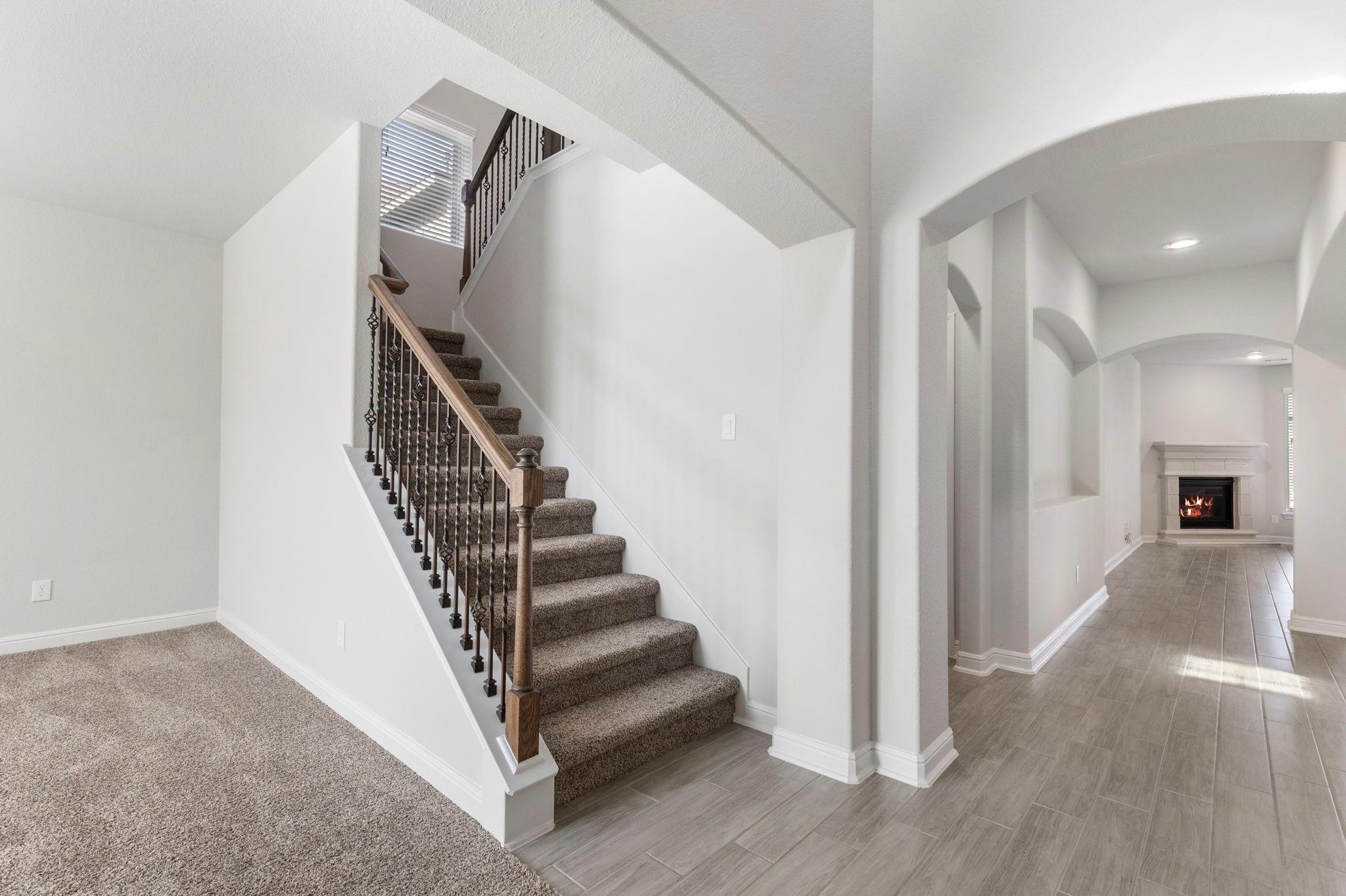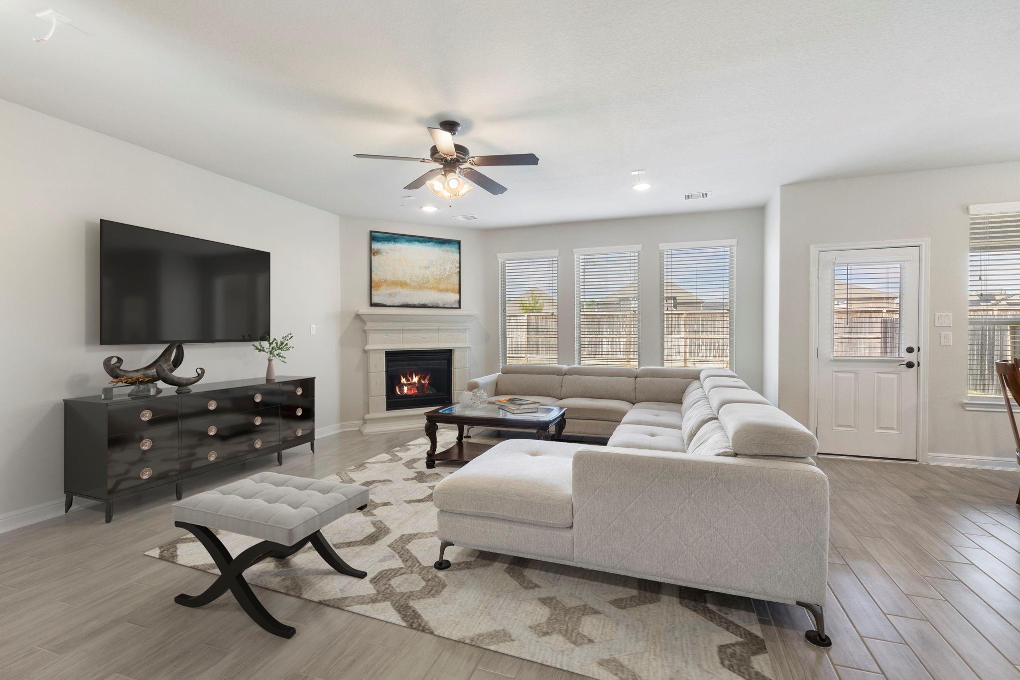 Briarwood homes of luxurious living in Bradbury Forest community. A masterpiece of design, the 4-sided brick residence exudes elegance with high ceilings, venetian blinds, and wrought iron spindles. Revel in the warmth of the 36” stone-surround fireplace in the expansive great room, or find solace in the tranquil primary suite featuring a walk-in closet, dual vanities, a drop-in tub, and a separate shower. The heart of the home lies in the beautiful island kitchen, adorned with granite countertops, a tile backsplash, 42” upper cabinets, and a breakfast bar. Unwind on the covered patio and with no back neighbor. Explore the community's playground and swimming pool. Commuters will appreciate the proximity to the highways Tx-99 Grand Parkway, Hardy Toll Road, and I-45. While residents relish easy access to Bush Intercontinental Airport. Premier shopping, dining, and entertainment at City Place, Hughes Landing, The Woodlands Mall, and Market Street.