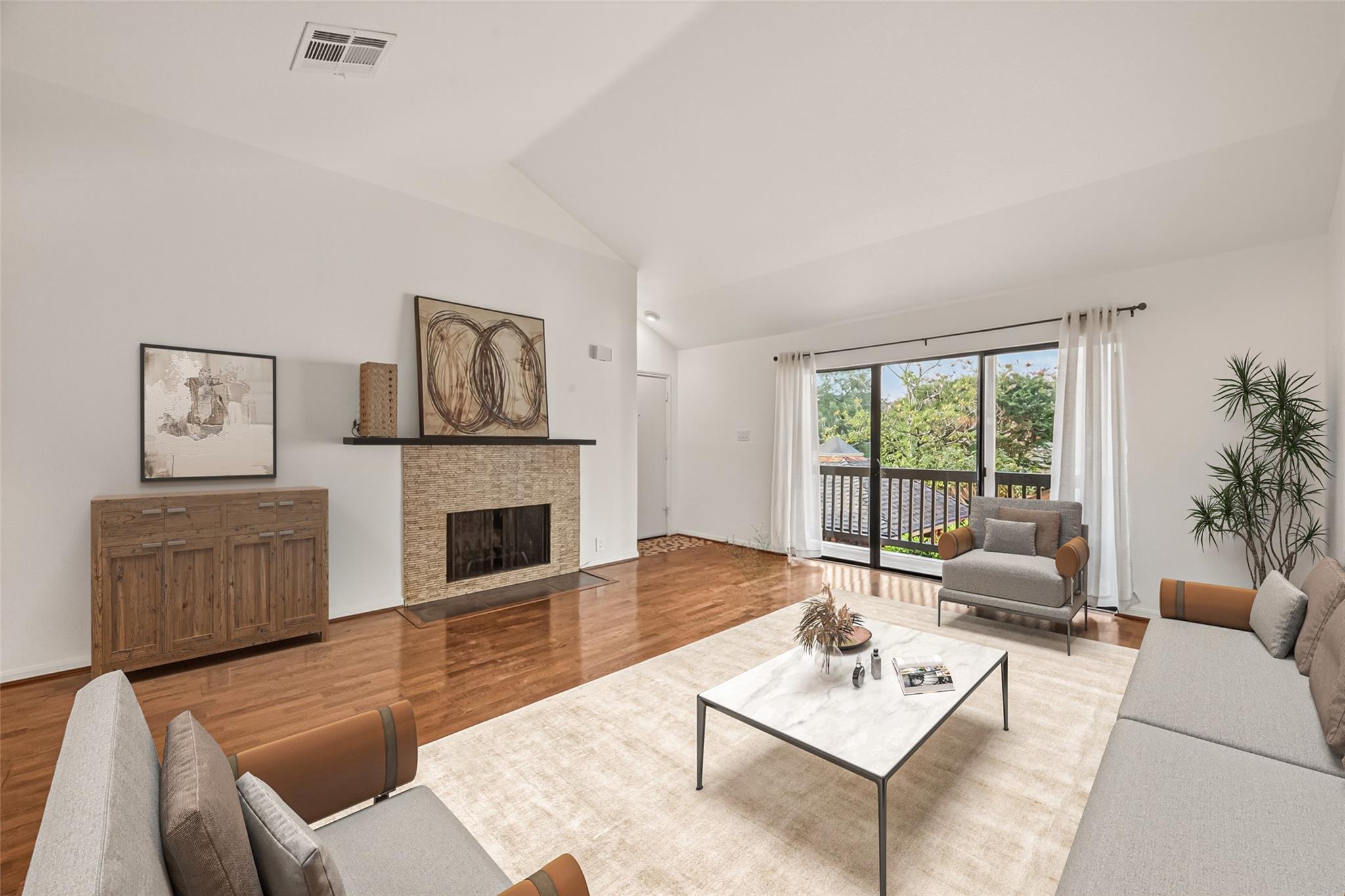 Located in the highly desirable Upper Kirby/Greenway Plaza area, 2829 Timmons offers exceptional walkability and central Houston convenience, just minutes from River Oaks District, Highland Village, Montrose, and The Galleria. This second-floor 1-bedroom condo in a gated community features high ceilings, a cozy fireplace, and a private balcony with sliding glass doors. The kitchen includes granite countertops, stainless steel appliances, and under-cabinet lighting. Recent updates include fresh interior paint, an updated bathroom, and a 1-year-old AC unit. The spacious primary bedroom offers a large walk-in closet, and the home includes a refrigerator and stackable washer and dryer. Residents enjoy a community pool and quick access to US-59 (I-69), Loop 610, and Westheimer for easy commuting to Downtown and the Medical Center.