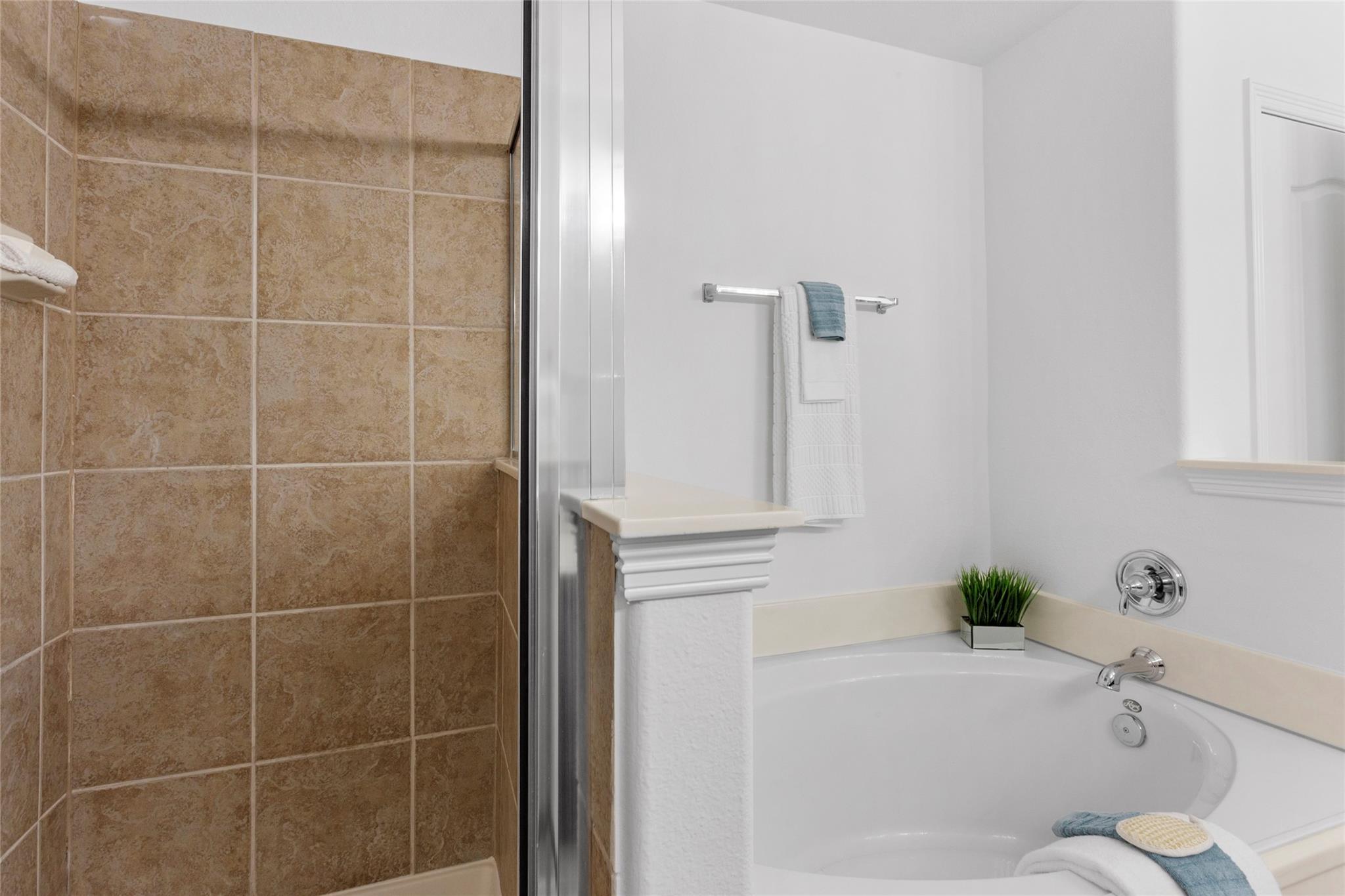 Welcome to this beautifully updated 3-bedroom, 2.5-bathroom townhome located in the gated community of Seaside Village, offering comfort, style, and privacy. Fresh interior paint and brand-new carpet upstairs complement the modern lighting updates found throughout the home. The home features an oversized 2-car garage with direct access to a private backyard—complete with mature trees and a walk-out patio. Inside, you'll find walk-in closets, generous storage, and a large primary suite featuring a cozy sitting area, spa-like ensuite bathroom with dual sinks, a soaking tub, and a glass-enclosed shower. A new AC unit adds efficiency and peace of mind. Enjoy the convenience of low-maintenance living in a well-maintained, gated neighborhood. The community pool, cookout, and lounging areas provide the perfect setting for summer fun just a short walk away. This move-in-ready home is located just 5 minutes from NASA and conveniently located near schools, shopping, dining and entertainment.