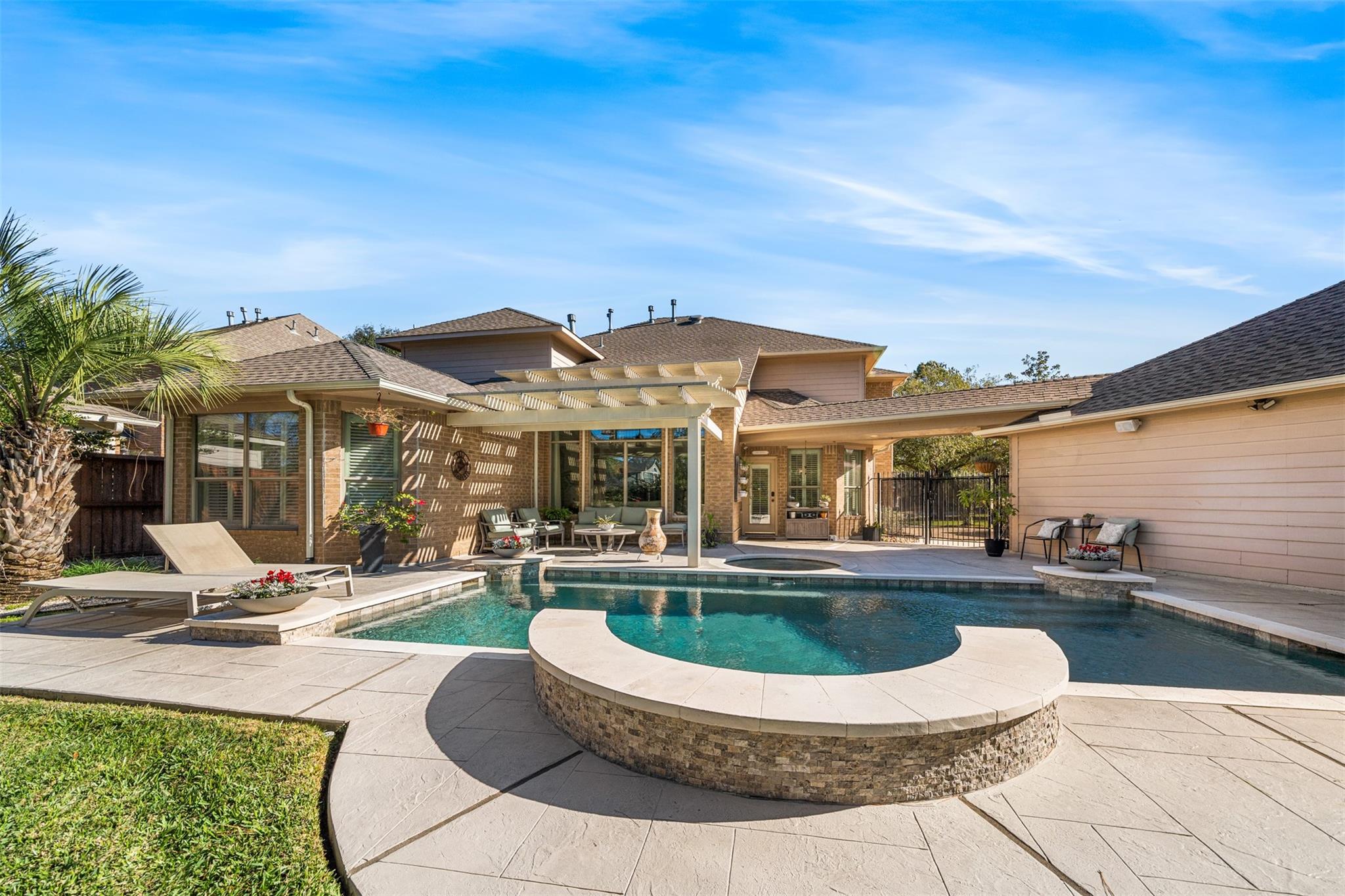 ExteriorRoof:Composition,Wood ShingleFoundation:SlabPrivate Pool:YesPrivate Pool Desc:Gunite,In Ground,Pool With Hot Tub AttachedExterior Type:Brick,Cement BoardLot Description:Subdivision LotGarage Carport:Auto Garage Door OpenerWater Sewer:Water DistrictArea Pool:YesExterior:Back Yard Fenced,Fully Fenced,Patio/Deck,Private Driveway,Spa/Hot Tub,Sprinkler System,Subdivision Tennis Court