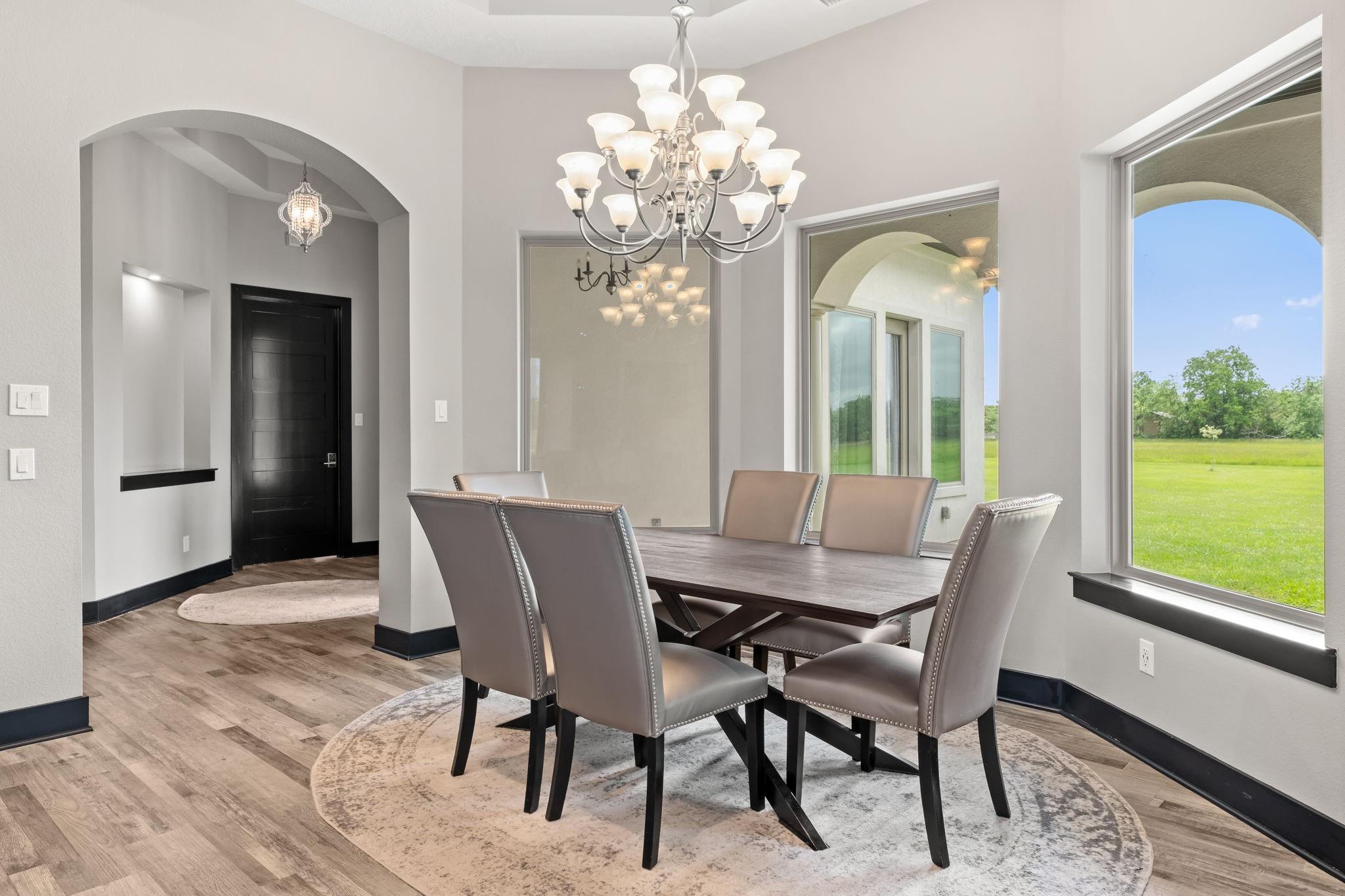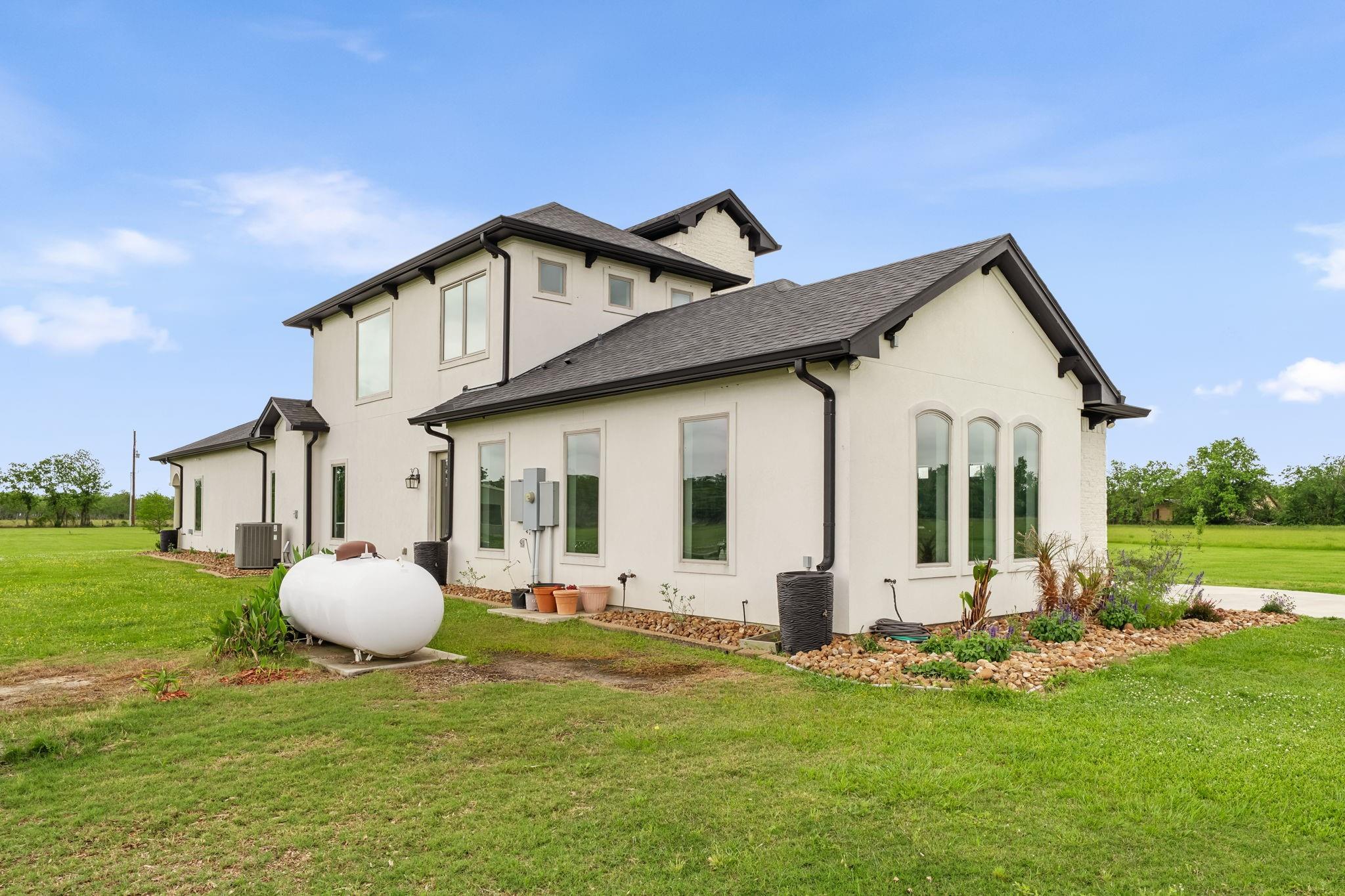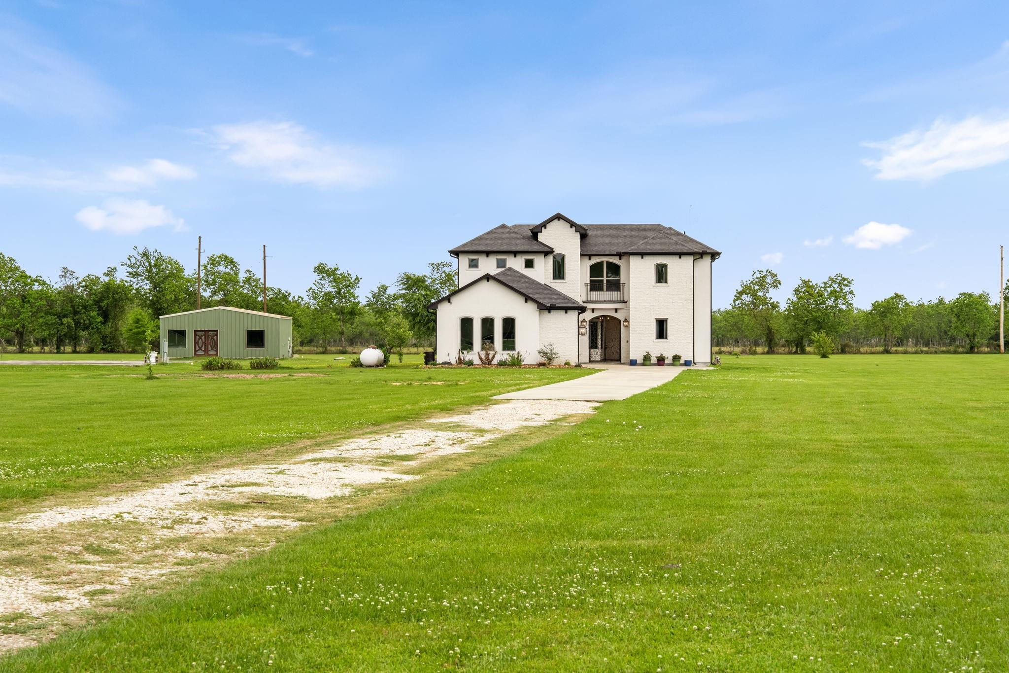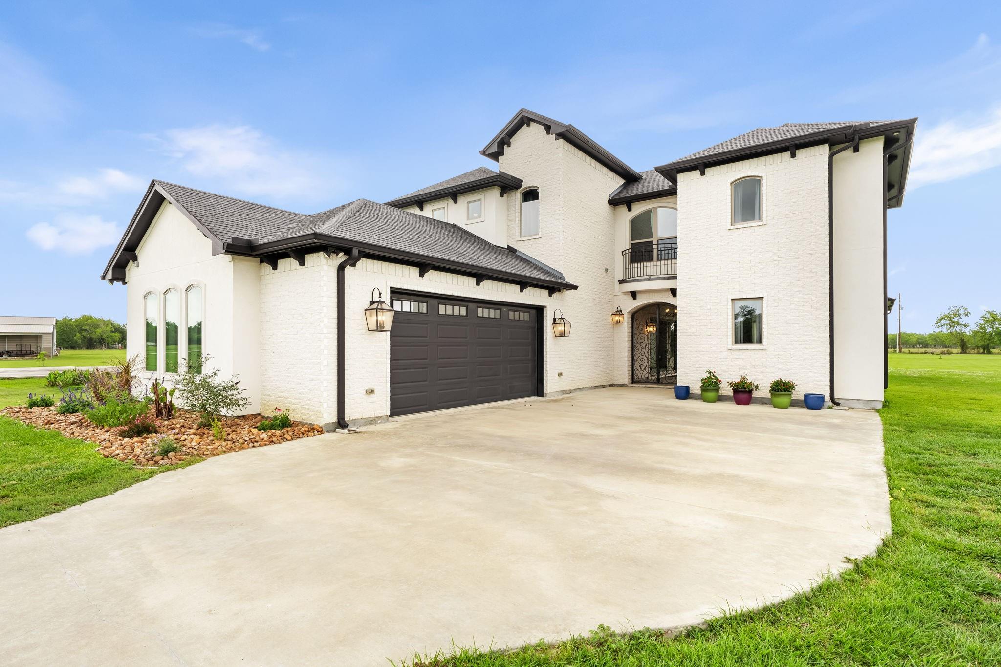 Welcome to 2856 Wolcek Road in Crosby! Situated on 7 private expansive ag-exempt acres, this stunning 4/5 bedroom home offers 4 full and 1 half baths. ADA compliant and elevator-ready, the home is filled with custom details. The kitchen showcases a large island with sink, touch-free faucet, refrigerator with a built-in Keurig and a pot-filler. A water softener with reverse osmosis system adds to the smart-home features. The primary room is on the first floor with another office or bedroom nearby. Also, on the first floor, you will find a safe-room and the full utility room including a mudroom. Upstairs, there are two ensuite bedrooms and a game room with a balcony. Outside, you will find a separate in-law ensuite bedroom AND a ready plumbed pad where you can build a carport, workshop or extra living space, AND an additional flex-space building ready to be completed. The sellers have builder plans. Don't miss the opportunity to own this remarkable property. Schedule your showing today!