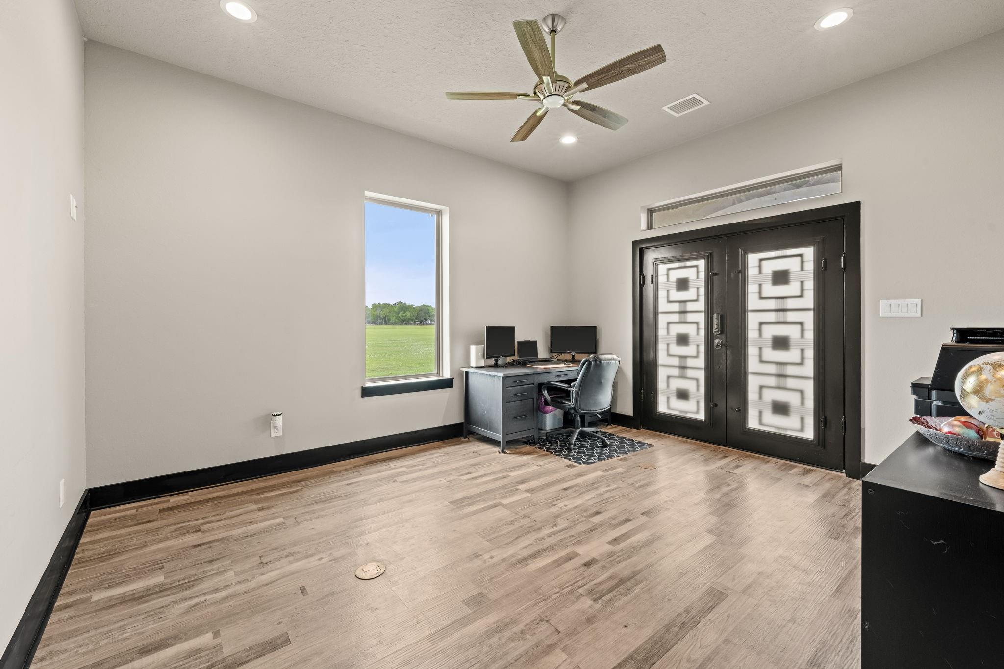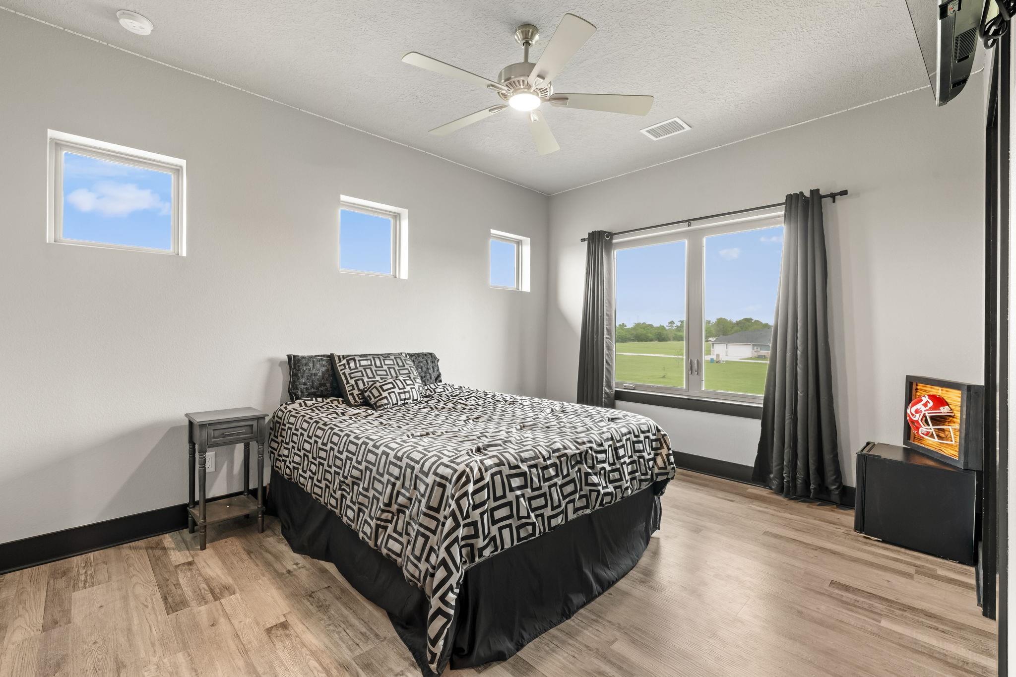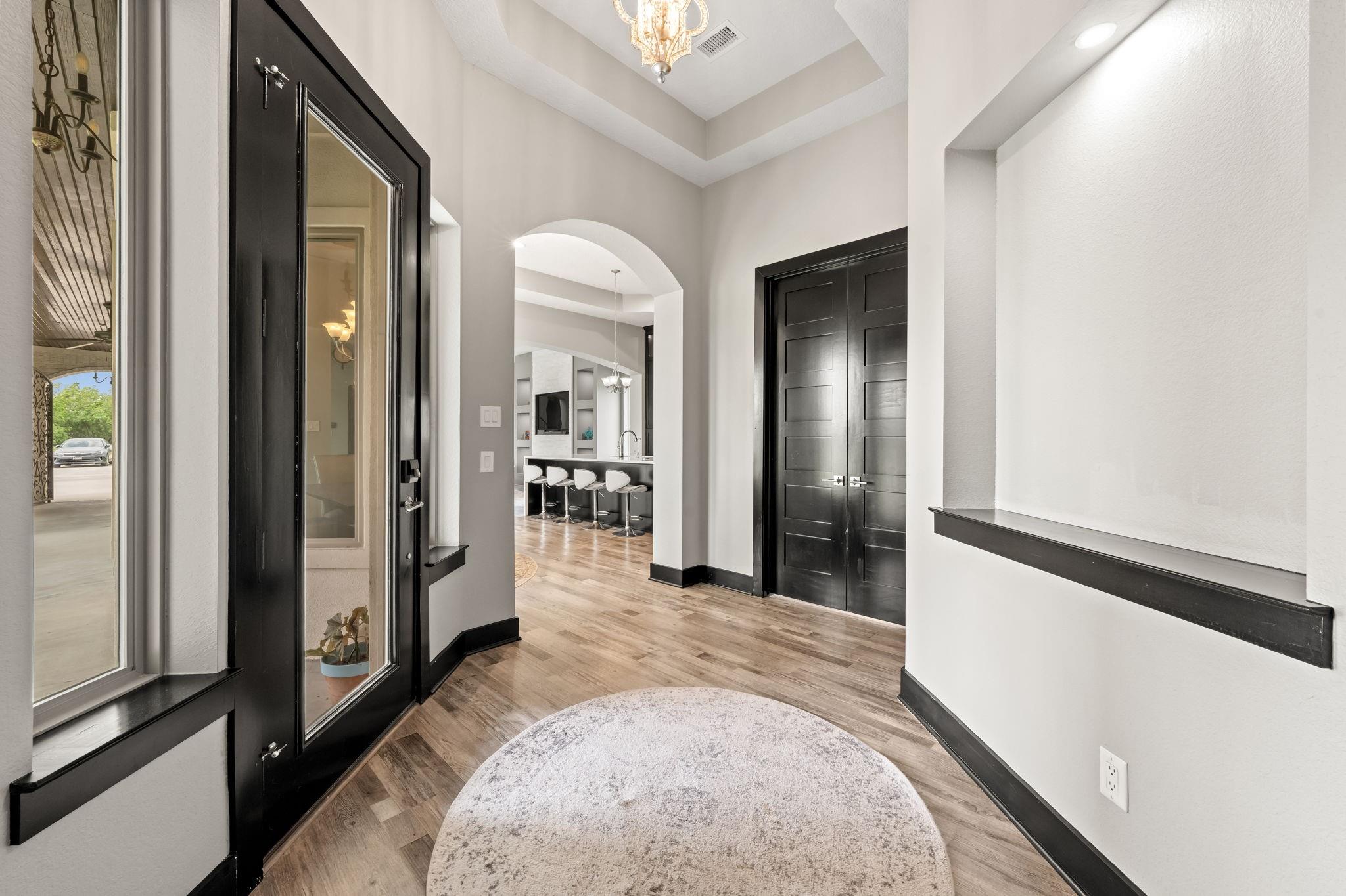 Welcome to 2856 Wolcek Road in Crosby! Situated on 7 private expansive ag-exempt acres, this stunning 4/5 bedroom home offers 4 full and 1 half baths. ADA compliant and elevator-ready, the home is filled with custom details. The kitchen showcases a large island with sink, touch-free faucet, refrigerator with a built-in Keurig and a pot-filler. A water softener with reverse osmosis system adds to the smart-home features. The primary room is on the first floor with another office or bedroom nearby. Also, on the first floor, you will find a safe-room and the full utility room including a mudroom. Upstairs, there are two ensuite bedrooms and a game room with a balcony. Outside, you will find a separate in-law ensuite bedroom AND a ready plumbed pad where you can build a carport, workshop or extra living space, AND an additional flex-space building ready to be completed. The sellers have builder plans. Don't miss the opportunity to own this remarkable property. Schedule your showing today!