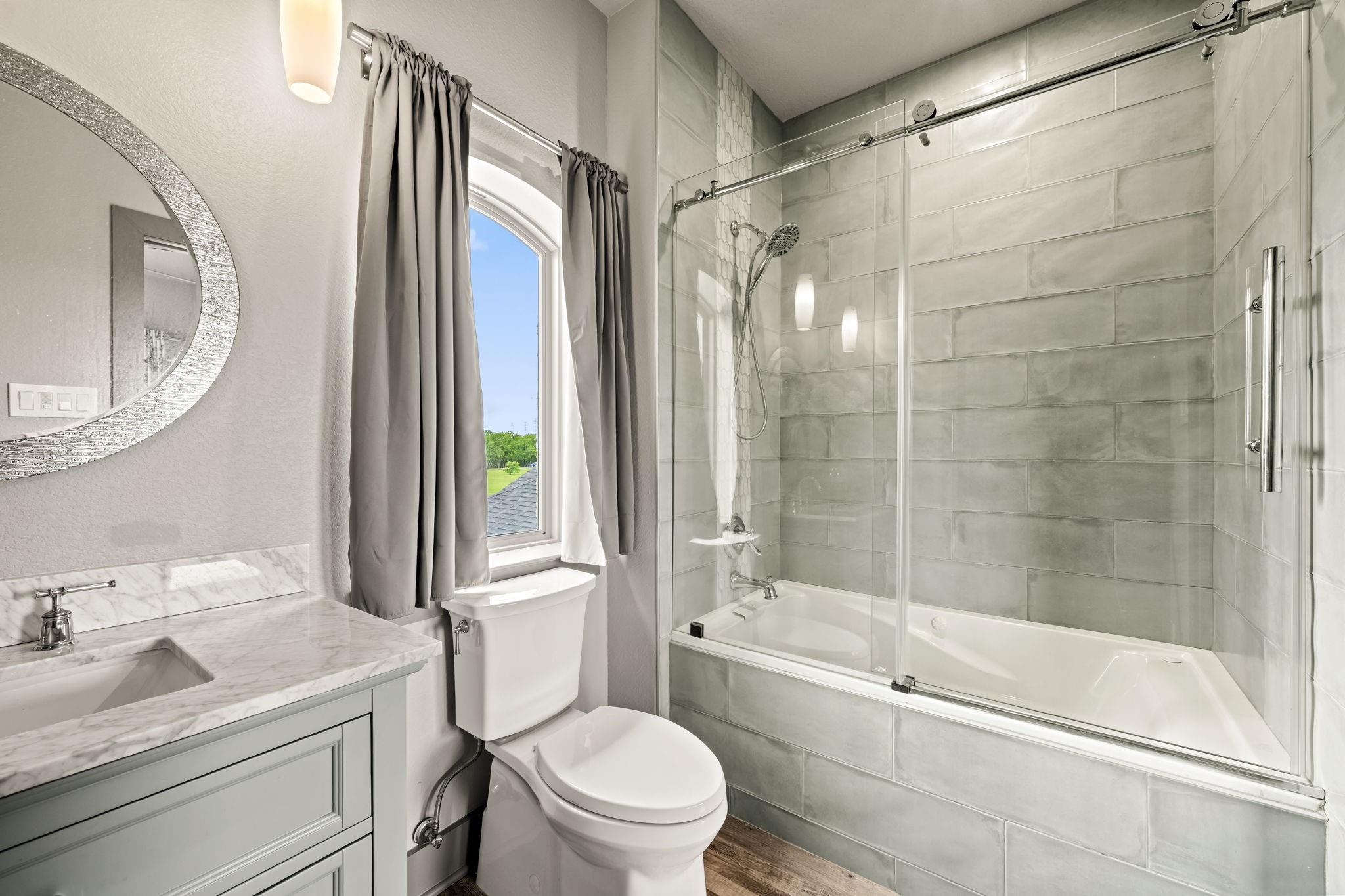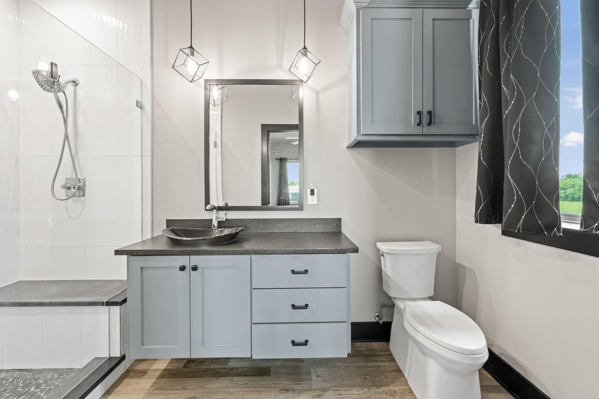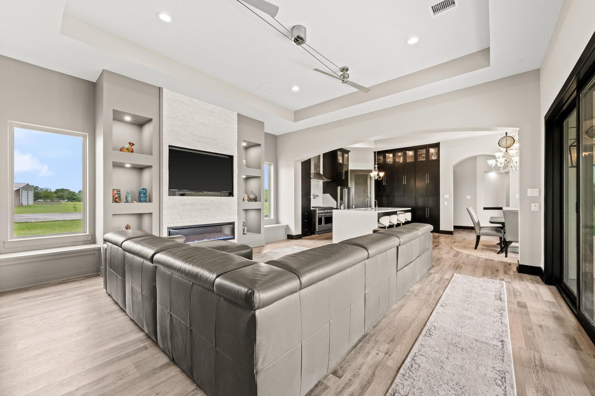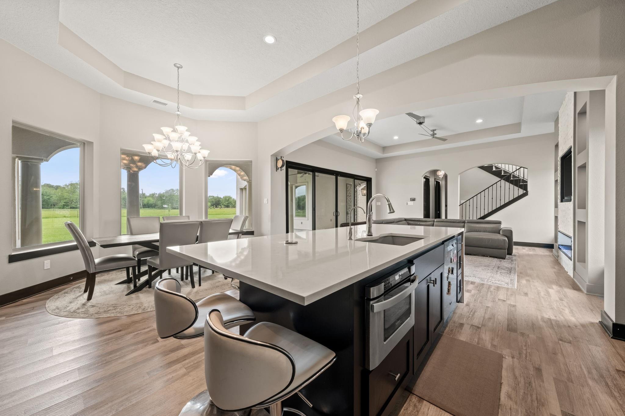 Welcome to 2856 Wolcek Road in Crosby! Situated on 7 private expansive ag-exempt acres, this stunning 4/5 bedroom home offers 4 full and 1 half baths. ADA compliant and elevator-ready, the home is filled with custom details. The kitchen showcases a large island with sink, touch-free faucet, refrigerator with a built-in Keurig and a pot-filler. A water softener with reverse osmosis system adds to the smart-home features. The primary room is on the first floor with another office or bedroom nearby. Also, on the first floor, you will find a safe-room and the full utility room including a mudroom. Upstairs, there are two ensuite bedrooms and a game room with a balcony. Outside, you will find a separate in-law ensuite bedroom AND a ready plumbed pad where you can build a carport, workshop or extra living space, AND an additional flex-space building ready to be completed. The sellers have builder plans. Don't miss the opportunity to own this remarkable property. Schedule your showing today!