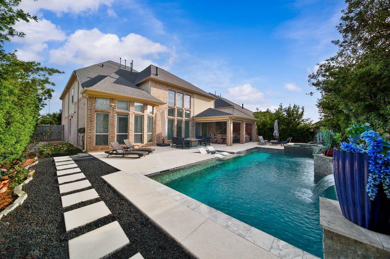 Situated on a desirable CORNER, CUL-DE-SAC LOT, this stunning two-story home offers the perfect blend of comfort and luxury. The BACKYARD is a true OASIS, featuring a SALTWATER POOL & SPA surrounded by lush landscaping for ultimate privacy, plus an OUTDOOR KITCHEN and PERGOLA w/ MOTORIZED SHADES—ideal for entertaining or relaxing year-round. Inside, soaring ceilings create an inviting atmosphere, while the GOURMET KITCHEN boasts DBL OVENS and ample space for cooking and gathering. A highly sought after 2ND BEDROOM + FULL BATH DOWN - perfect for guests or multi-generational living. Upstairs, enjoy a spacious GAMEROOM & MEDIA, and 3 additional bedrooms. With abundant storage throughout and a 3-car garage, this home has it all!! ZONED TO KATY ISD. All K-12 schools are in the community! Conveniently located directly across from Campbell Elem and Greenthread Waterpark. FREE FITNESS CENTER for all CCR Residents. Amenities Galore incl 4 Pools, Pickleball & Tennis, Dog Park & More. Come See!