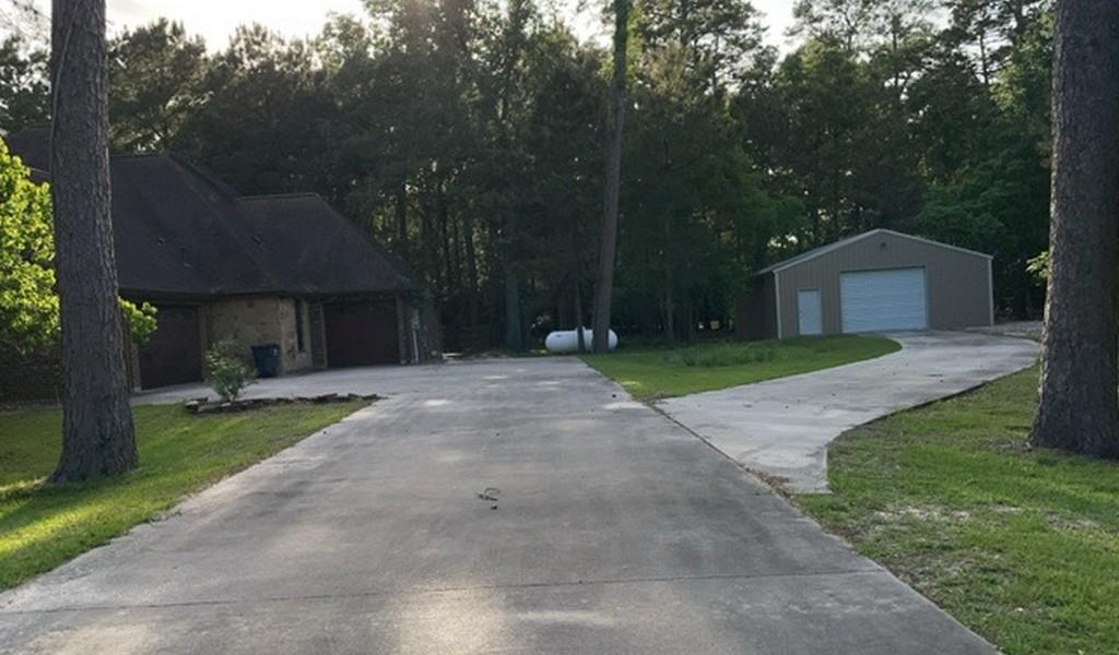 This home sits on just under 1.5 peaceful acres near Lake Houston. This property offers 3 spacious bedrooms and 2.5 stylish baths, with an open floor plan that showcases high ceilings, abundant natural light, and a gourmet kitchen complete with premium appliances and a large island. Unwind in the luxurious primary suite featuring a spa-like bathroom and a generous walk-in closet, while additional bedrooms provide plenty of options. Enjoy the outdoors with ample space for gardening and recreation, plus a massive four-car garage and a workshop—ideal for car lovers and hobbyists.