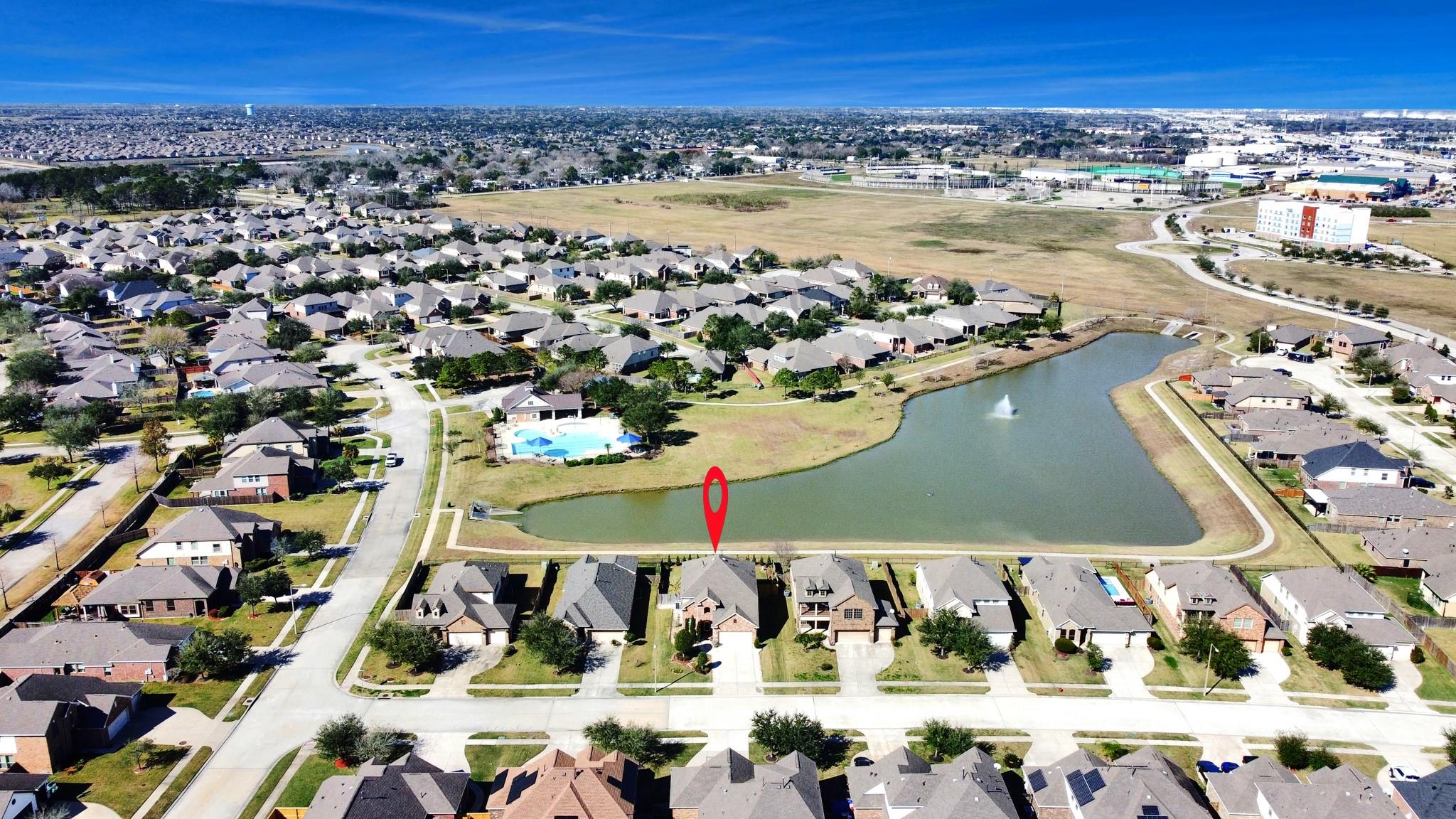 BEAUTIFUL LAKE VIEW HOME Featuring the Chesmar Homes Pacifica floor plan, this impressive two-story residence offers 4 bedrooms, 2.5 baths, and 2,397 sq ft of well-designed living space. The grand two-story entry opens to a spacious family room and an open-concept kitchen with granite countertops, tile backsplash, stainless steel Energy Star appliances, and a breakfast area. Formal dining showcases elegant wood flooring, while iron spindle stairs lead to an upstairs game room and secondary bedrooms. The primary suite is conveniently located downstairs and includes a jetted tub, separate shower, and large walk-in closet. Enjoy peaceful lake views from the primary bedroom, kitchen, and living area. Covered brick patio with gas connection, fenced backyard, and great curb appeal complete this home. Schedule your private showing today and experience this waterfront property for yourself.