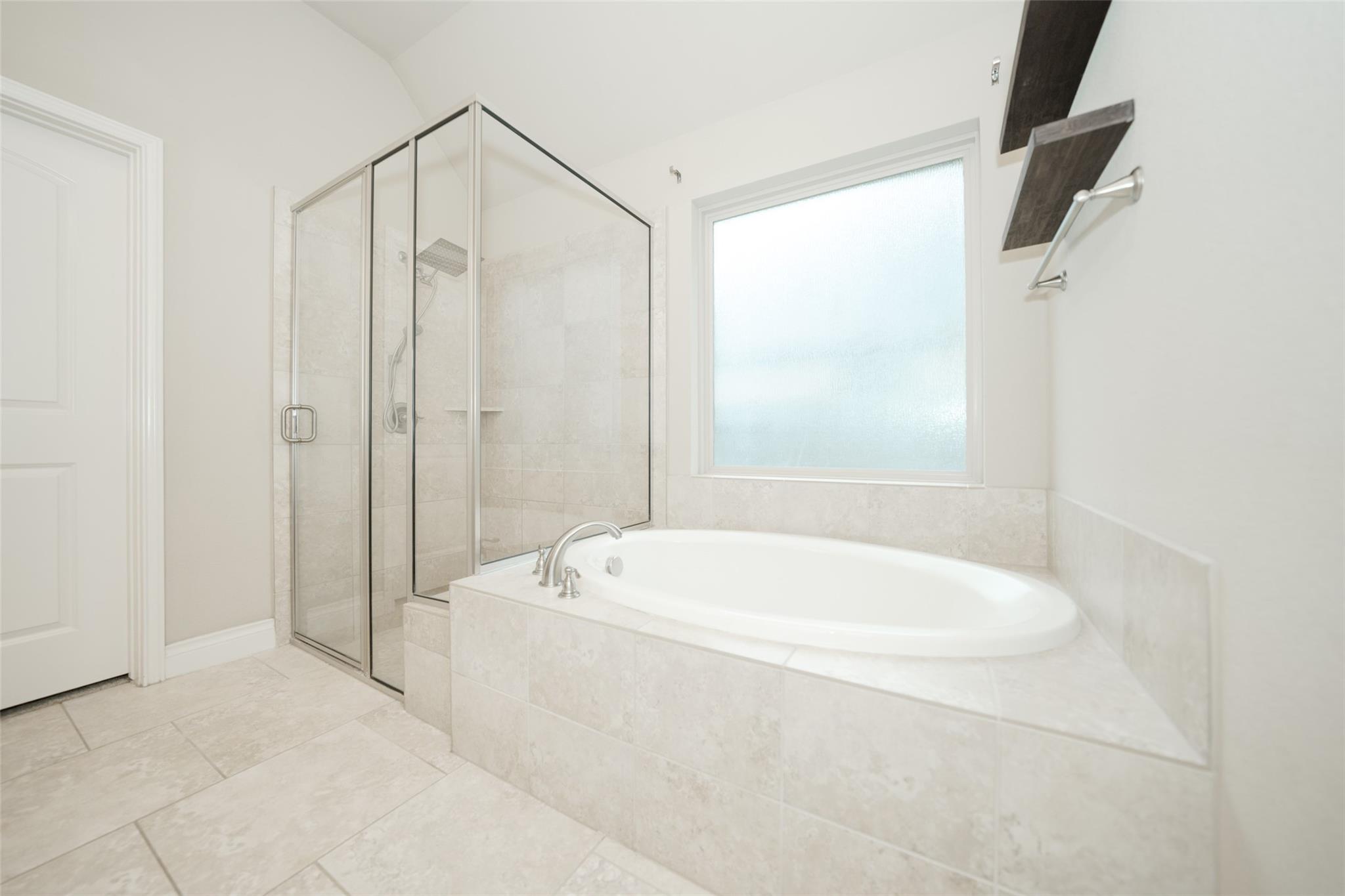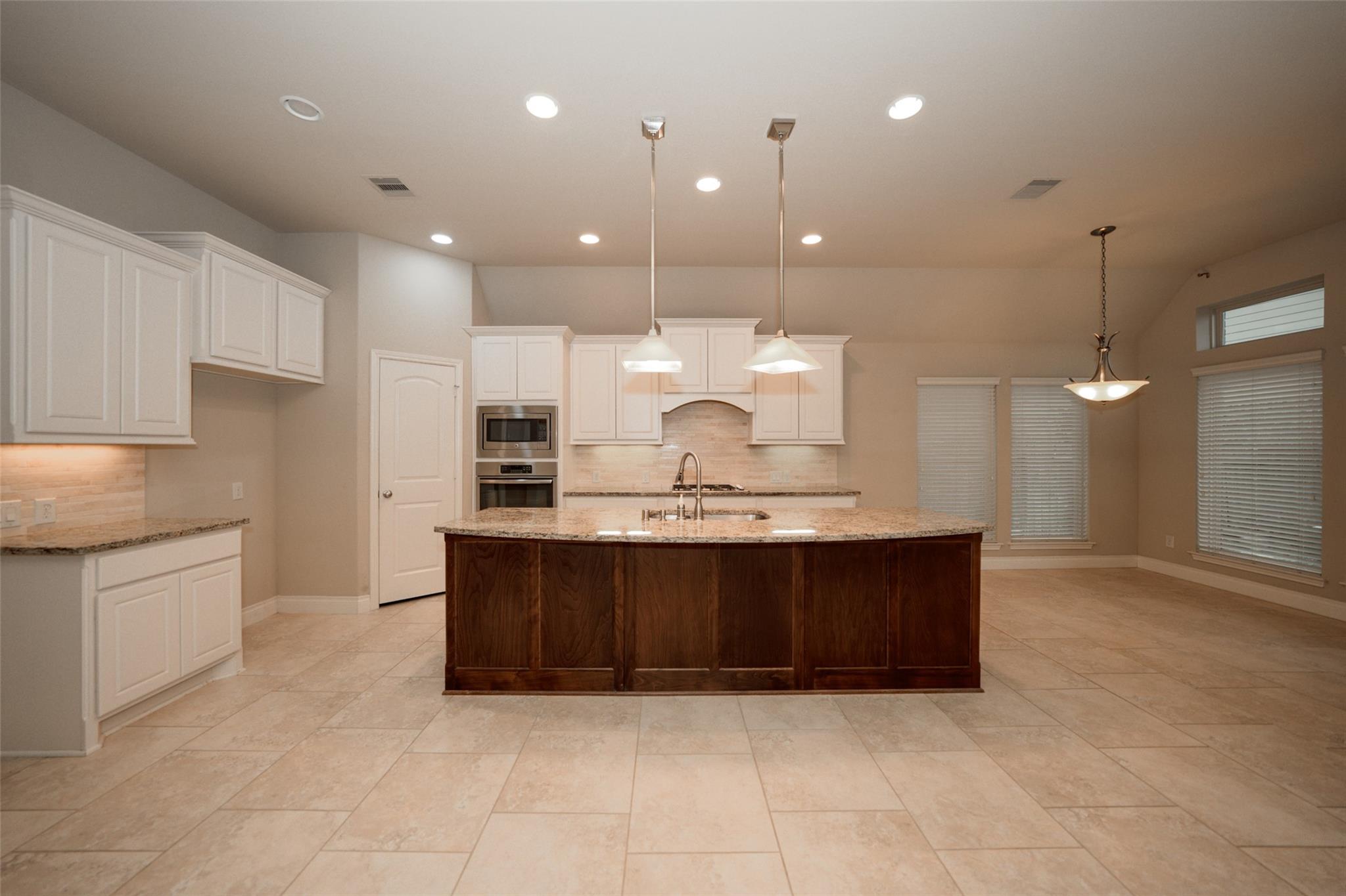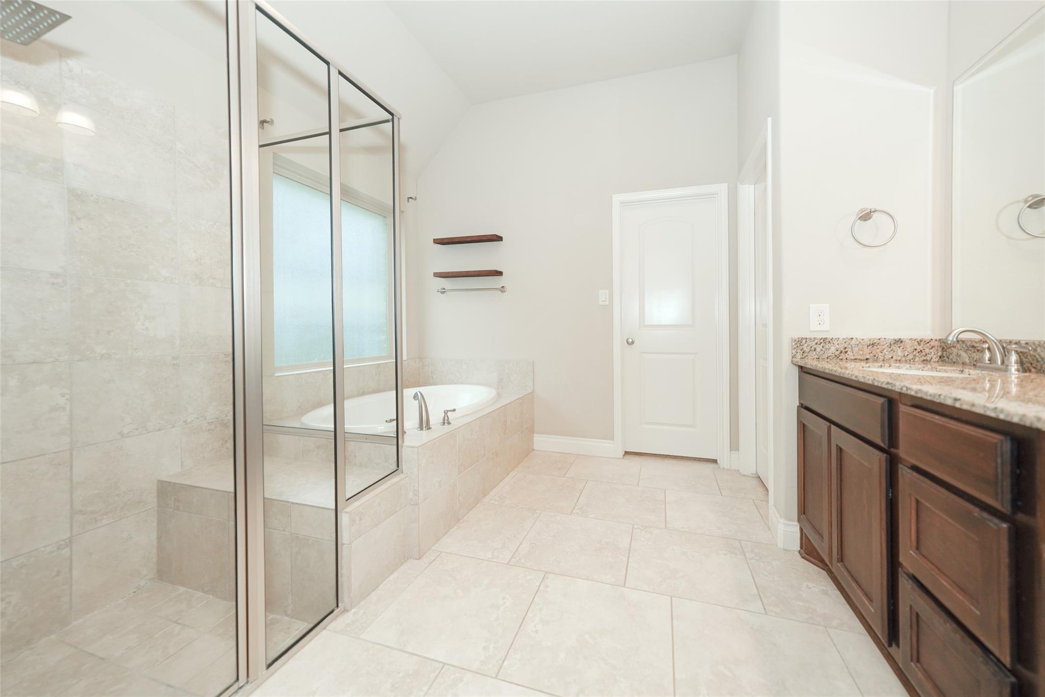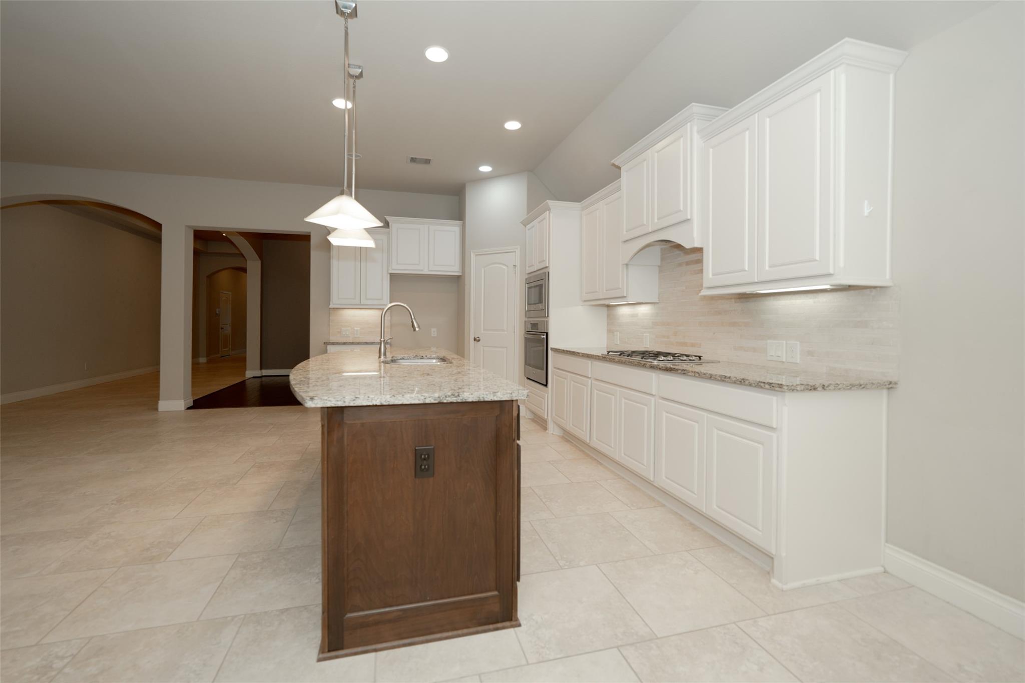 MOVE IN READY-one-story Perry Homes design offering 4 bedrooms, 3 full bathrooms, and 2,922 sq. ft. of well-designed living space. A wide entry hallway and tall ceilings create a welcoming first impression, opening to an airy, light-filled layout with large rear-facing windows. The kitchen features white cabinetry, granite countertops, stainless steel appliances, tile backsplash, and a spacious center island with contrasting dark wood—ideal for everyday living and entertaining. Adjacent spaces include a dining area and a versatile gameroom with double glass doors. The private primary suite includes dual sinks, granite counters, a separate shower, garden tub, and walk-in closet. Tile flooring extends through the main living areas with carpeted bedrooms. The brick-and-stone exterior, covered front entry, and fenced backyard enhance curb appeal. Located just a short walk from the Tamarron clubhouse with access to the community pool, splash pad, fitness room, and outdoor recreation area