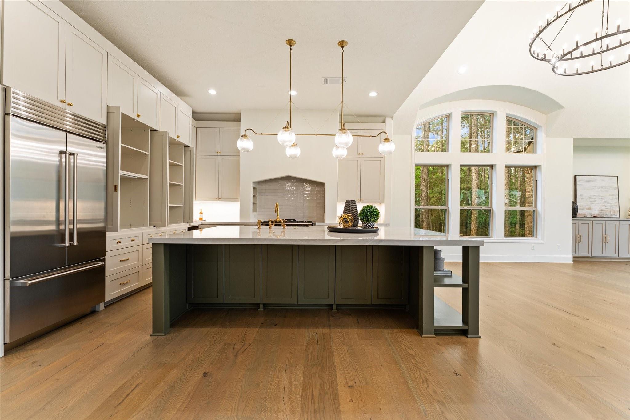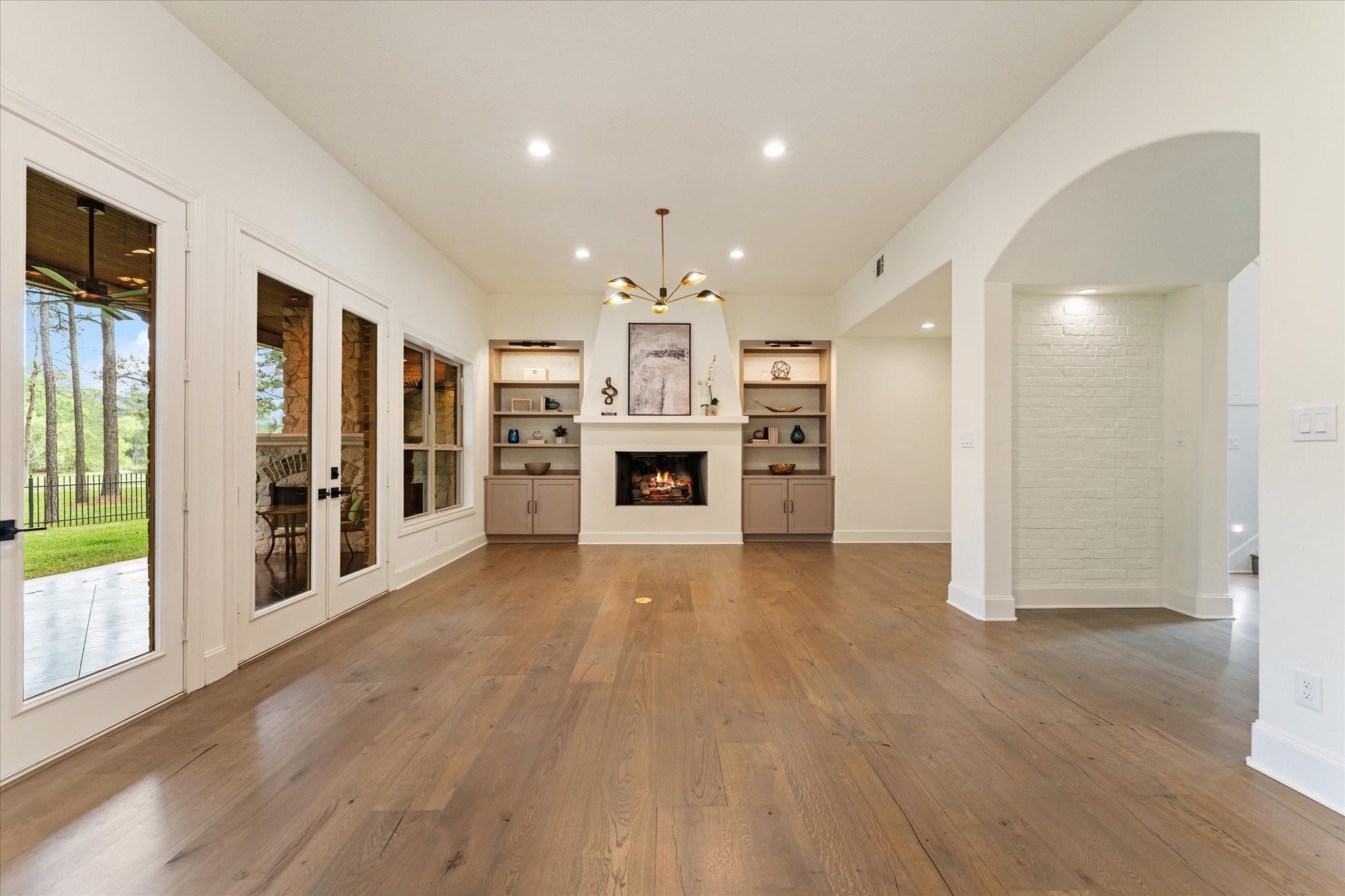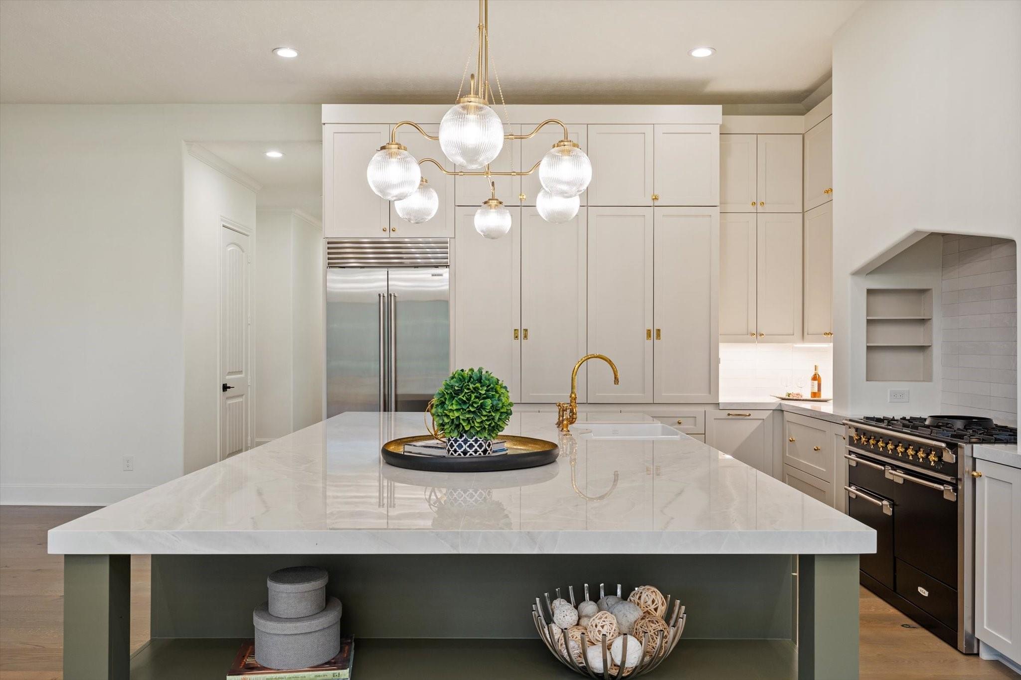 This French countryside-inspired home nestled on Hole 8 of HMRGC with sweeping golf course & lake views was extensively renovated to masterfully blend old-world charm w/ luxurious updates. The reimagined kitchen features all-new appliances, including an AGA dual-oven range, Sub-Zero, custom cabinetry, Lucent chandelier, & walk-in pantry. Family & living rooms offer vaulted ceilings, two 60-inch wagon wheel chandeliers, custom built-ins, & a bespoke fireplace surround. All Bathroom/ensuites were Fully Remodeled w/ premium fixtures & finishings such as Perrin & Rowe, Hansgrohe, & Victoria+Albert fixtures. The 1st floor primary suite enjoys abundant natural light & patio access. Upstairs includes a gameroom & two ensuite guest rooms w/ balcony access. Other highlights include a well-appointed utility room, 2nd separate office, oversized 3-car garage w/ a finished bonus space above the garage & a stunning library w/ floor-to-ceiling shelving, wheeled ladder, millwork, & brick fireplace.