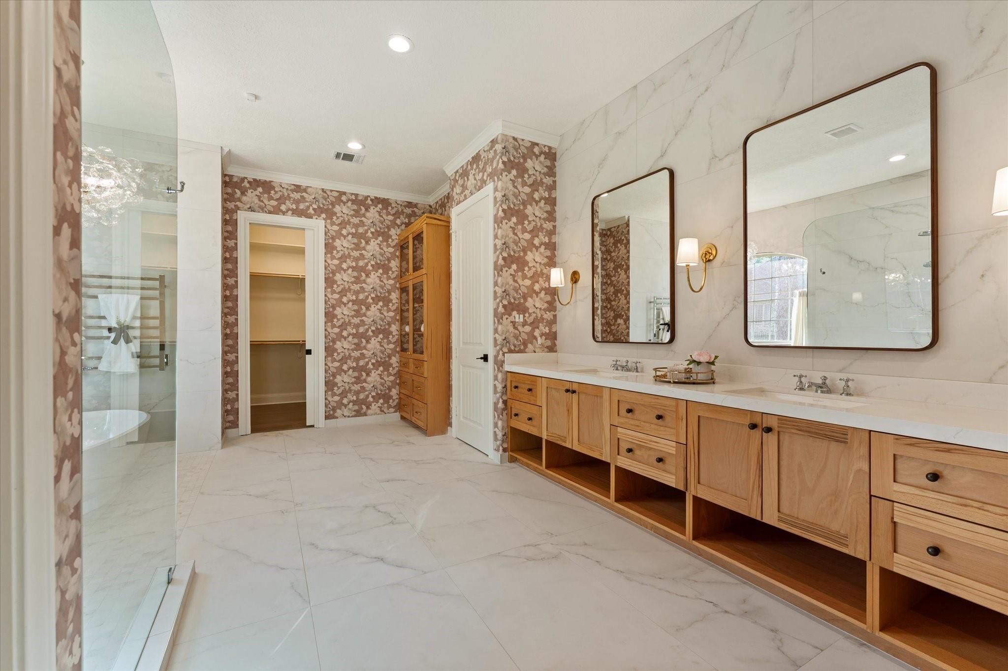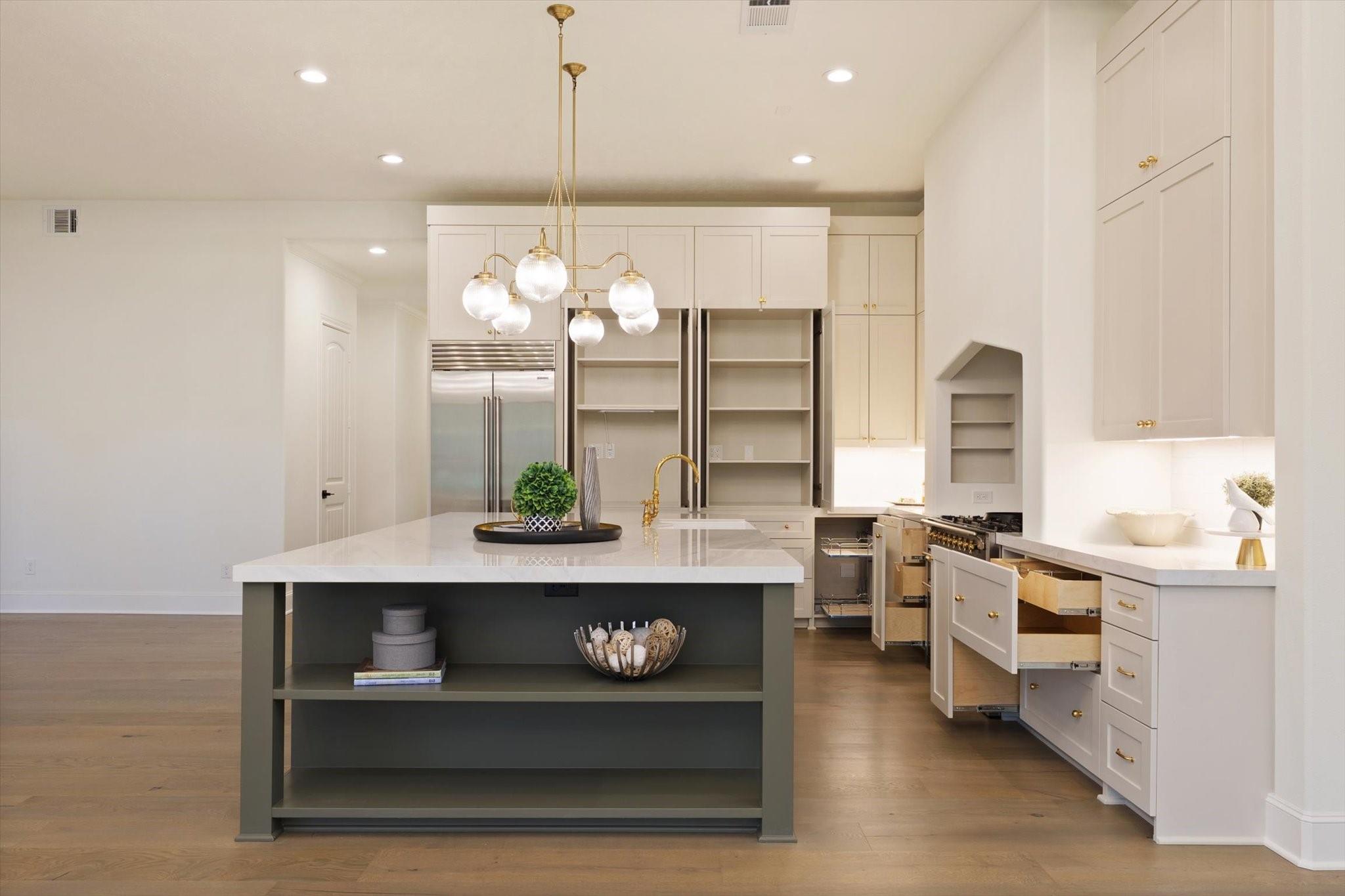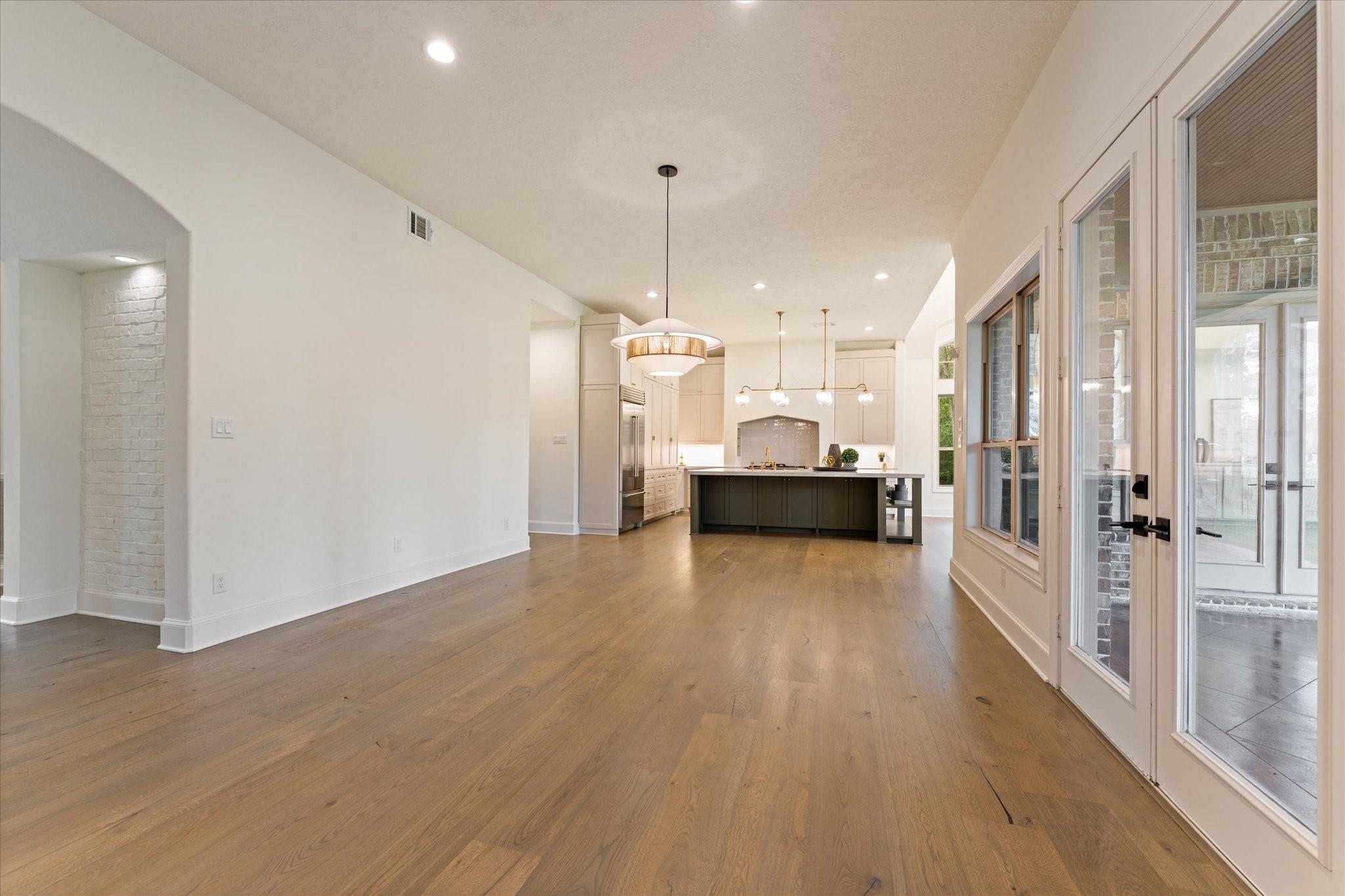 This French countryside-inspired home nestled on Hole 8 of HMRGC with sweeping golf course & lake views was extensively renovated to masterfully blend old-world charm w/ luxurious updates. The reimagined kitchen features all-new appliances, including an AGA dual-oven range, Sub-Zero, custom cabinetry, Lucent chandelier, & walk-in pantry. Family & living rooms offer vaulted ceilings, two 60-inch wagon wheel chandeliers, custom built-ins, & a bespoke fireplace surround. All Bathroom/ensuites were Fully Remodeled w/ premium fixtures & finishings such as Perrin & Rowe, Hansgrohe, & Victoria+Albert fixtures. The 1st floor primary suite enjoys abundant natural light & patio access. Upstairs includes a gameroom & two ensuite guest rooms w/ balcony access. Other highlights include a well-appointed utility room, 2nd separate office, oversized 3-car garage w/ a finished bonus space above the garage & a stunning library w/ floor-to-ceiling shelving, wheeled ladder, millwork, & brick fireplace.
