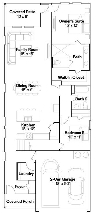 First FloorFamily Room:15x15Dining:15x9Kitchen:15x12Primary Bedroom:13x13Bedroom:10x11Exterior Porch/Balcony:12x8