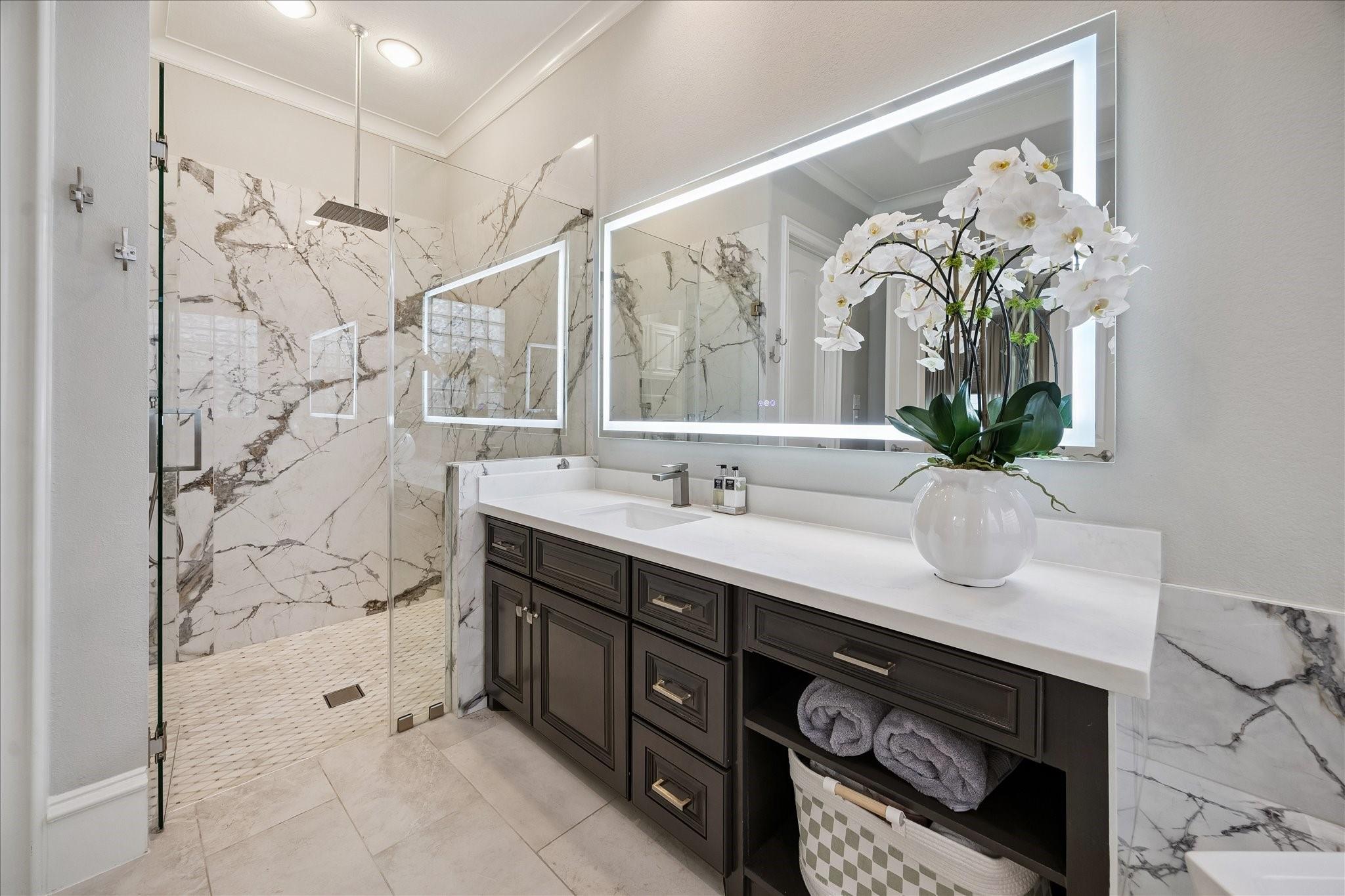 InteriorFireplace:1/Electric FireplaceFloors:Stone,Tile,WoodCountertop:Porcln/Qrtz/Grnt/StnBathroom Description:Half Bath,Primary Bath: Double Sinks,Primary Bath: Separate Shower,Primary Bath: Soaking Tub,Secondary Bath(s): Shower Only,Secondary Bath(s): Tub/Shower ComboBedroom Desc:3 Bedrooms Up,En-Suite Bath,Primary Bed - 1st Floor,Walk-In ClosetKitchen Desc:Breakfast Bar,Island w/o Cooktop,Kitchen open to Family Room,Pantry,Under Cabinet LightingRoom Description:1 Living Area,Breakfast Room,Entry,Family Room,Formal Dining,Gameroom Up,Home Office/Study,Living Area - 1st Floor,Living/Dining Combo,Utility Room in HouseHeating:Central GasCooling:Central ElectricConnections:Electric Dryer Connections,Gas Dryer Connections,Washer ConnectionsDishwasher:YesDisposal:YesCompactor:NoMicrowave:YesRange:Gas CooktopOven:Double Oven,Electric OvenIce Maker:YesEnergy Feature:Attic Fan,Ceiling Fans,Digital Program Thermostat,Generator,HVAC>15 SEER,Insulated Doors,Insulated/Low-E windows,Insulation - Blown Cellulose,North/South ExposureInterior:Alarm System - Owned,Crown Molding,Fire/Smoke Alarm,High Ceiling,Refrigerator Included,Window Coverings,Wine/Beverage Fridge,Wired for Sound