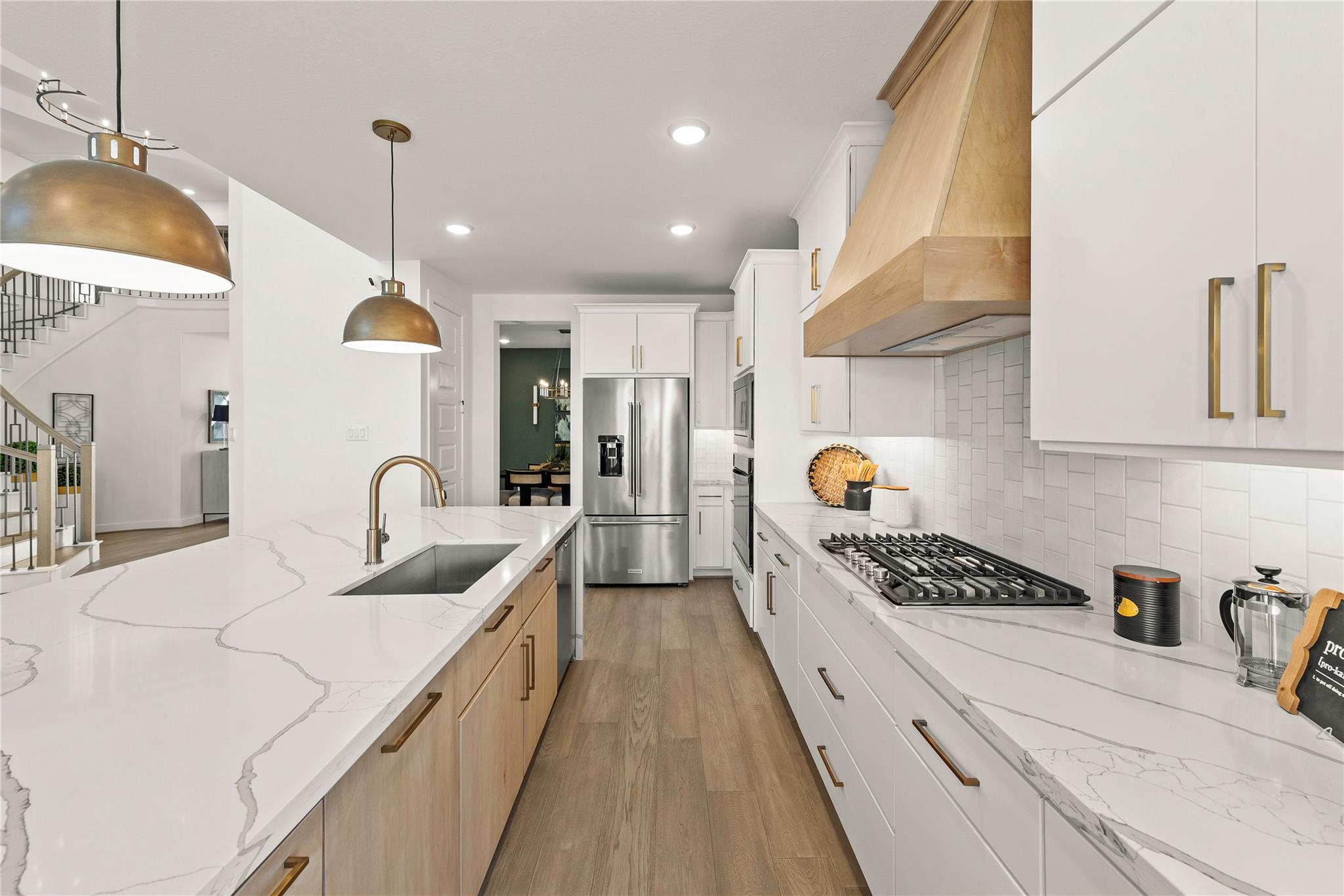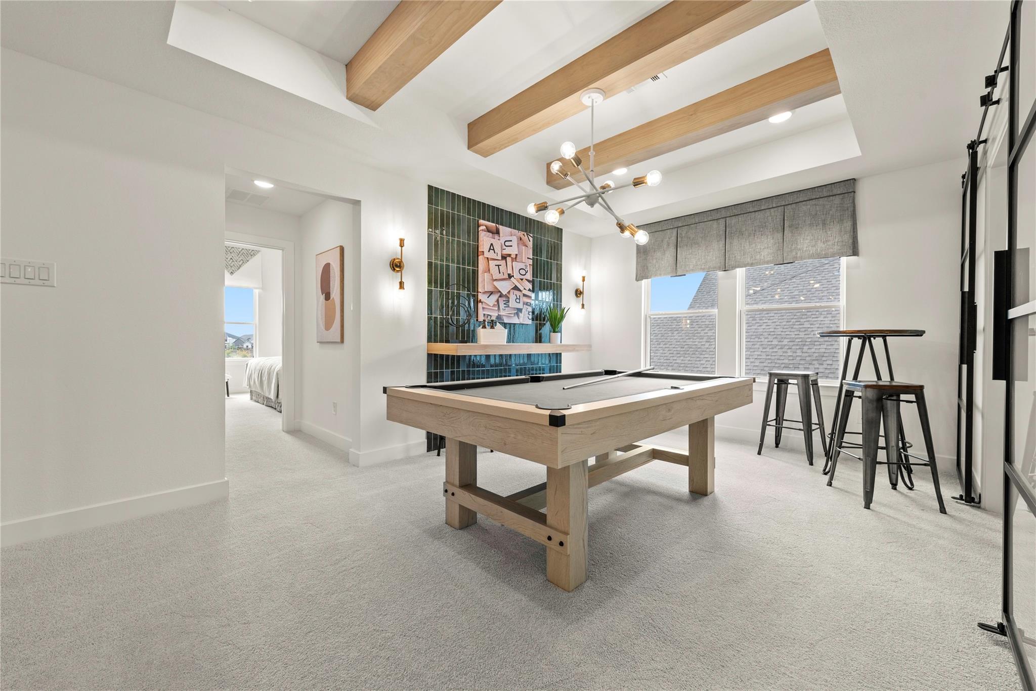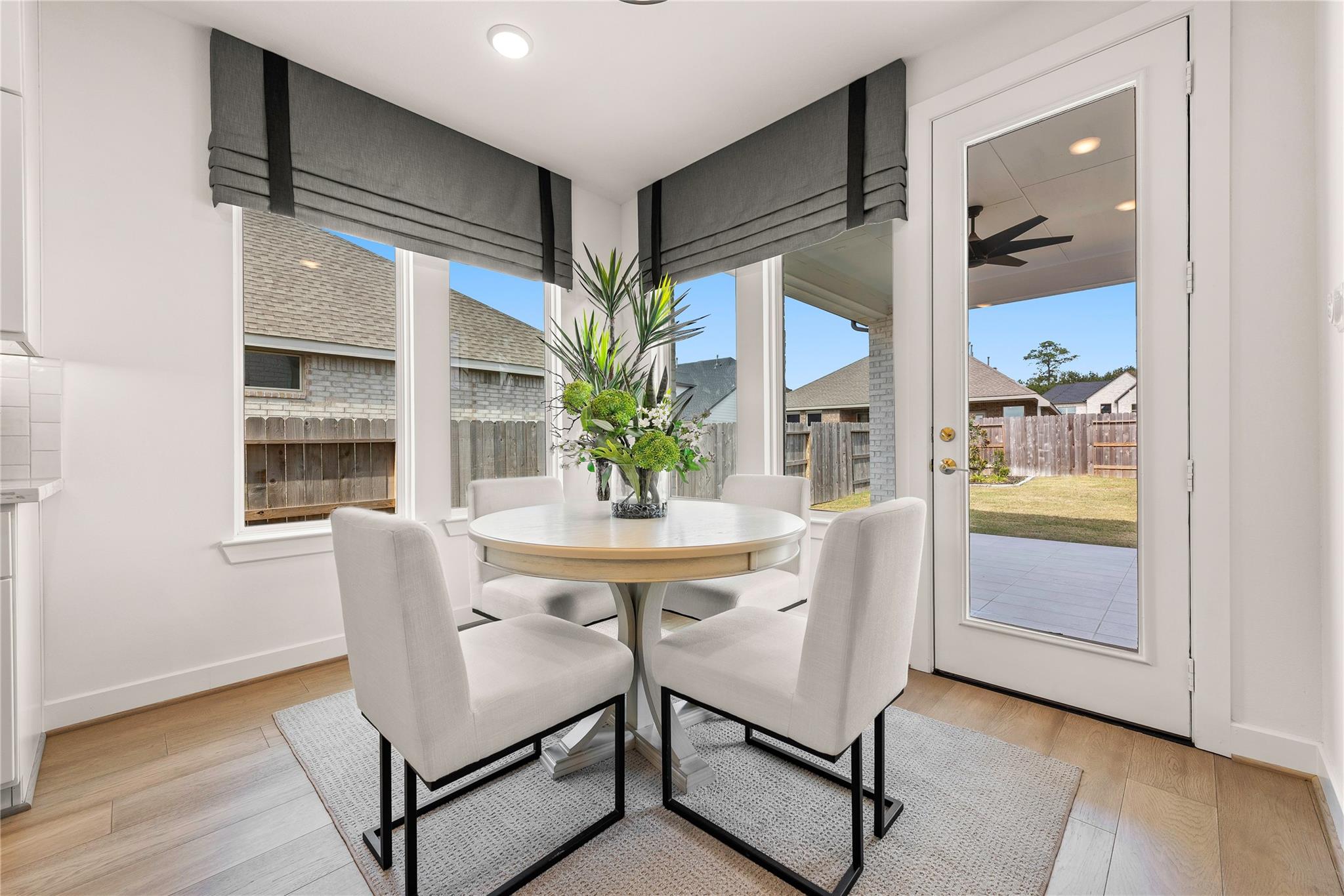 MOVE IN READY!! Westin Homes NEW Construction (Carter IX, Elevation K) This impressive two-story former model home offers 5 bedrooms and 4.5 bathrooms with a thoughtfully designed layout ideal for everyday living and entertaining. The primary suite is located on the main level and features two spacious walk-in closets, creating a private retreat. A secondary first-floor bedroom with private bath provides flexibility for guests or multigenerational living. The home includes a dining room and private study, while the expansive island kitchen with a breakfast area opens to the family room. Upstairs, enjoy a large game room, dedicated media room, and three additional bedrooms. Relax outdoors on the covered patio and enjoy the convenience of a 2-car attached garage. Welcome to The Trails, where miles of scenic paths, a resort-style pool, splash pad, event lawn, playgrounds, and gathering spaces await. Ideally located near the Grand Parkway with easy access to The Woodlands and Lake Houston.