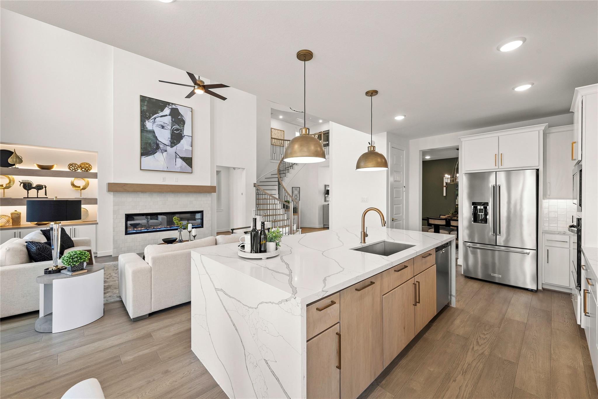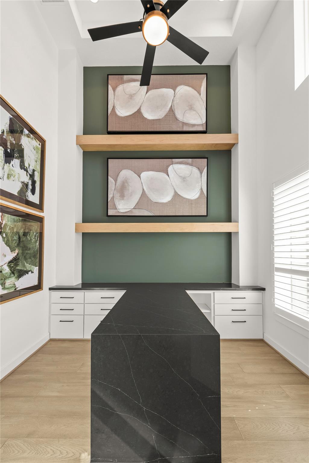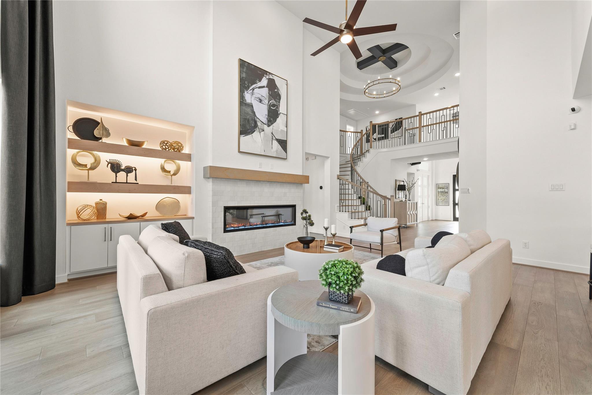 InteriorFireplace:1/Electric FireplaceFloors:Carpet,TileCountertop:QuartzBathroom Description:Full Secondary Bathroom Down,Half Bath,Primary Bath: Double Sinks,Primary Bath: Separate Shower,Vanity AreaBedroom Desc:2 Bedrooms Down,3 Bedrooms Up,En-Suite Bath,Primary Bed - 1st Floor,Walk-In ClosetKitchen Desc:Island w/o Cooktop,Kitchen open to Family Room,Pantry,Walk-in PantryRoom Description:Breakfast Room,Entry,Family Room,Formal Dining,Gameroom Up,Home Office/Study,Media,Utility Room in HouseHeating:Central GasCooling:Central ElectricConnections:Electric Dryer Connections,Gas Dryer Connections,Washer ConnectionsDishwasher:YesDisposal:YesMicrowave:YesRange:Gas CooktopOven:Electric OvenEnergy Feature:Attic Fan,Ceiling Fans,Digital Program Thermostat,Energy Star/CFL/LED Lights,Energy Star/Reflective Roof,High-Efficiency HVAC,Insulated/Low-E windows,Insulation - Batt,Insulation - Blown Fiberglass,Radiant Attic BarrierInterior:Alarm System - Owned,Fire/Smoke Alarm,High Ceiling