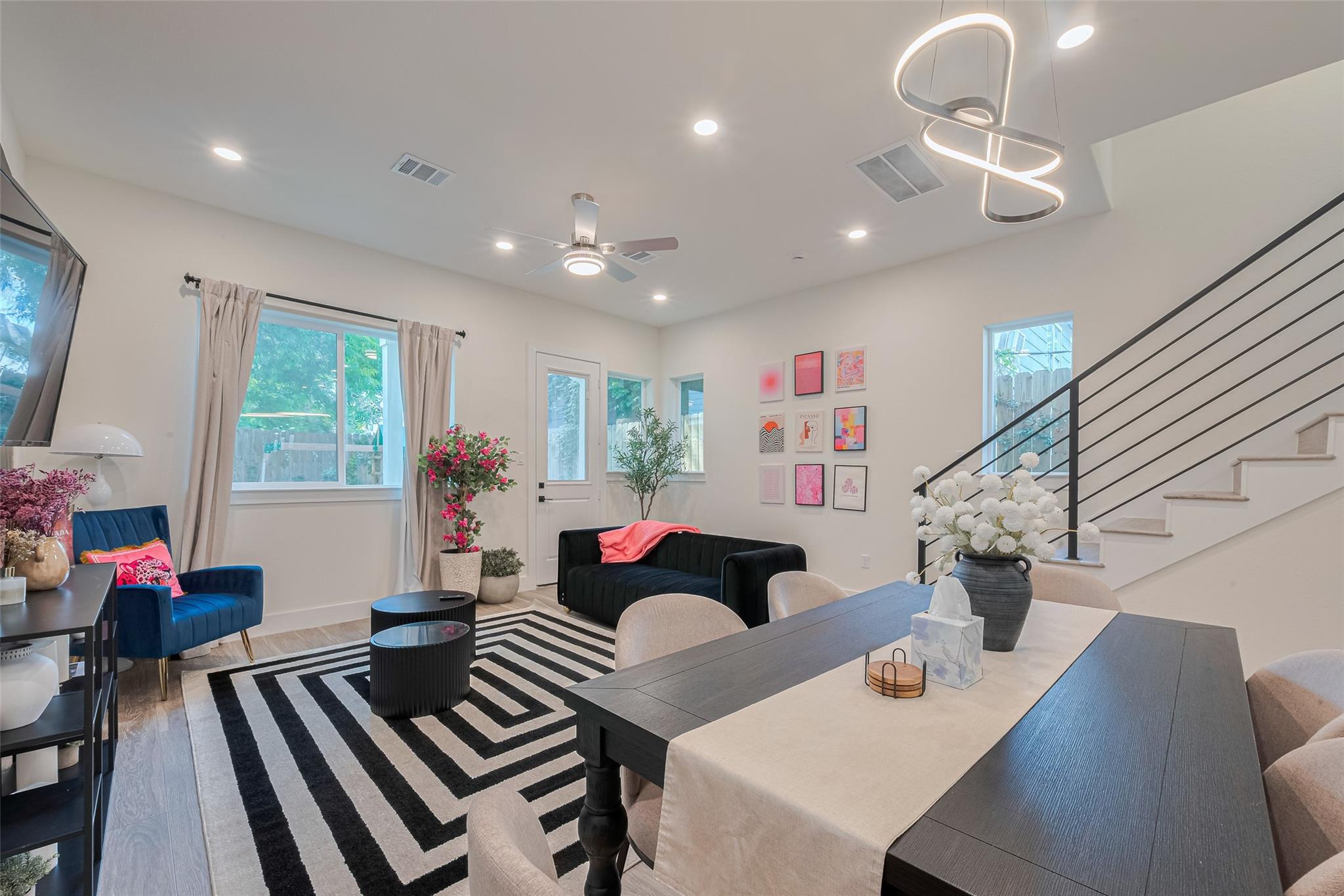 /monthWelcome to this beautifully designed, FULLY FURNISHED Move-in ready 3-story contemporary home near Downtown. This property boasts three spacious bedrooms, versatile game room, and breathtaking views of the skyline from the third-floor balcony. Discover an open-concept layout filled with natural light and high-end finishes throughout. The home comes FURNISHED with stylish furniture, tasteful décor, and ALL APPLIANCES included—making your transition effortless. The epoxy-coated, insulated garage features an EV charger. Enjoy outdoor living in the spacious backyard, complete with a playset, BBQ grill, and comfortable patio furniture. Enjoy your evenings with stunning sunset views over downtown. This home is a rare find, offering luxury, convenience, and value in one of Houston’s most desirable locations. Schedule your private showing today!