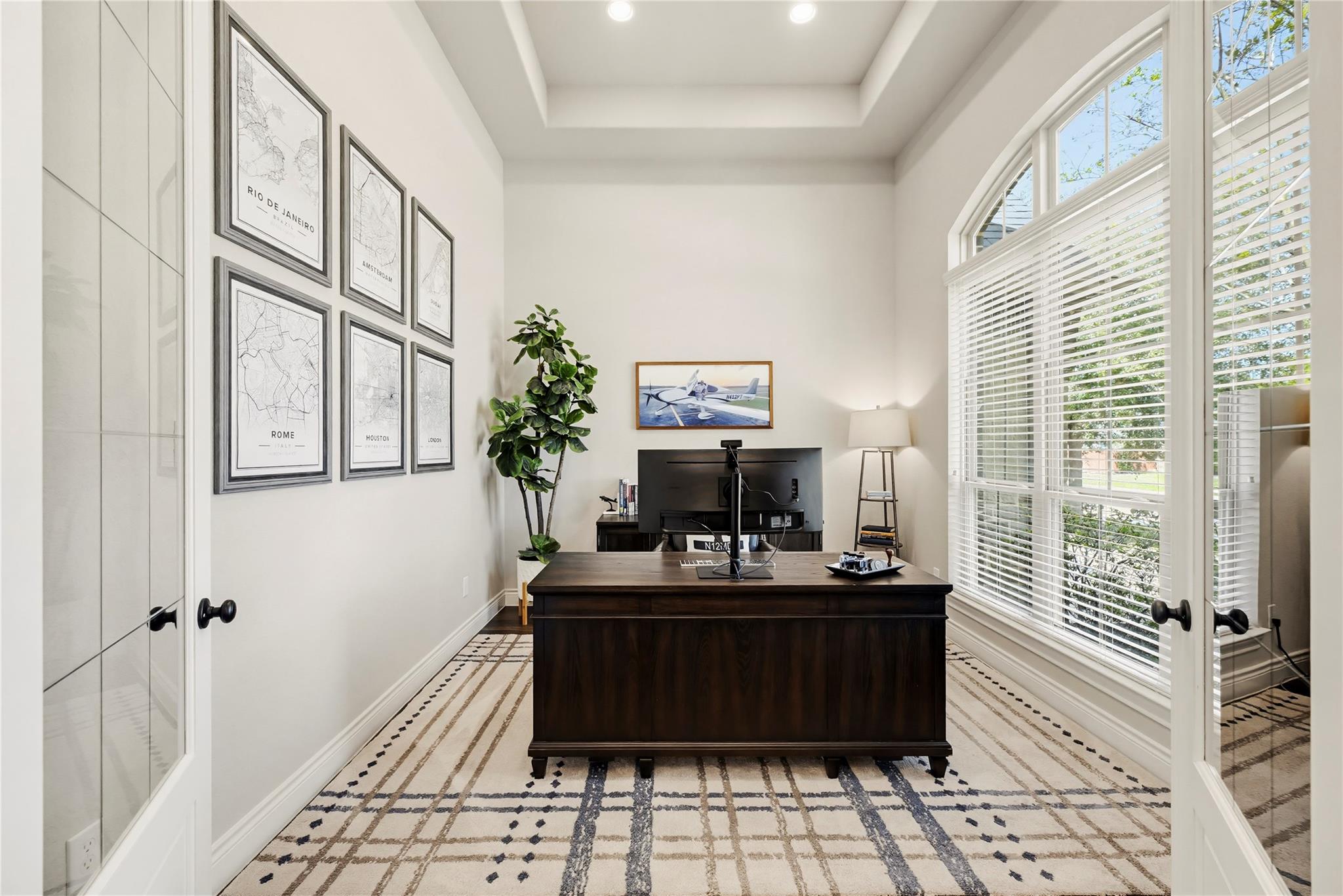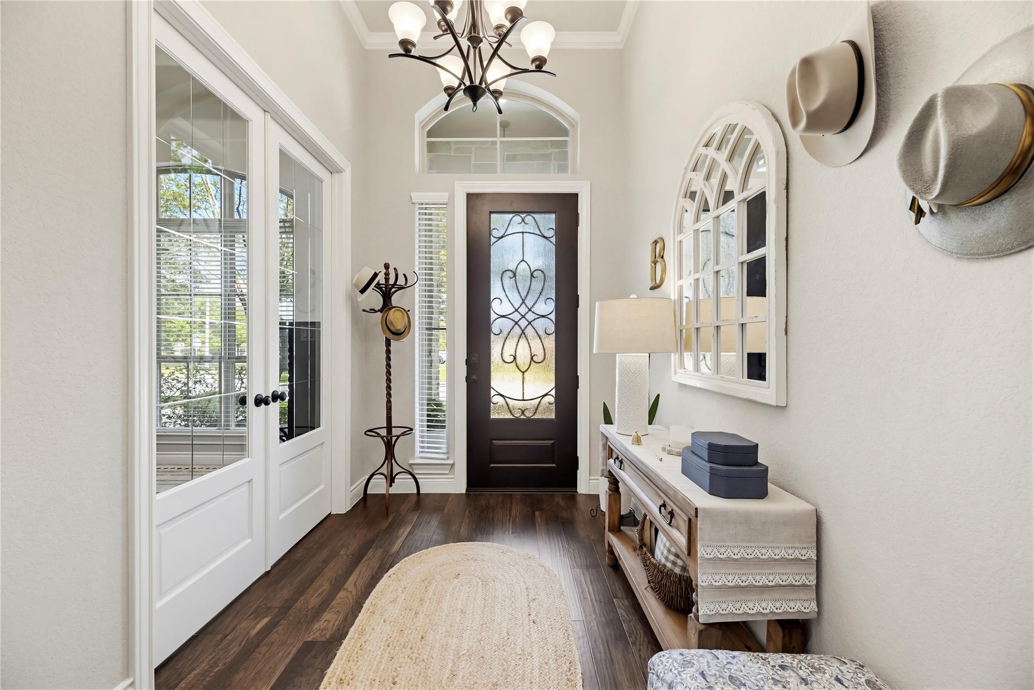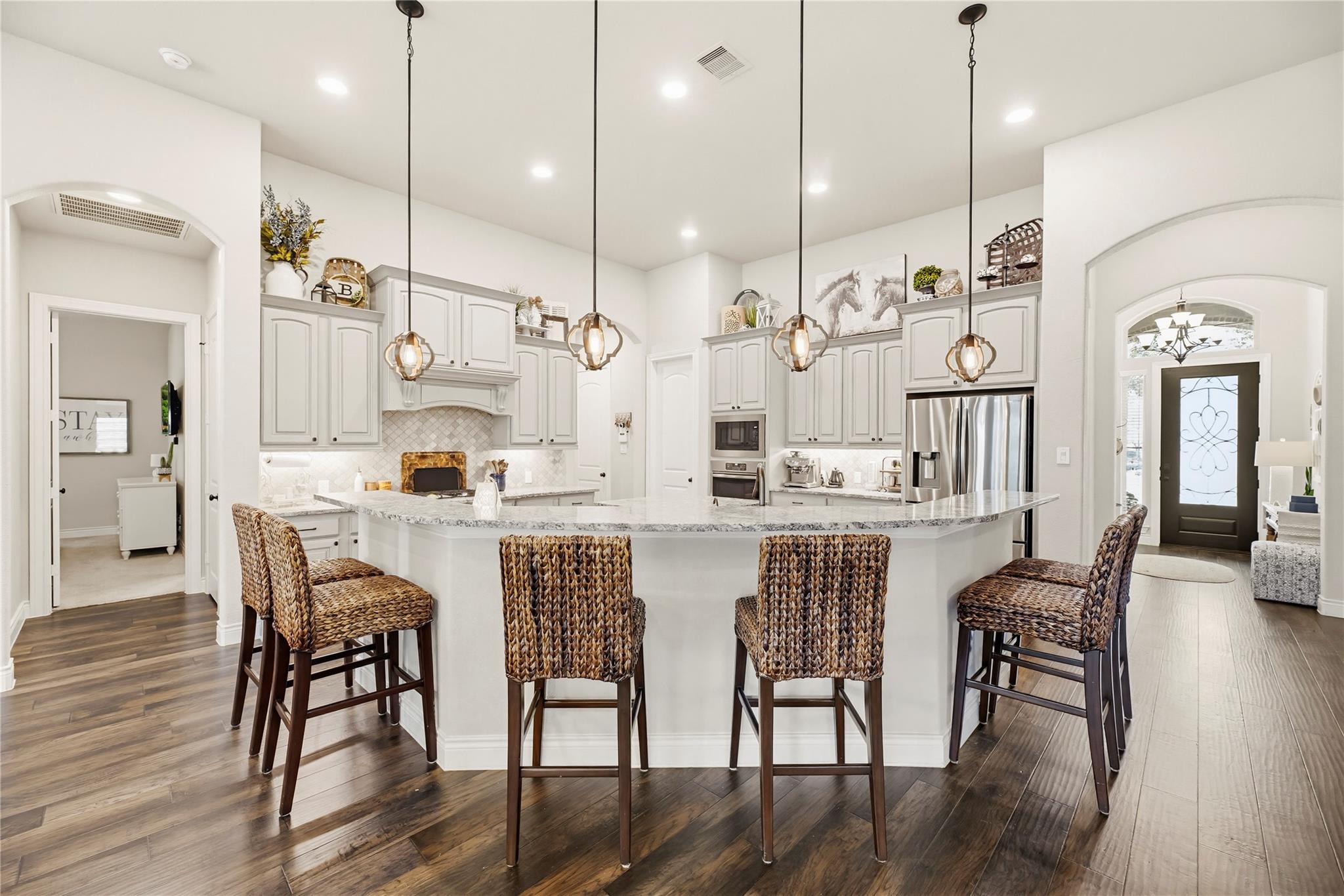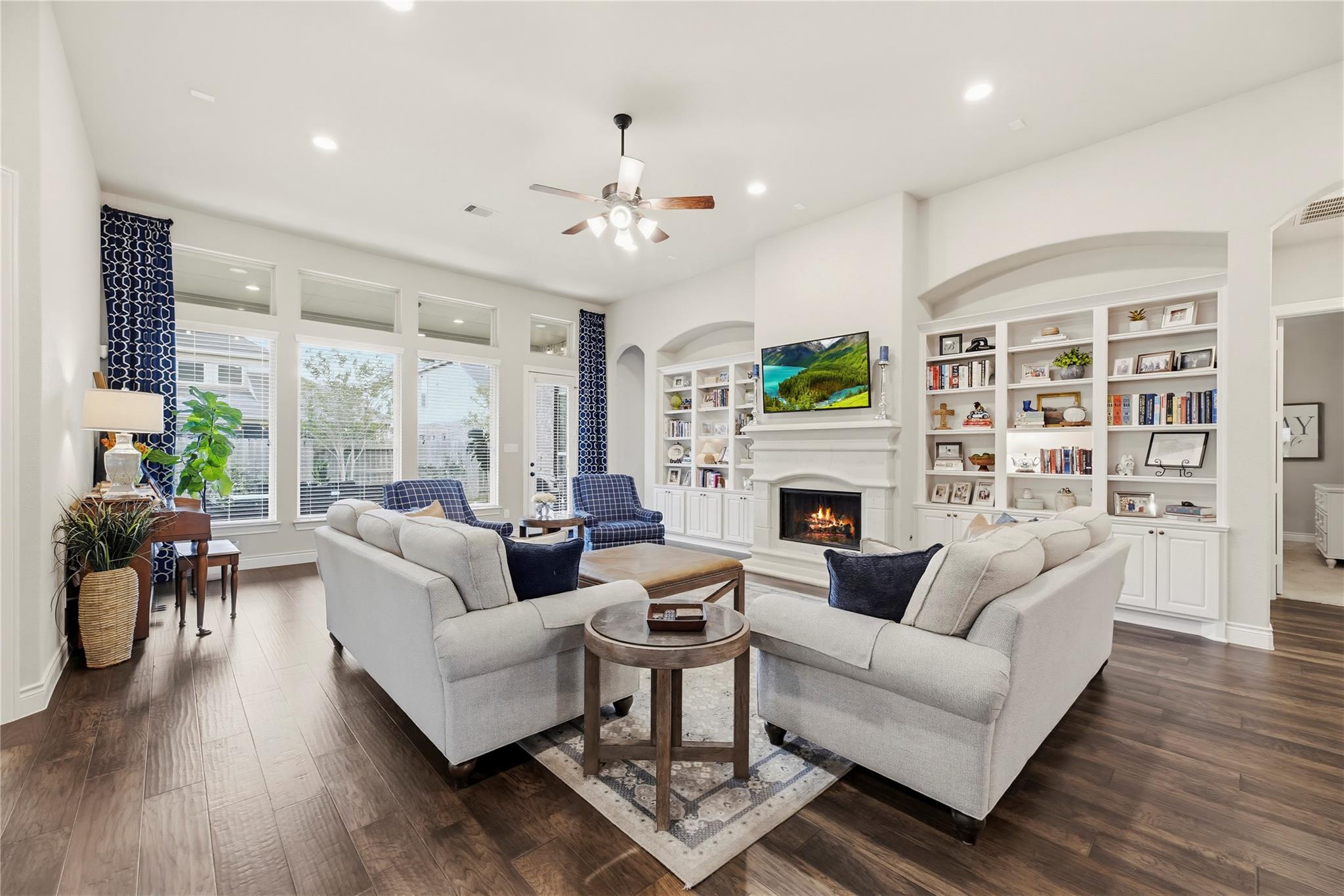This is a truly stunning Ravenna sprawling one-story plan featuring 4 bedrooms, 3.5 bathrooms and an exceptional open-concept layout perfect for everyday living and entertaining. Wood flooring flows through the study and main living areas and 8 foot doors throughout give such a grand feel. There is a chef’s kitchen offering gorgeous counters, upgraded counters and cabinetry, ample storage and opens to the casual dining area with access to a private patio. A spacious game room at the rear of the home is a great additional and accessible living area. The large primary retreat with a spa-like en suite and separate closets will surely impress. There are additional upgrades galore including a full home generator, custom window treatments, access door to the backyard from the 3-car garage and more. Enjoy the Texas-sized covered patio with TV, plus a low tax rate and HOA fees. The home is also walking distance to schools and neighborhood amenities which is such a treat!