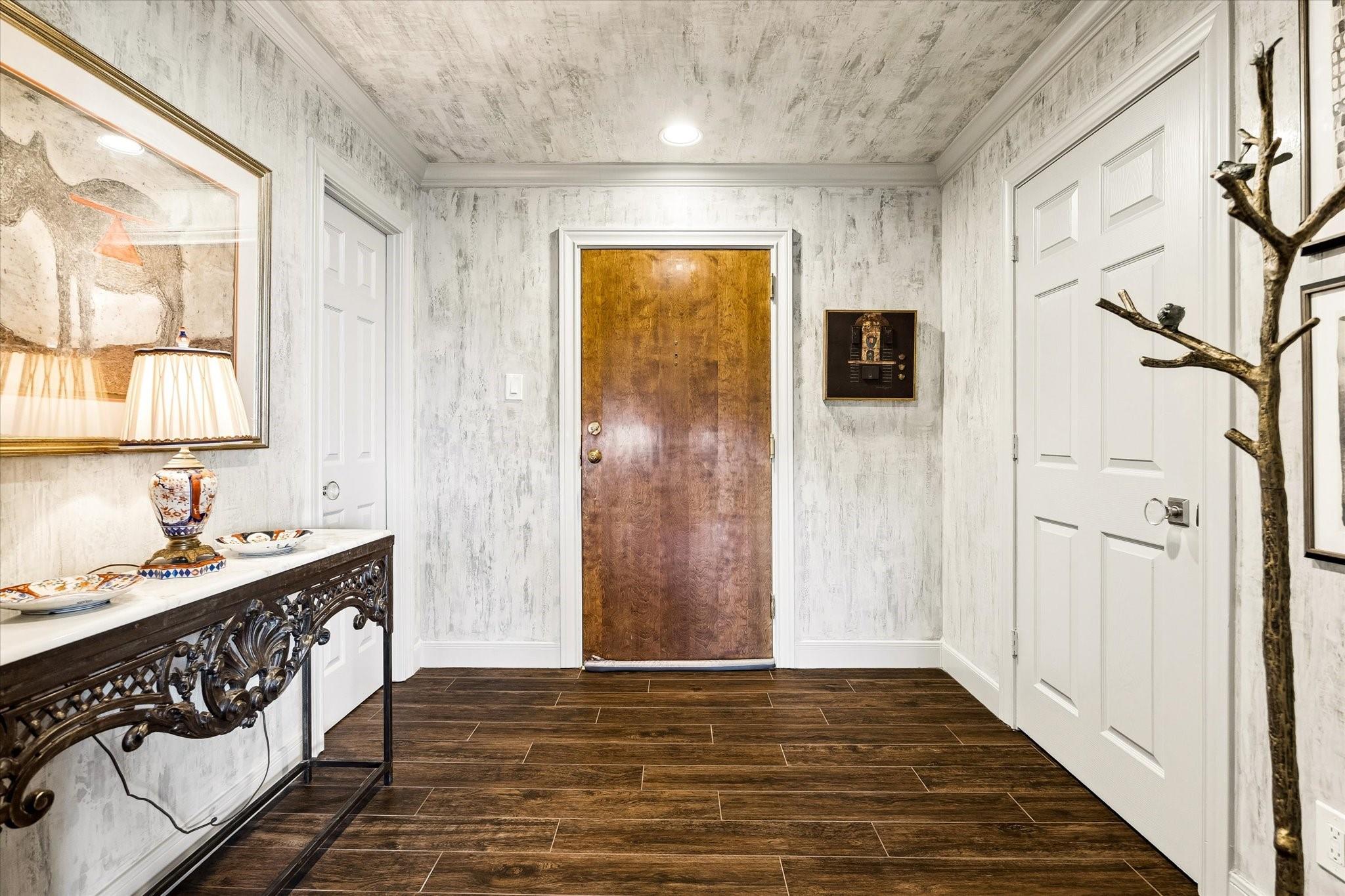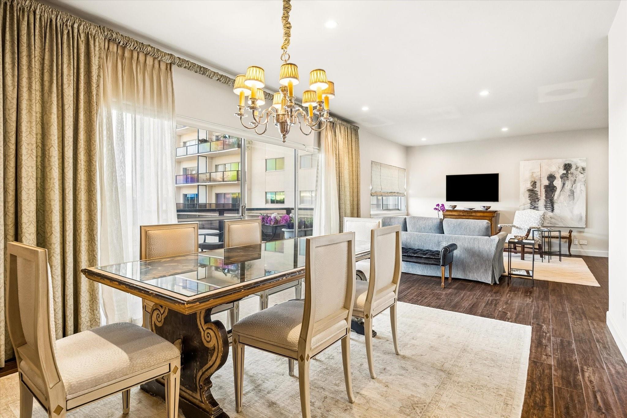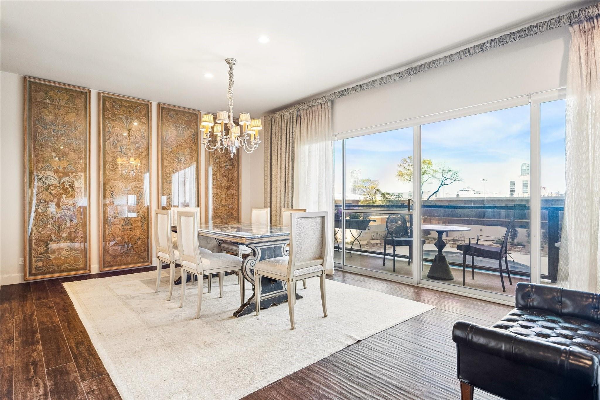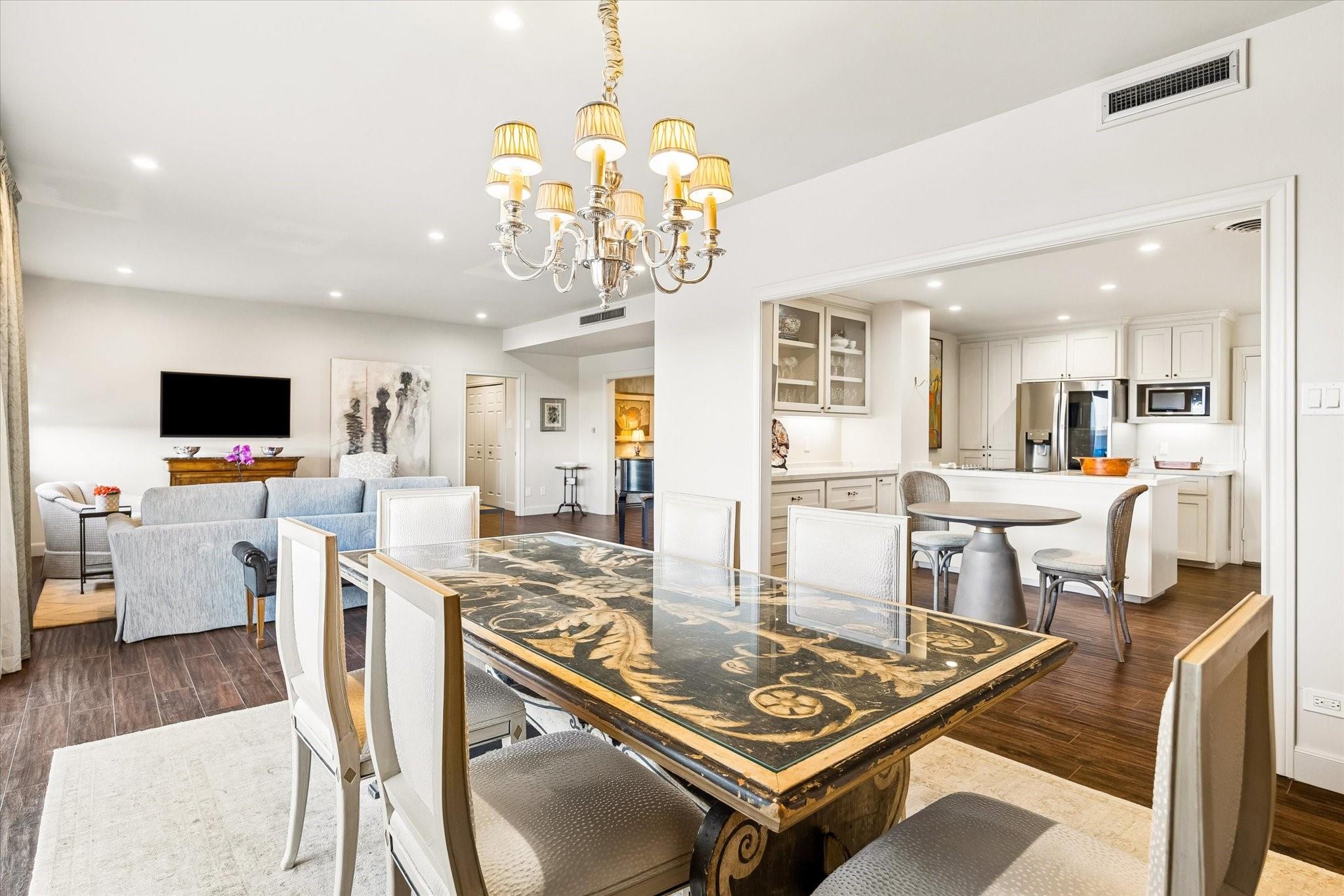 Beautifully redesigned and renovated, this rare three-bedroom residence offers two full baths and a guest half bath in a highly desirable full-service highrise near River Oaks and Upper Kirby. A gracious entry with custom Segreto wall finish welcomes you to elegant interiors with engineered wood floors throughout the living areas and bedrooms. The spacious primary suite features a sitting area, a large walk-in closet, and spa-inspired bath. East-facing views overlook the pool from a generous private balcony. The thoughtfully designed kitchen offers incredible built-in storage and attention to detail throughout. A large storage closet plus an in-unit full size washer and dryer adds convenience. Residents enjoy full-service amenities including on-site management, concierge, valet/porter services, pool, fitness center, party room, and dog park. Maintenance fee includes all utilities. Convenient to premier dining and shopping. An exceptional opportunity for a large turn-key unit.