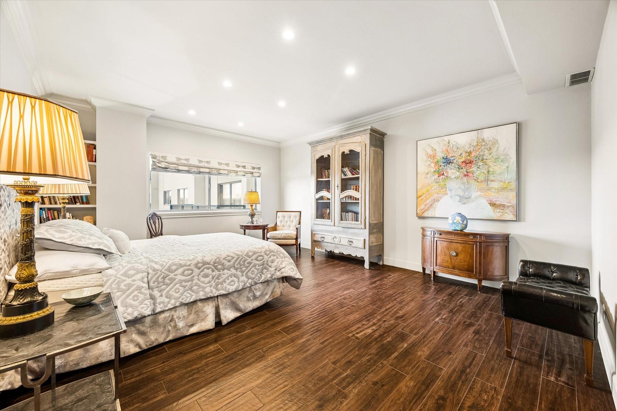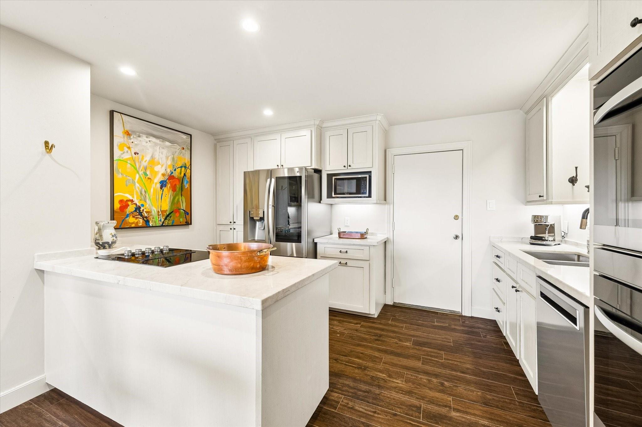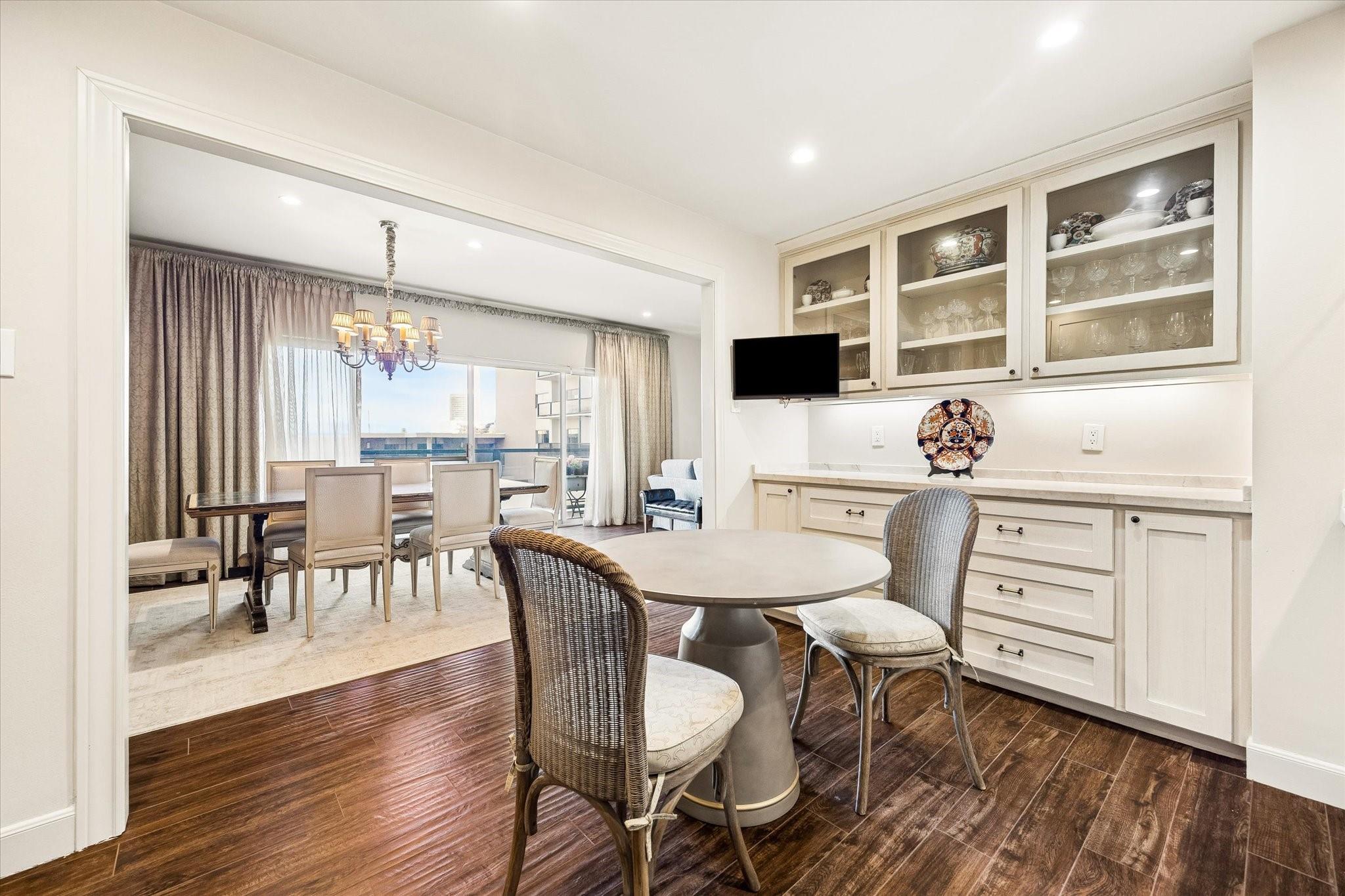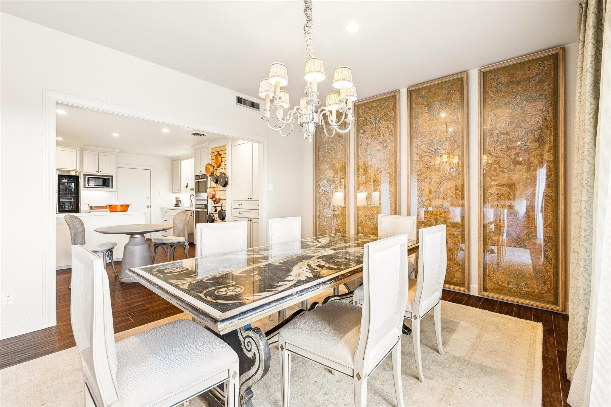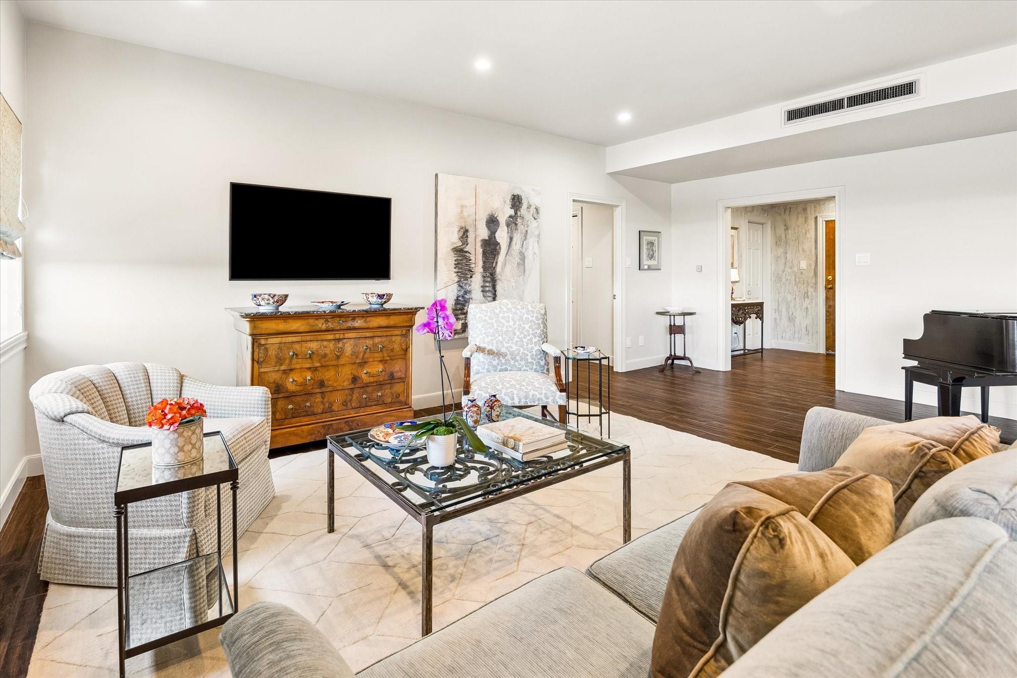 Beautifully redesigned and renovated, this rare three-bedroom residence offers two full baths and a guest half bath in a highly desirable full-service highrise near River Oaks and Upper Kirby. A gracious entry with custom Segreto wall finish welcomes you to elegant interiors with engineered wood floors throughout the living areas and bedrooms. The spacious primary suite features a sitting area, a large walk-in closet, and spa-inspired bath. East-facing views overlook the pool from a generous private balcony. The thoughtfully designed kitchen offers incredible built-in storage and attention to detail throughout. A large storage closet plus an in-unit full size washer and dryer adds convenience. Residents enjoy full-service amenities including on-site management, concierge, valet/porter services, pool, fitness center, party room, and dog park. Maintenance fee includes all utilities. Convenient to premier dining and shopping. An exceptional opportunity for a large turn-key unit.