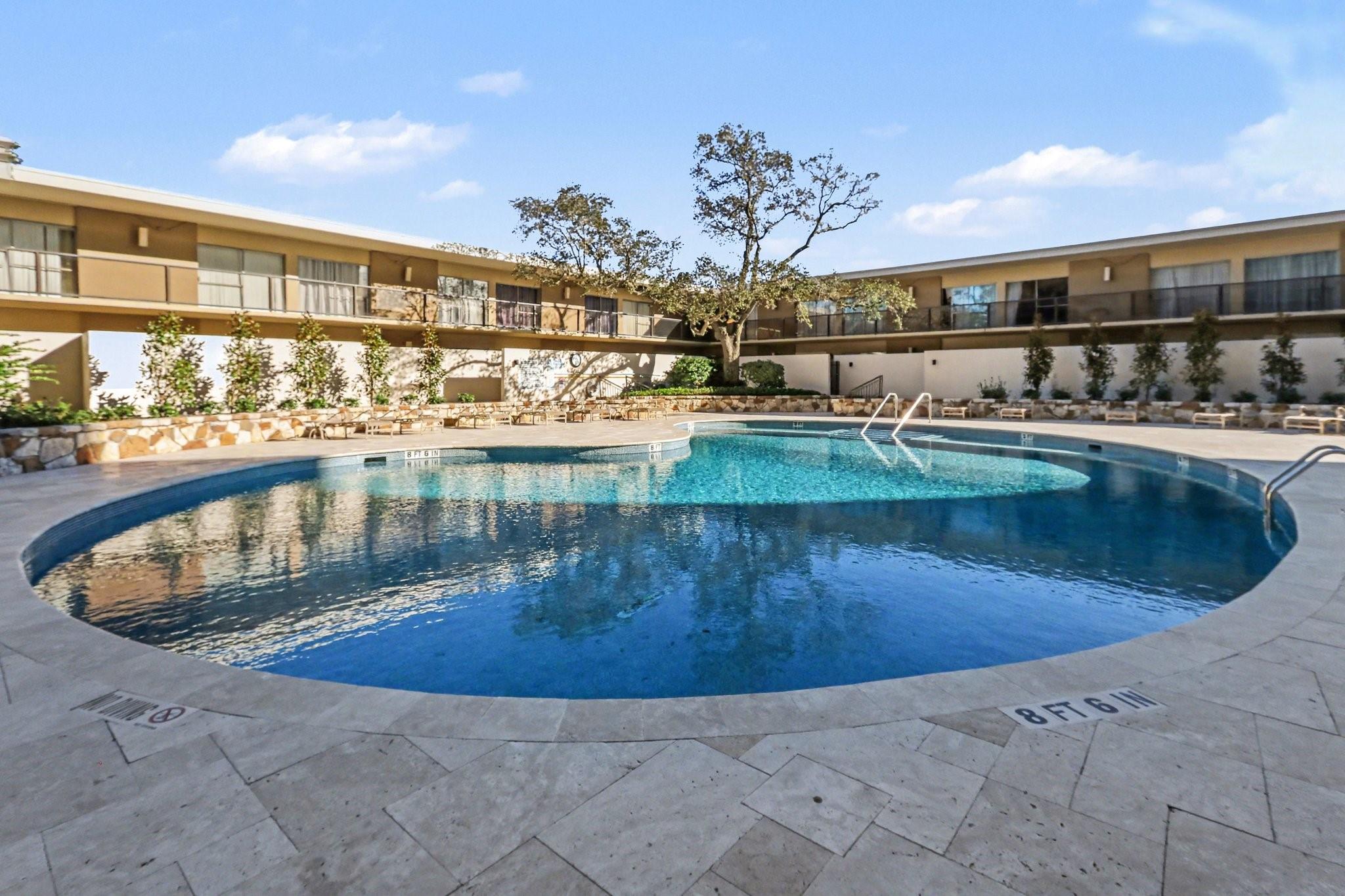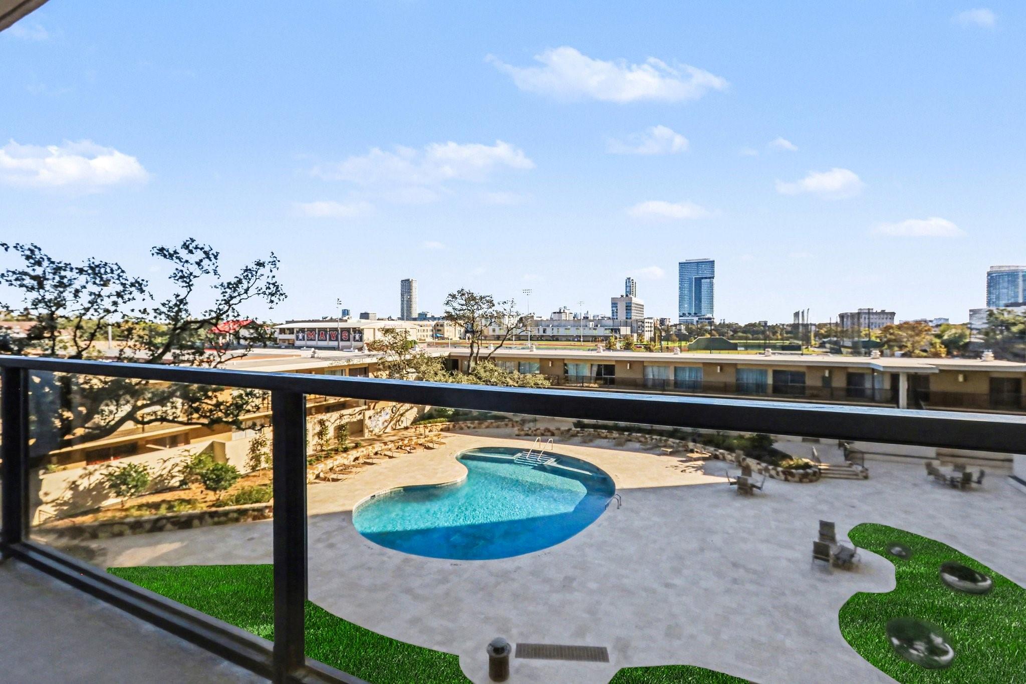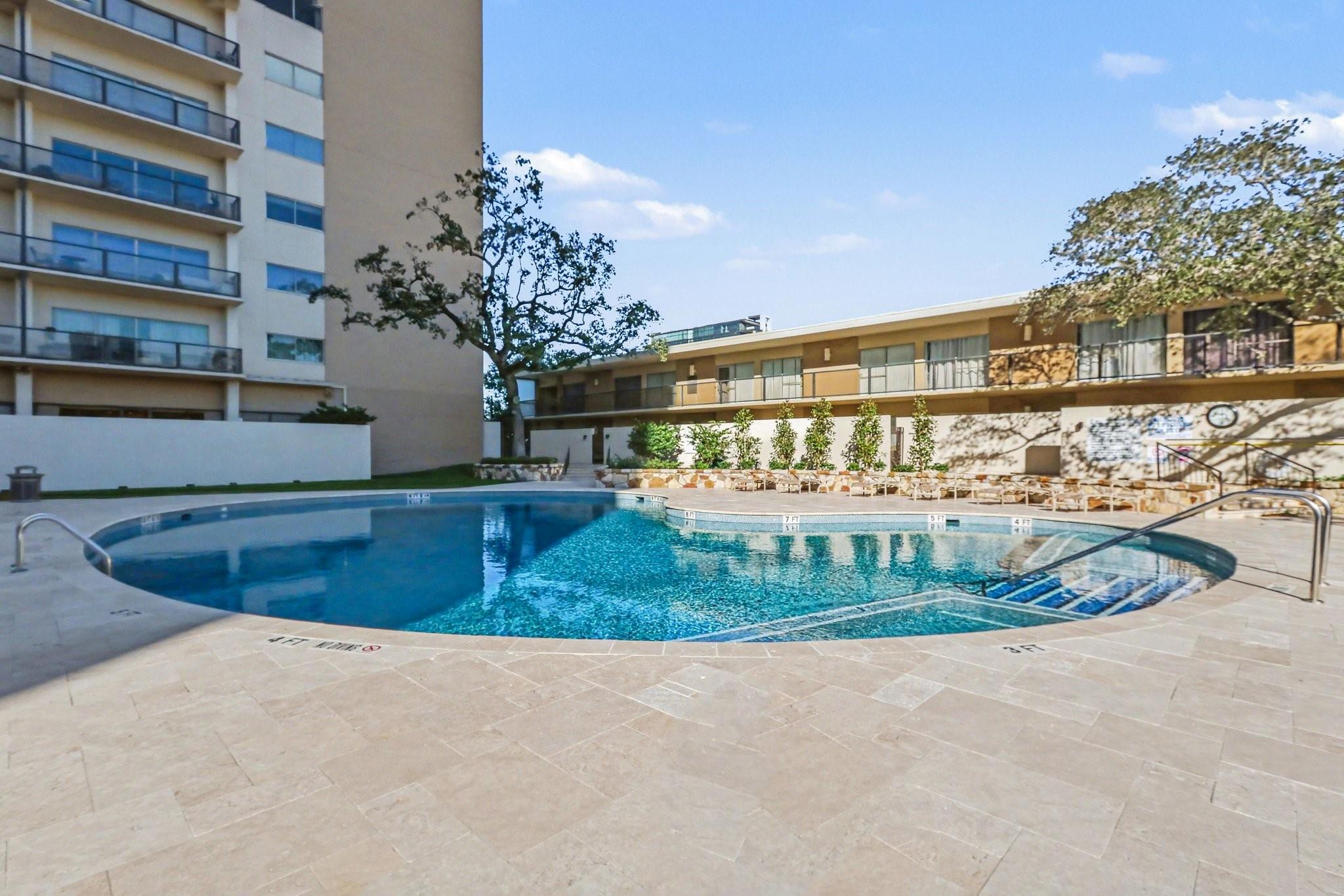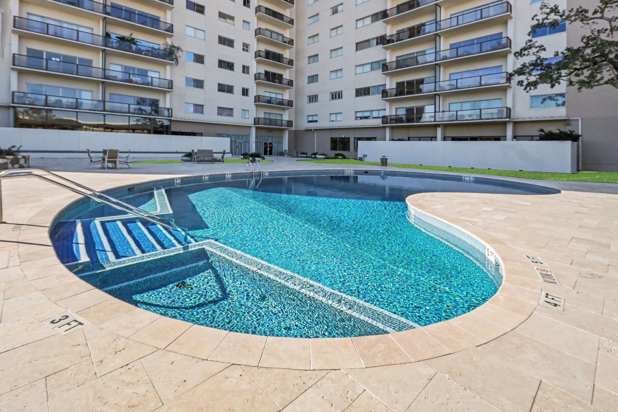 Absolutely beautiful Lamar Tower 3 bedroom, 2 & 1/2 bath high rise home with fabulous pool and Downtown views located on the 3rd floor of the wonderfully managed building! The unit has large windows with expansive rooms, creating a great sense of well-lit space. Gorgeous parquet wood floors in the living areas and tile in the kitchen and baths. The inviting living room feels huge and is open to the dining room which increases the sense of comfort. A large balcony overlooks the lovely pool area! The large kitchen has loads of storage! In fact, there is great storage space throughout the home! Great bedrooms, the Primary has a large ensuite bath. Secondary bedrooms are really well sized and share a bath with walk-in shower. The Lamar Tower is a beautifully maintained community that has a premium inner loop/ River Oaks area location! Two reserved parking spaces. Beautiful pool, 24-hour concierge and valet plus a porter! Gym, dog park and grill area. Enjoy a luxury lifestyle!