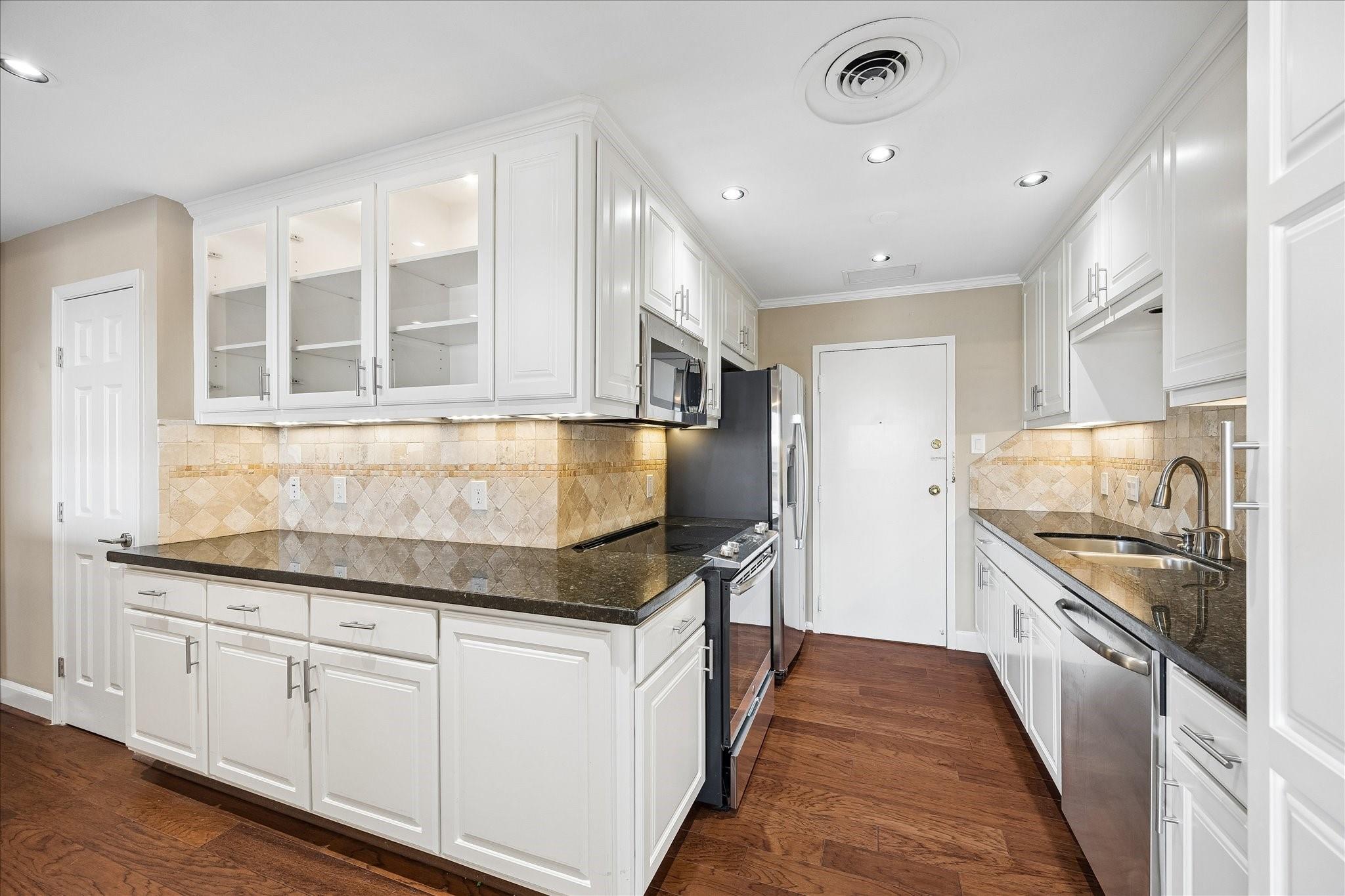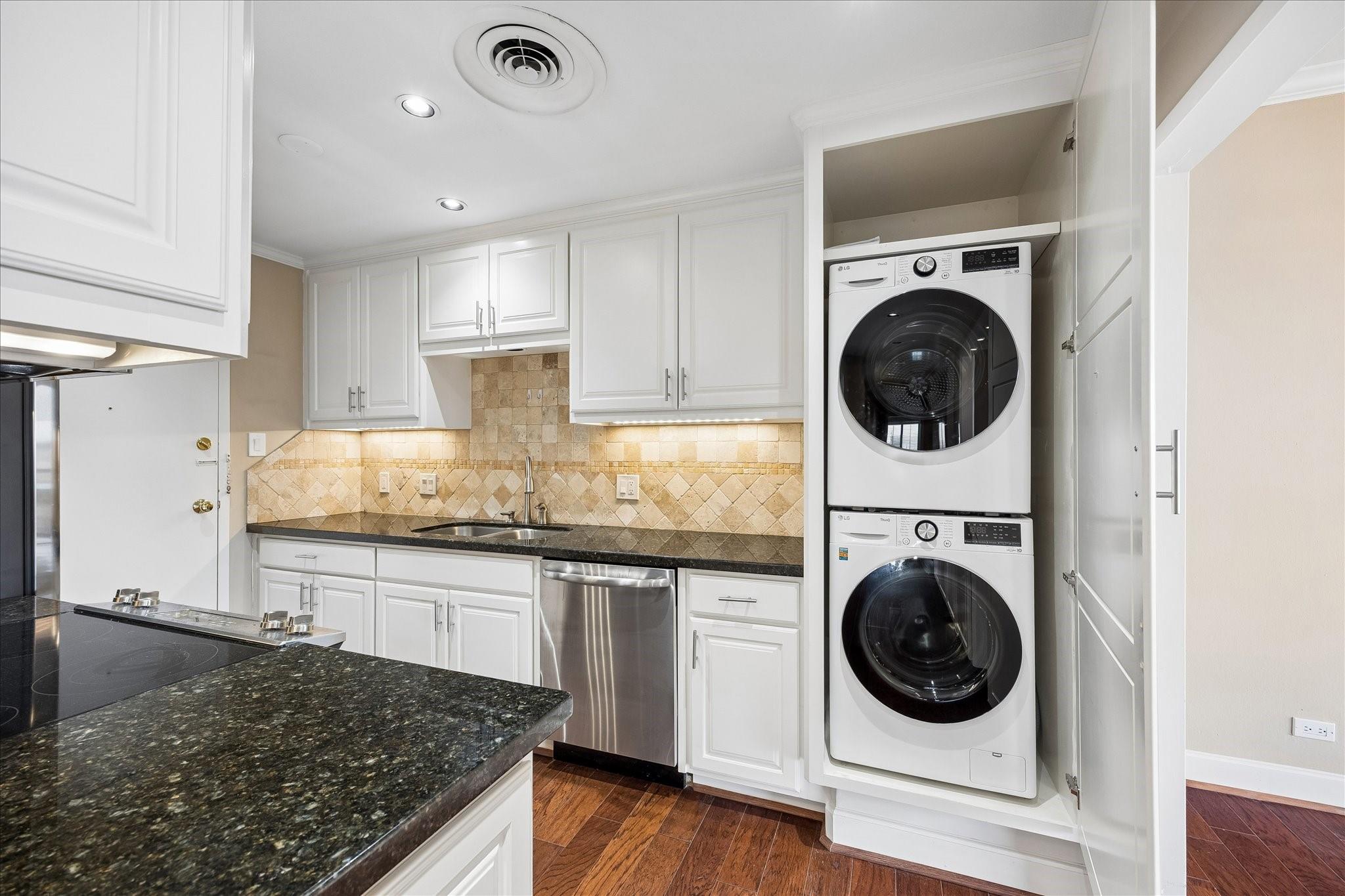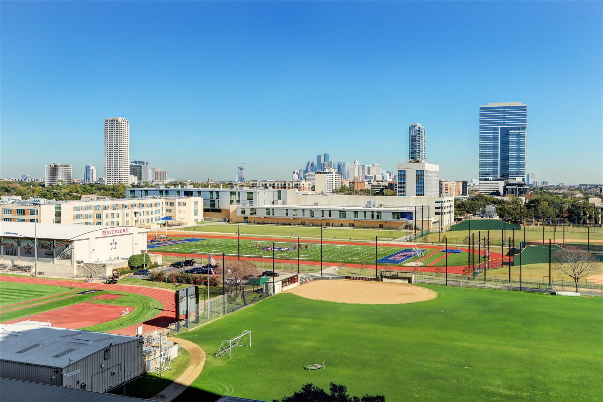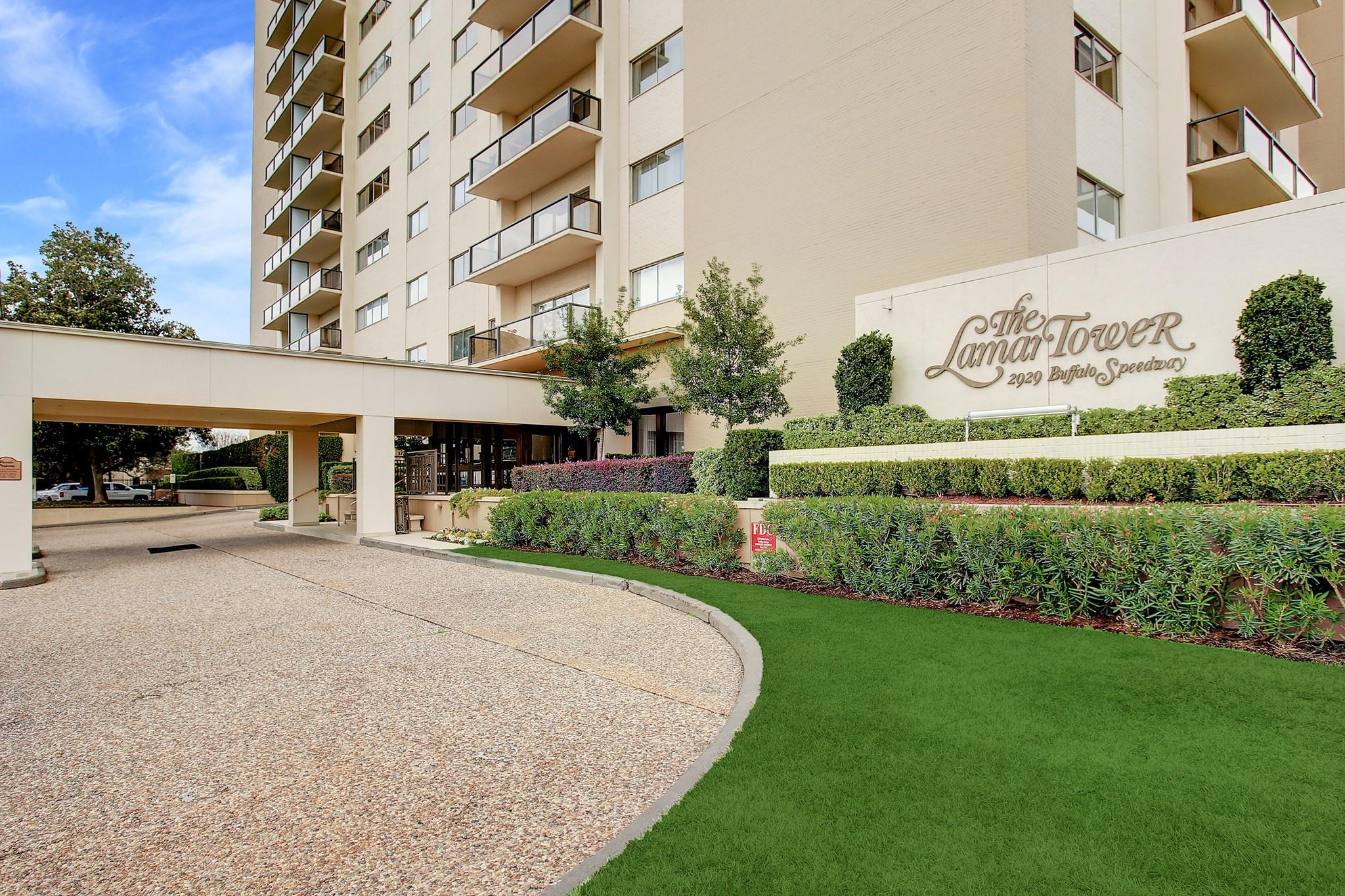 One of the best locations in the building! From the northeast corner on the 5th floor, enjoy the views of the treetops of River Oaks as well as the sun rising over downtown Houston! This updated 3 bedroom, 2 bath condo is ready for immediate move in. Gleaming hardwood floors in living/dining area, kitchen with stainless appliances, granite countertops and open breakfast bar area to living/dining. Beautiful baths, both with walk-in showers! Washer/dryer in the condo. Fantastic vistas from the spacious balcony. The Lamar Tower has unparalleled amenities, including free valet parking, exercise room with 24 hr access, two party rooms, and a gorgeous pool. On top of its amenities, its location is superb: just a few blocks to the West Ave shops and restaurants, and easy access to freeways and downtown. Take the plunge and move to a high-rise:you have been contemplating this for too long! All info per seller