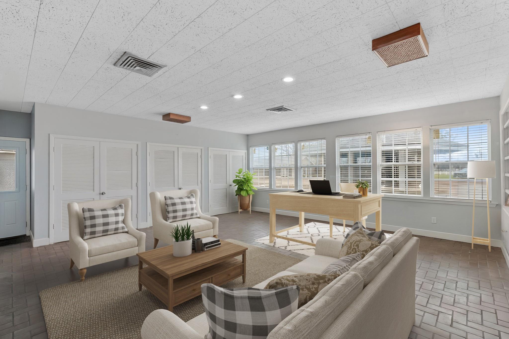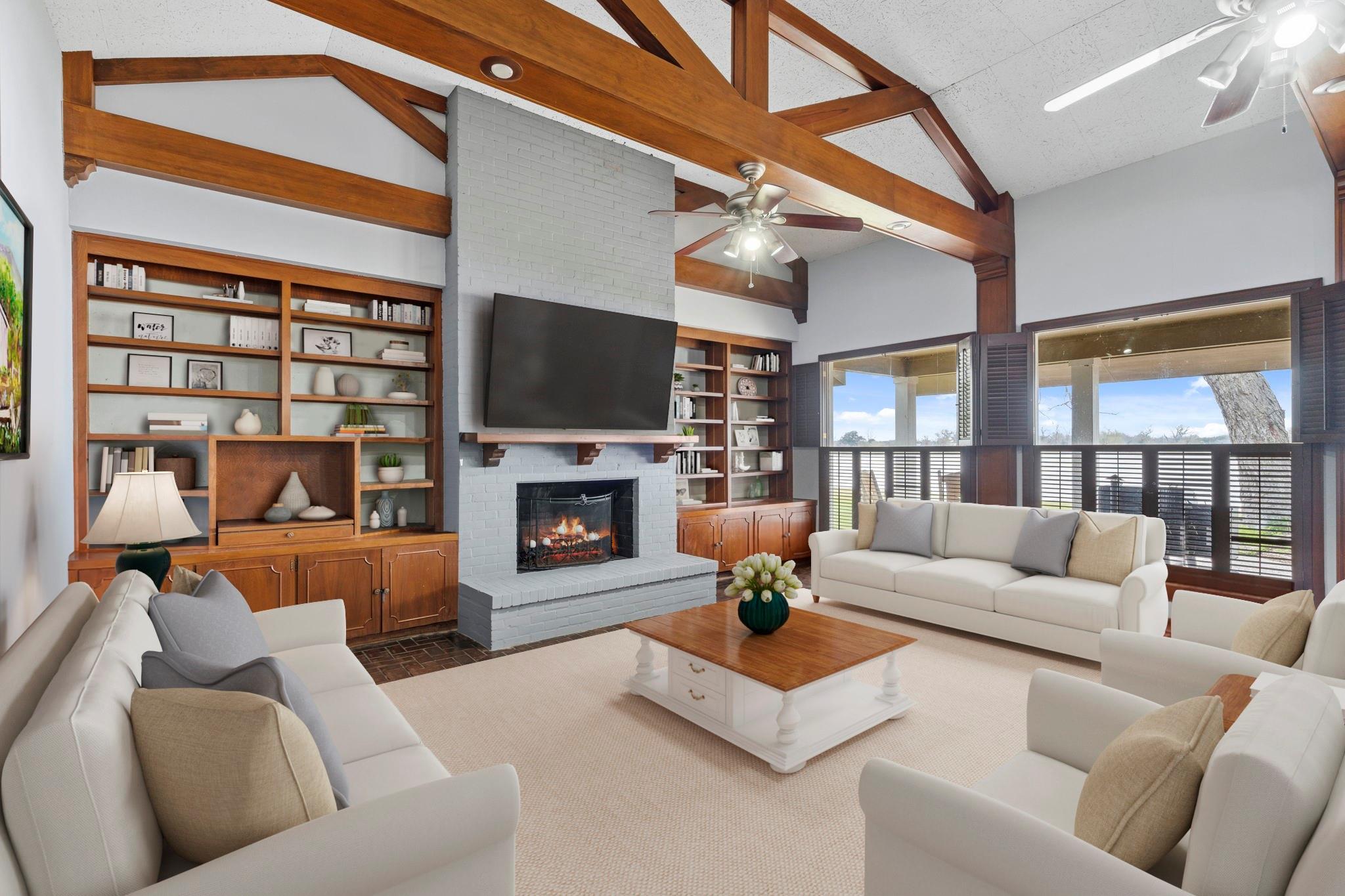InteriorFireplace:1/Wood Burning FireplaceFloors:Brick,CarpetBedroom Desc:All Bedrooms Down,En-Suite Bath,Primary Bed - 1st Floor,Walk-In ClosetKitchen Desc:Breakfast Bar,Kitchen open to Family RoomRoom Description:1 Living Area,Family Room,Home Office/Study,Kitchen/Dining Combo,Living Area - 1st Floor,Living/Dining Combo,Quarters/Guest HouseHeating:Central ElectricCooling:Central ElectricConnections:Electric Dryer ConnectionsRange:Electric RangeOven:Electric OvenEnergy Feature:Attic Vents,Ceiling Fans,Insulated/Low-E windows