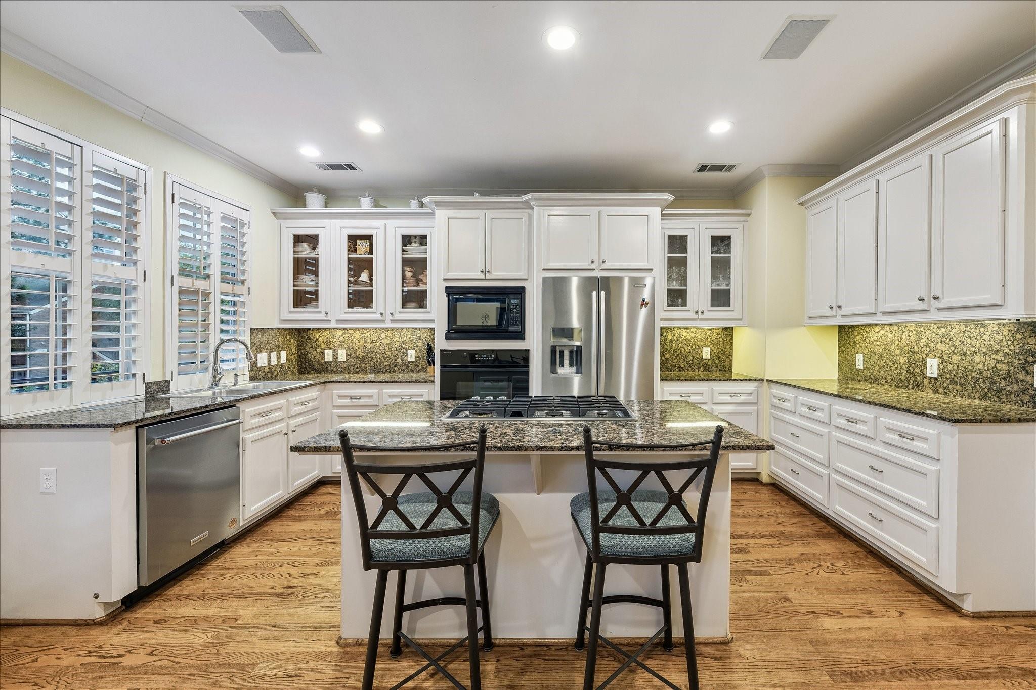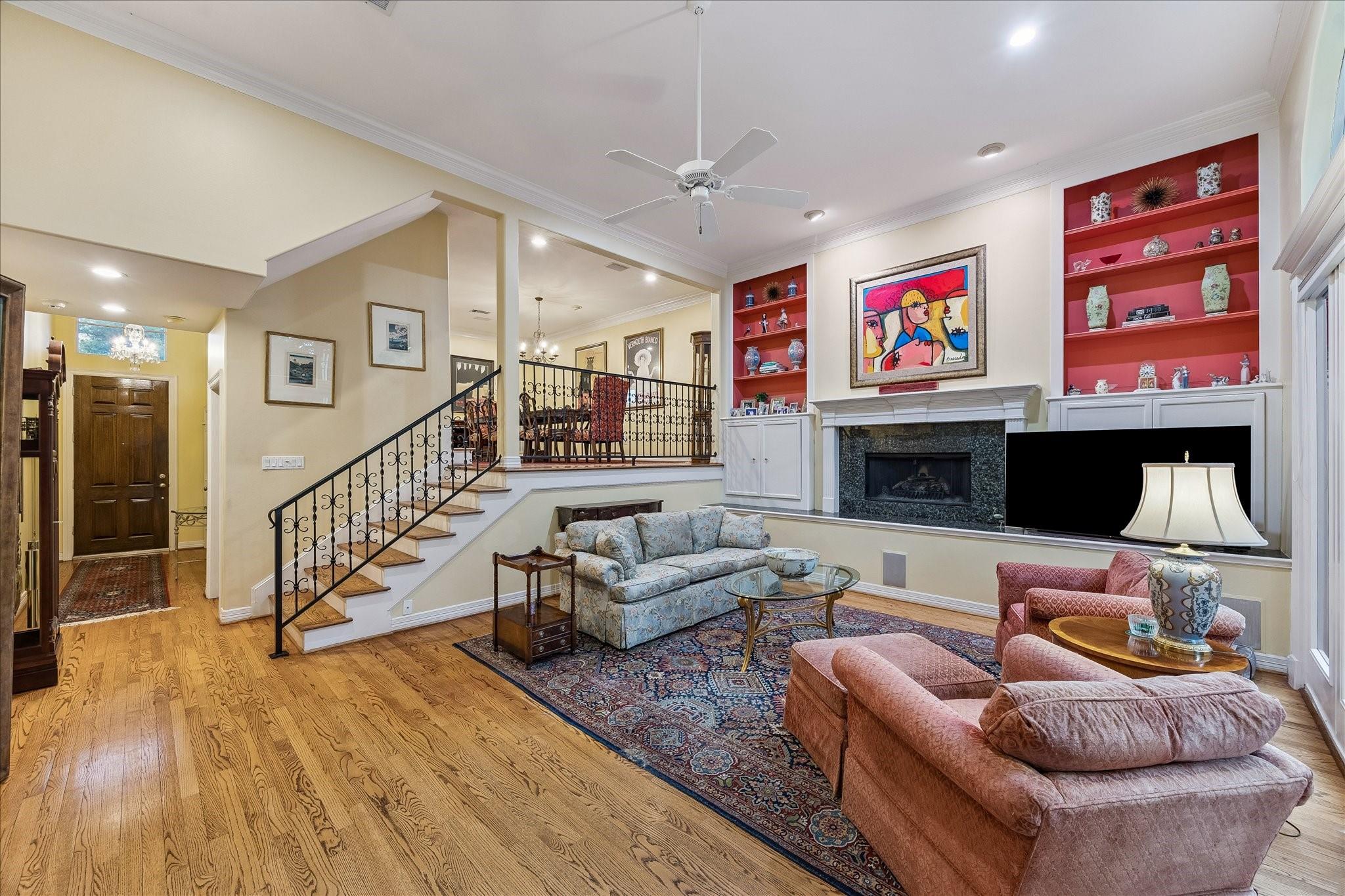 Discover this Upper Kirby jewel! An impressive living area boasts a fireplace flanked by classic built-ins with soaring ceilings allowing for floor-to-ceiling windows that showcase the outdoors & bathe the home in natural light. Outdoor living is a dream with two entertaining areas: a generous deck with illuminated steps leading to an attractive patterned brick patio with a pergola. An elegant dining room overlooks the living area & outdoors. The sunny kitchen features an island, gas cooktop, large pantry, & breakfast area with a quaint balcony. All bedrooms are conveniently located on the third floor with elevator capability. The primary suite offers a vaulted ceiling and cheerful bath with dual vanities, tub, shower, & water closet, plus an amazingly equipped closet. Secondary bedrooms have walk-in closets as well. Bonus spaces include a first-floor office or den & unbelievable, easily accessible under-home storage. Moments from Kuhl-Linscomb, Whole Foods, Armandos, and Carrabba’s.