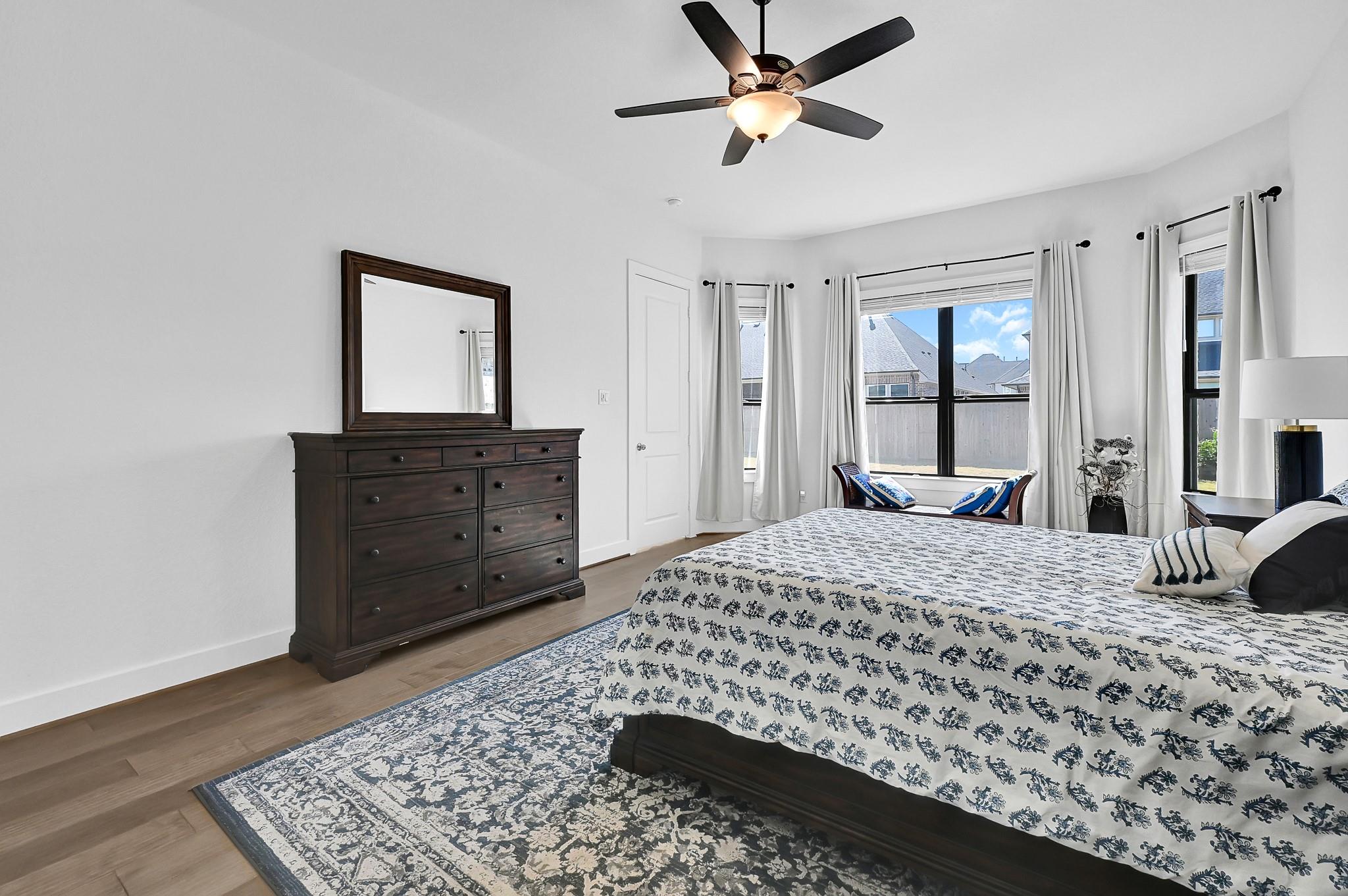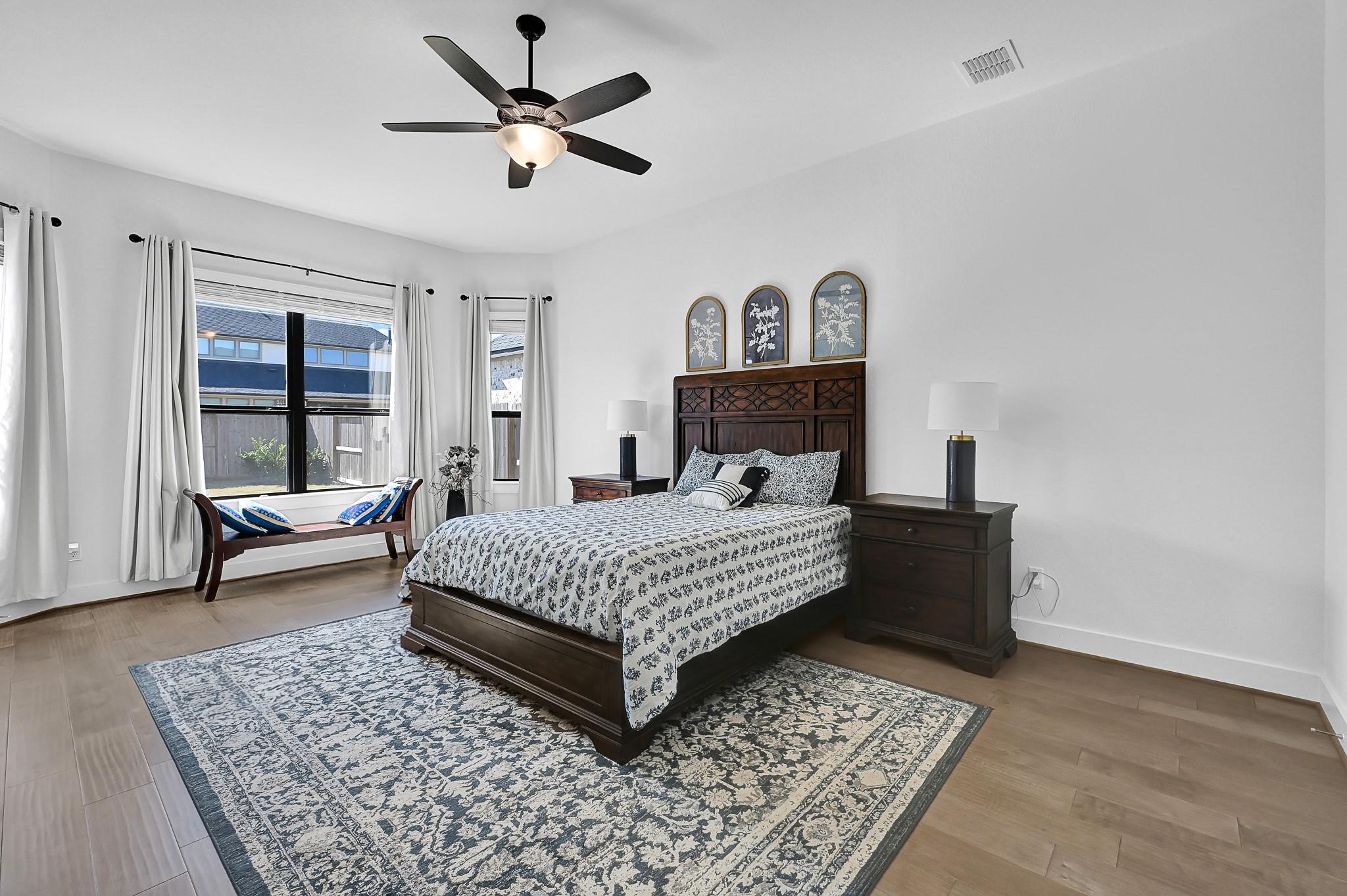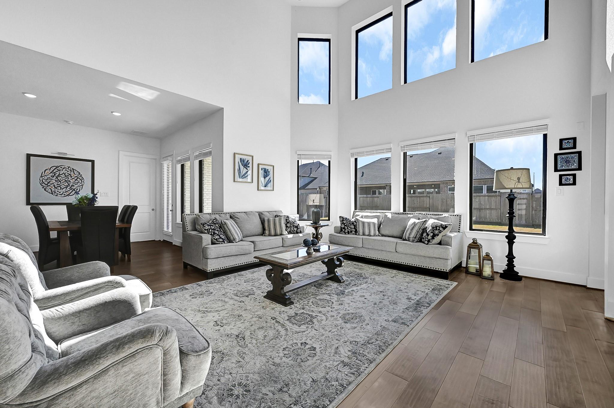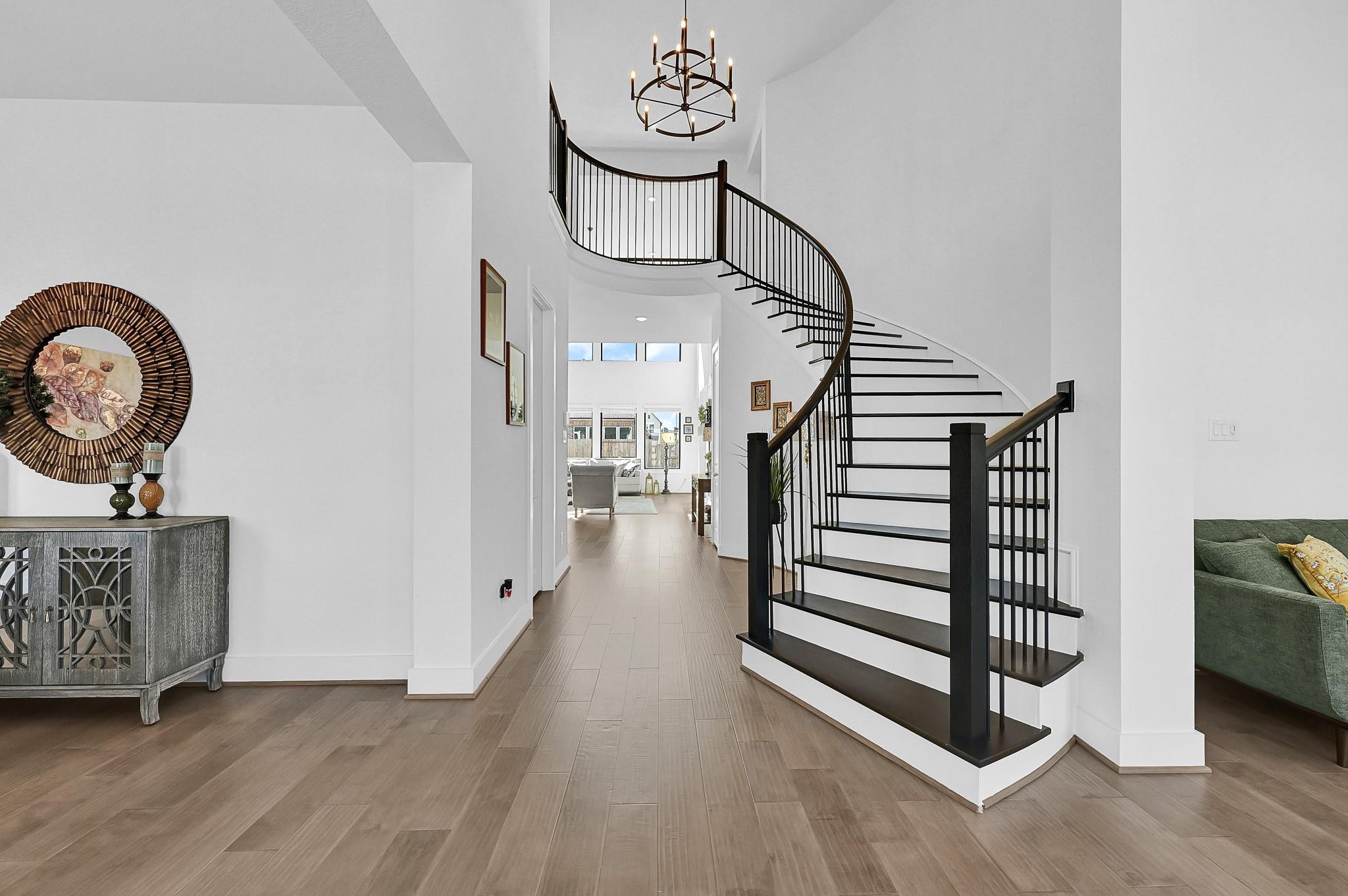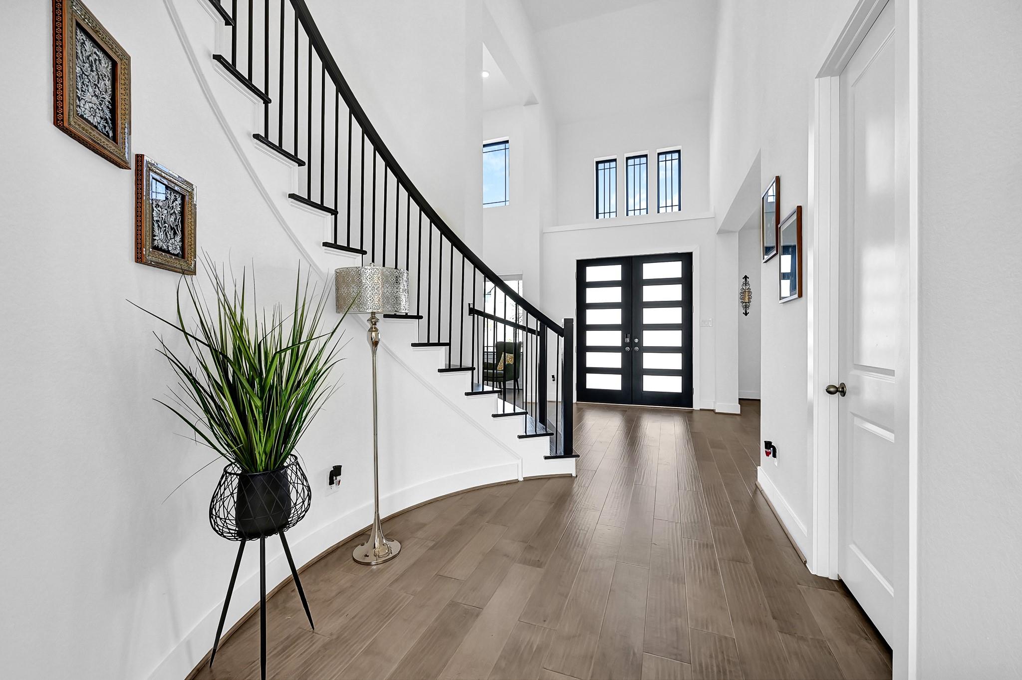 Welcome to your dream home! The Edinburg by Newmark Homes is a modern masterpiece spanning 4,960 sq. ft. of pure luxury. This North Facing stunning stucco home features 5 bedrooms, 5.5 baths—all en-suite, a high-ceiling formal living and dining, an XL-sized family room with a breathtaking wall of windows, a second downstairs bedroom, and walk-in showers in all baths. Enjoy a massive game room, a huge theater, a dream kitchen, and a spacious backyard perfect for your future pool. Double entry doors open to beautiful live oak engineered wood floors, a magnificent curved staircase with full wood treads and wrought iron spindles. The dream kitchen boasts gleaming quartz countertops and backsplash, elegant light gray cabinets, state-of-the-art appliances, a large island with seating and storage, and a massive walk-in pantry. The primary suite features bay windows, a spa-like bath with a jetted tub, a huge walk-in shower, and his-and-her closets. Over 100k in builders upgrades !