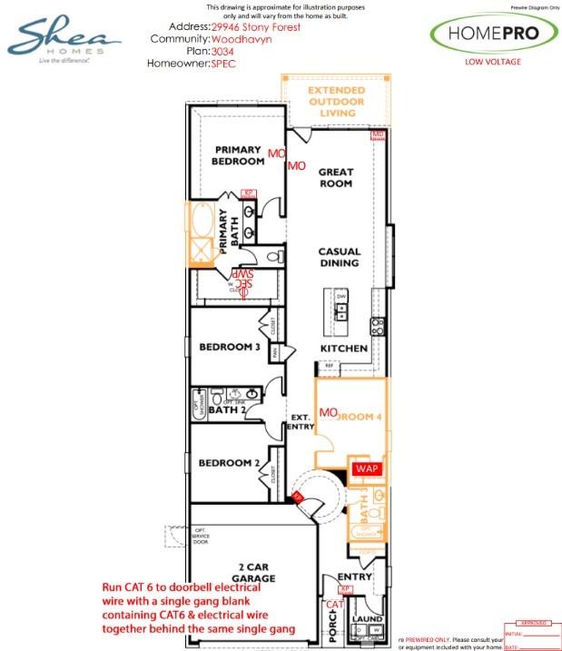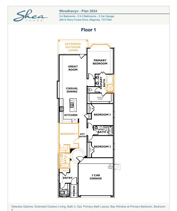 BEAUTIFUL SHEA HOMES NEW CONSTRUCTION in Magnolia's Newest Community, WOODHAVYN!. This beautiful 1-story home has an entry with an elegant rotunda, Smart home capabilities, a full sprinkler system, and beautiful landscaping. Wrapped with a gorgeous stucco exterior, this one-story home provides optimal living in a layout containing 4 bedrooms, 3 full baths, a two-car garage, and an open-concept living space. Fit for any culinary need, this kitchen contains stainless-steel built-in appliances, a 36” Gas Cooktop, a large kitchen island, and plenty of cabinetry for ultimate storage! Off the great room, enjoy the backyard from a covered patio, providing the perfect entertainment and relaxation space. Retreat to a large Primary Suite that features natural light, a separate tub, a Framed Shower, and a large walk-in closet. Find delight living in a Shea Home at Woodhavyn – come Live The Difference!