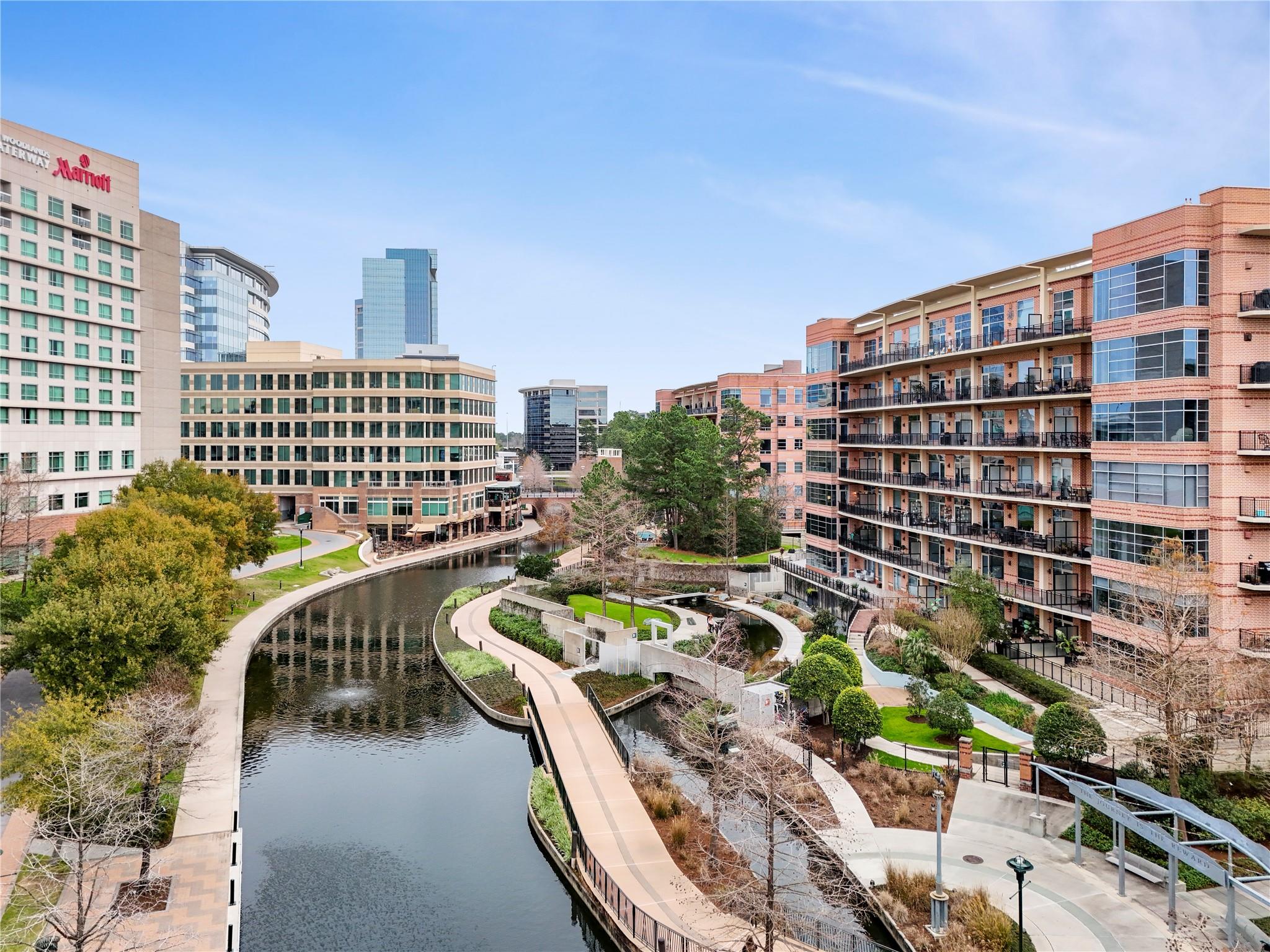 LUXURY WATERWAY FRONT CONDO – PRIME DOWNTOWN WOODLANDS LOCATION! This 2-bed + study, 2-bath residence features a massive 8x38 terrace overlooking The Waterway & Koi Pond. Floor-to-ceiling windows fill the space with natural light and showcase stunning views from every room. Fresh interior paint, open-concept kitchen with granite island, and spacious living area with fireplace—TVs and W/D included. Owner’s retreat boasts 2 closets, soaking tub, shower, and dual vanities. Includes 2 garage spaces + climate-controlled storage just steps away. Walk to concerts, Market Street, The Woodlands Mall, and more. Amenities: resort-style pool, spa, grills. Lock-and-leave lifestyle with strong property appreciation (5–8% annually), driven by exclusivity, limited supply, and the new Ritz-Carlton tower nearby. Easy I-45 access—luxury living in the heart of it all