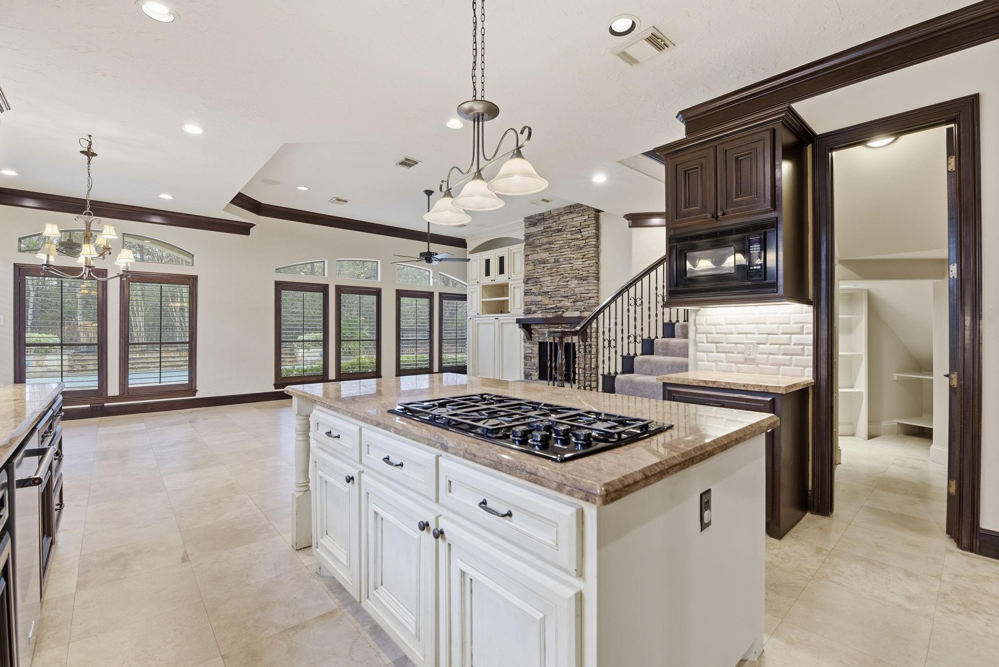 InteriorFireplace:1/Gas Connections,Gaslog FireplacePets:Case By CaseSmoking Allowed:NoFurnished:NoFloors:Carpet,Tile,WoodBathroom Description:Half Bath,Primary Bath: Double Sinks,Primary Bath: Separate Shower,Secondary Bath(s): Tub/Shower ComboBedroom Desc:Primary Bed - 1st Floor,Walk-In ClosetKitchen Desc:Breakfast Bar,Island w/ Cooktop,Kitchen open to Family Room,Pantry,Under Cabinet Lighting,Walk-in PantryRoom Description:Breakfast Room,Formal Dining,Formal Living,Gameroom Up,Home Office/Study,Living Area - 1st Floor,Quarters/Guest House,Utility Room in HouseHeating:Central GasCooling:Central ElectricDishwasher:YesDisposal:YesCompactor:NoMicrowave:YesIce Maker:NoEnergy Feature:Attic Fan,Attic Vents,Ceiling Fans,Digital Program ThermostatInterior:Alarm System - Owned,Balcony,Dryer Included,Fire/Smoke Alarm,Formal Entry/Foyer,High Ceiling,Refrigerator Included,Washer Included,Window Coverings