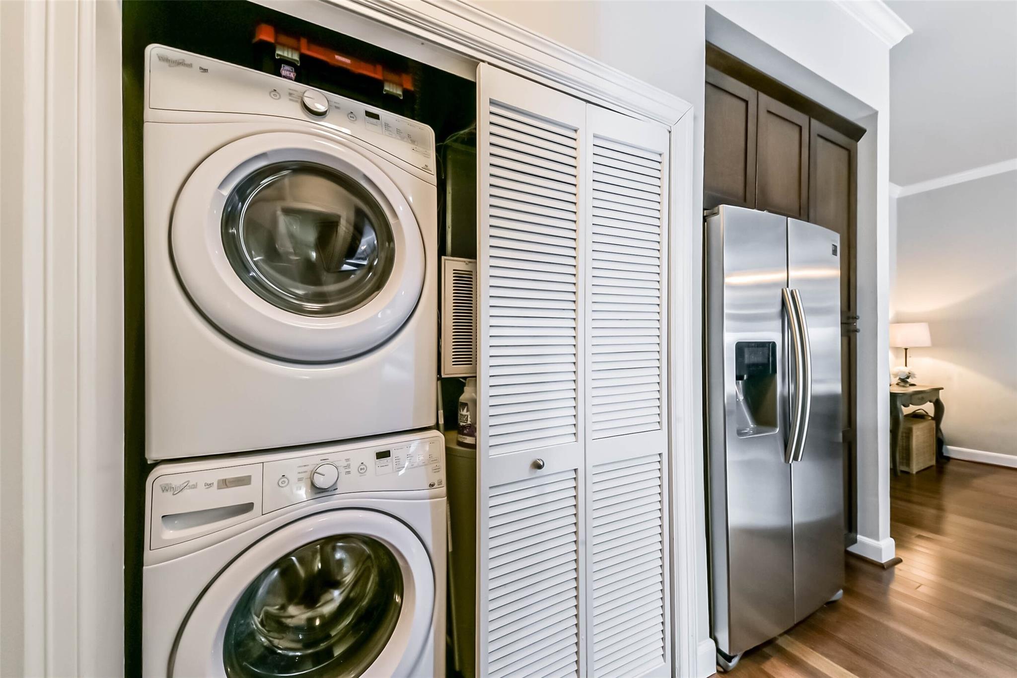 InteriorFloors:WoodCountertop:QuartzBathroom Description:Primary Bath: Double Sinks,Primary Bath: Soaking TubBedroom Desc:En-Suite Bath,Primary Bed - 1st Floor,Walk-In ClosetKitchen Desc:Breakfast Bar,Instant Hot Water,Island w/o Cooktop,Kitchen open to Family Room,Soft Closing Drawers,Under Cabinet LightingRoom Description:1 Living Area,Kitchen/Dining Combo,Living Area - 1st Floor,Living/Dining ComboHeating:Central ElectricCooling:Central ElectricWasher/Dryer Conn:YesDishwasher:YesDisposal:YesMicrowave:YesRange:Electric CooktopOven:Electric OvenAppliances:Dryer Included,Electric Dryer Connection,Refrigerator,Stacked,Washer IncludedEnergy Feature:Ceiling Fans,Insulation - OtherInterior:Atrium,Balcony,Crown Molding,Disabled Access,Elevator,Fire/Smoke Alarm,Interior Storage Closet,Refrigerator Included,Window Coverings